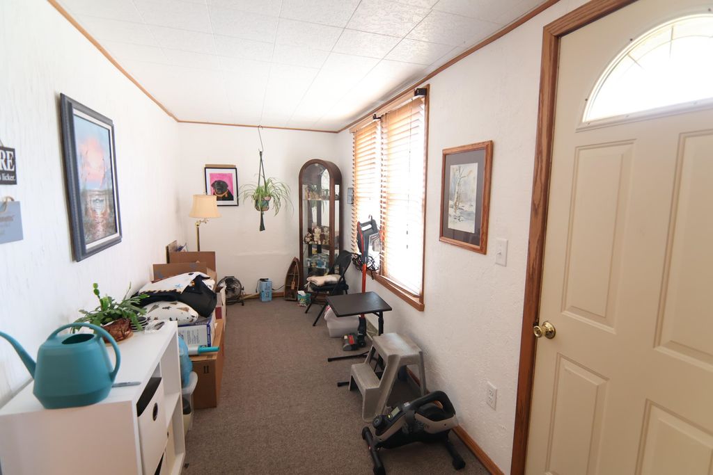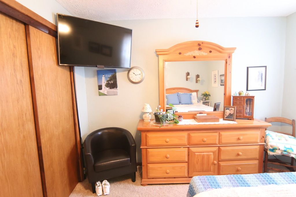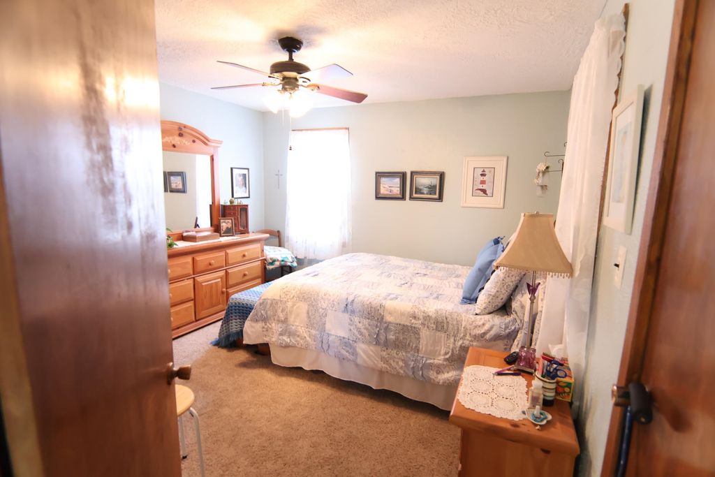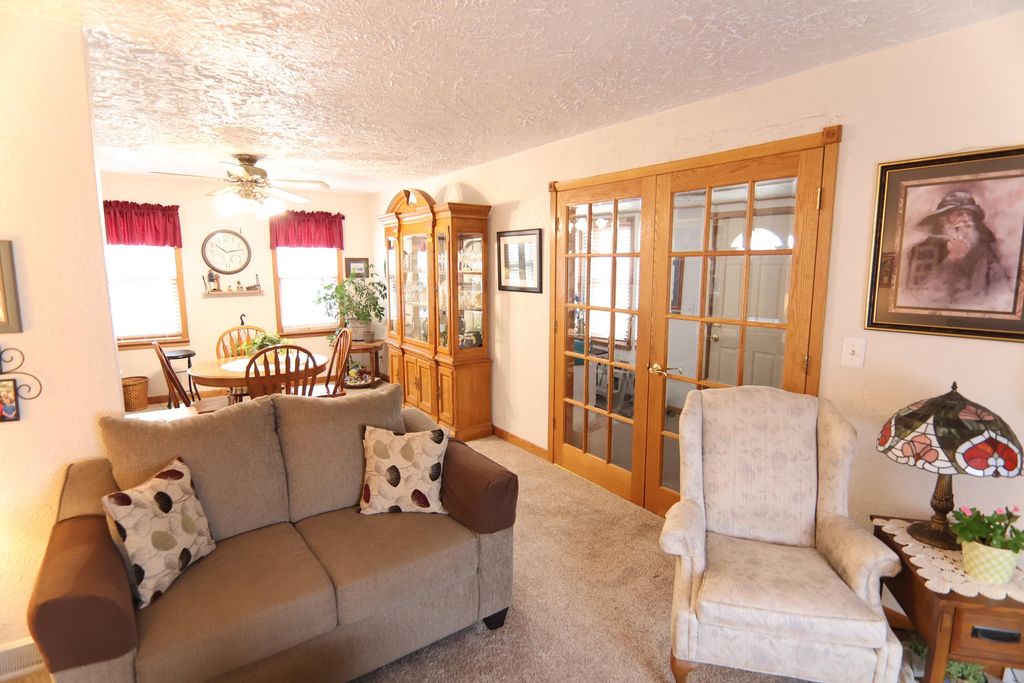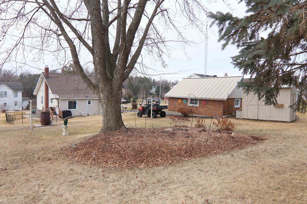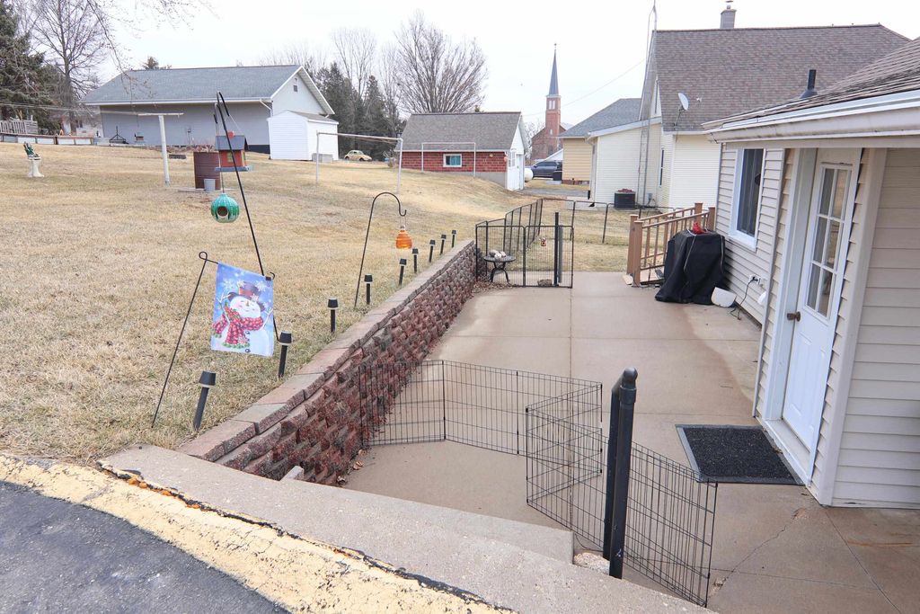 Welcome to this adorable 3 bedroom Bungalow! Property line abuts a field to offer the country feel, while still offering the convenience of living in town. Short walk to the baseball field. Main floor consists of the primary bedroom, a bathroom with walk-in jetted tub, washer, dryer and a stair lift to give easy access to the basement, ramped access to backdoor. Basement has versatility with access from both inside and outside of the home, blacked out ceiling, new drywall, refinished floor and a half bath. Oversized one car garage with storage shed. Nothing to do but move in!