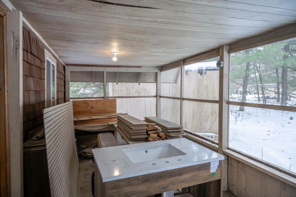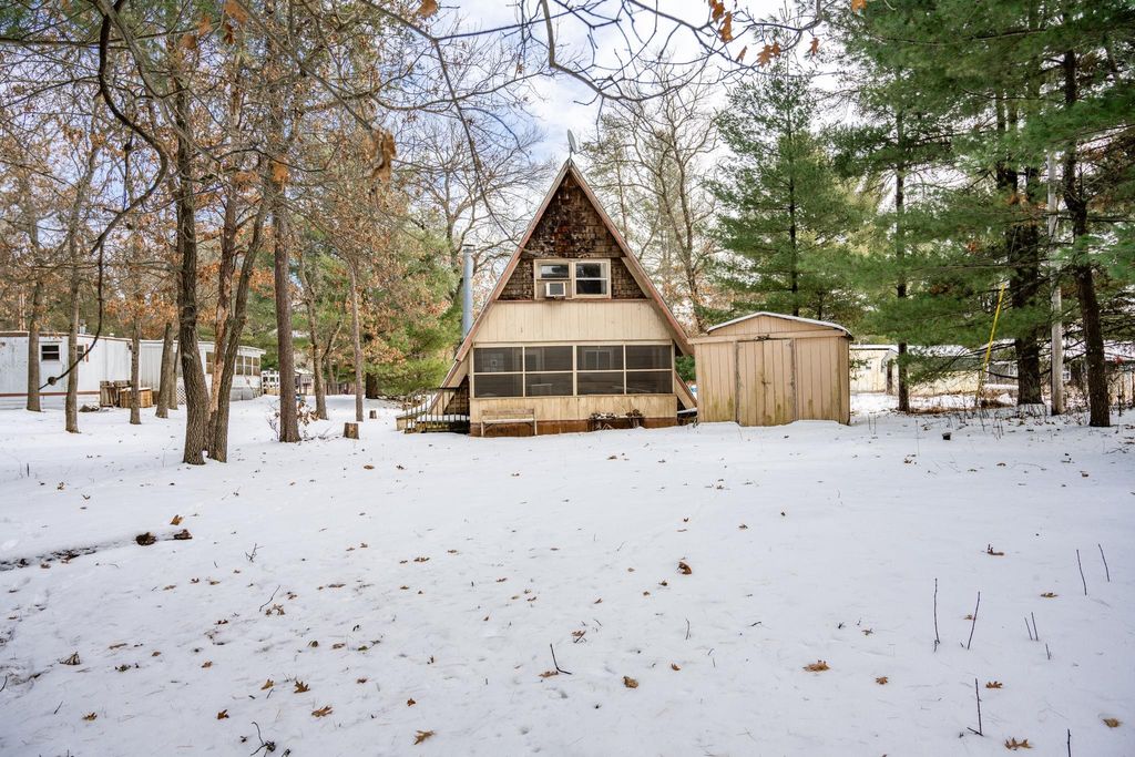 Seasonal A-Frame cabin perfect for weekend getaways. This open concept home is very spacious. Enjoy a wood burning fireplace for cooler nights and a beautiful bar area great for entertaining. Close to Castle Rock and Petenwell Lakes and only 30 minutes from Wisconsin Dells. Plenty of recreational activities just a short distance away, hunting, hiking, fishing. Boat landing, pavilion and sandy beach are right down the road, available to the residence of Whistling Wings Development. Short-term vacation rentals are allowed. Floor is not insulated. Second bedroom is a walk-through. New flooring and vanity on screen porch will stay for the new owner.