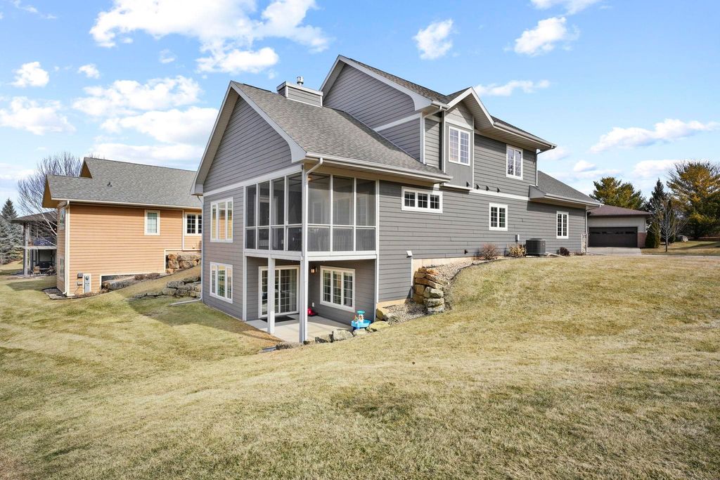 Show 3/13. Rare opportunity to enjoy the privacy of a single-family home with the lifestyle amenities of a professional association (lawn/snow/maintenance handled) in coveted Harlan Hills. Prime location walking distance to the Arboretum, bike trails, and 5 miles to UW-Madison. Perfect blend of grandeur and effortless living in this 5BR/3.5BA executive residence. Spanning nearly 4,000 sq ft, home opens to a dramatic two-story foyer and a great room featuring built-ins, gas fireplace, and a screened porch overlooking greenspace. Gourmet kitchen w/ granite surfaces, breakfast counter, stainless steel Jenn Air appliances, new wine fridge. Maple hardwood floor throughout main level. Enjoy a main-level primary suite with walk in tile shower, soaking tub, double-vanity, walk-in closet and access to the screened porch. Upper level hosts 3 bedrooms, a full bath with double-vanity, plus an extra room, perfect for an office. 1st floor laundry w/optional 2nd floor laundry. Walk-out LL w/ rec room