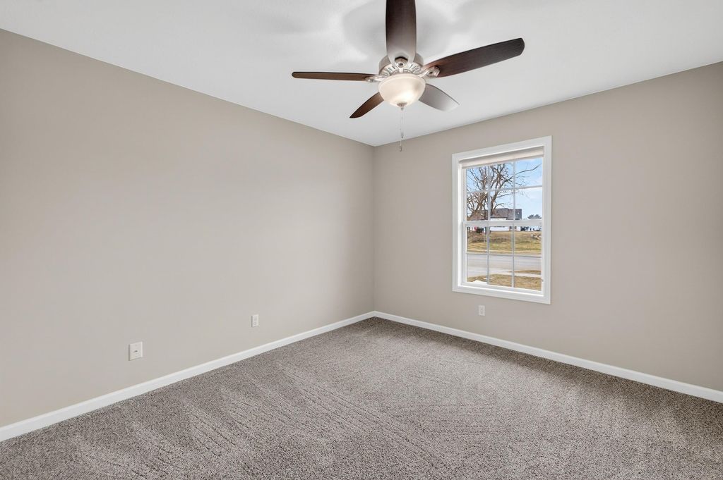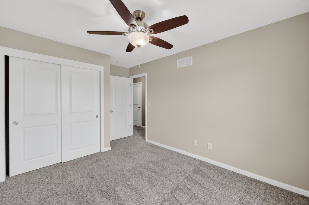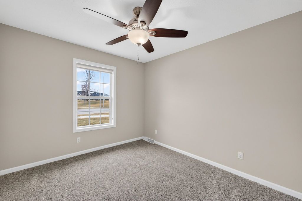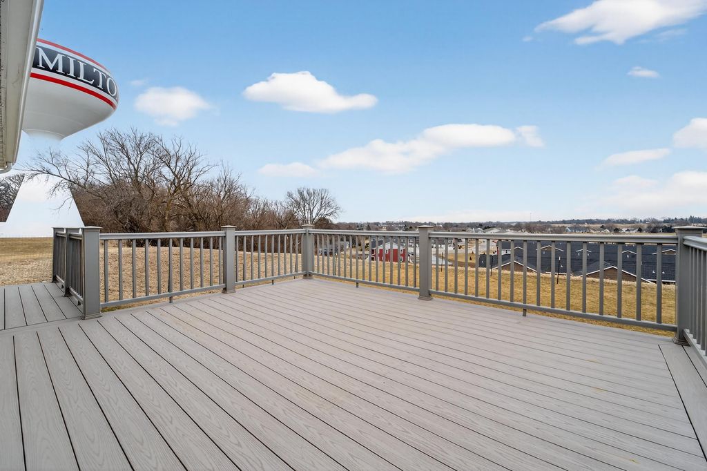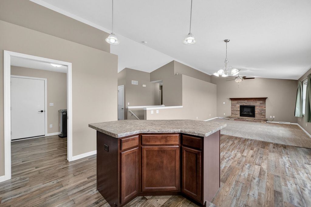 Nestled in the desirable Red Hawk Farms neighborhood - conveniently close to great schools, parks, shopping & easy highway access - this well-maintained, like-new home is completely move-in ready. The open main level feels bright & welcoming boasting a spacious great room w/ vaulted ceilings & a cozy gas fireplace that flows naturally into the kitchen. The kitchen features a center island w/ breakfast bar, SS apps, plenty of cabinets & an easy, functional layout for everyday use. Sliding doors lead to a private deck w/ beautiful panoramic views - perfect for morning coffee or relaxing evenings outdoors. The primary bedroom is a comfortable retreat w/ a large walk-in closet & private bath. Two additional generously sized bedrooms get lots of natural light & offer plenty of space for everyone. The unfinished lower level has egress windows & bathroom rough-ins, giving you room to add a rec room area, extra bedrooms, for your creative expansion designs!