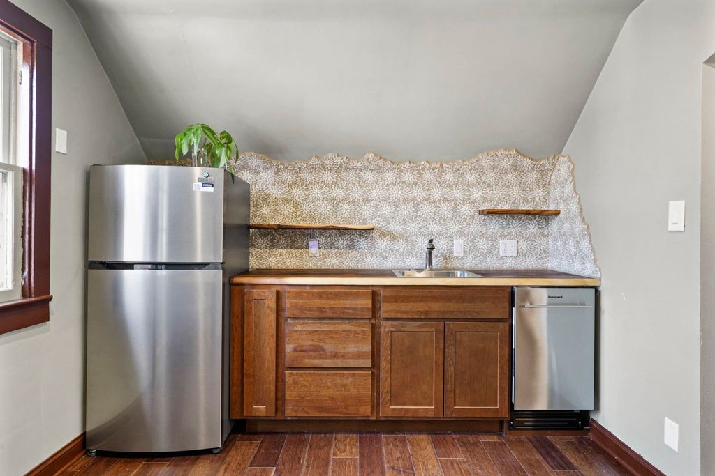 A true Madison gem in the heart of the Marquette Bungalow Historic District, this 3 bed, 2 bath home retains the classic charm of yesteryear while adding thoughtful renovations throughout. Once a 2 flat, the main floor hosts 2 bedrooms and a full bath. Oak hardwood flooring throughout, with ornamental brick fireplace, leaded glass windows and classic arches. Custom hardwood countertops in the kitchen featuring butternut, black walnut, cherry, ash and maple combined. Stainless steel appliances with custom cabinetry and tile back splash added. Second floor is an open space perfect for long term guests, primary suite or rental. Updated full bath, kitchenette and secret playroom. A Master gardener previously owned the home and once spring is in bloom you will be amazed by the gardens. Fenced in yard, 2 car garage and a short walk to all the hotspots!