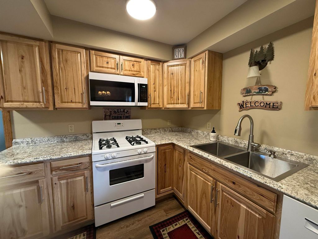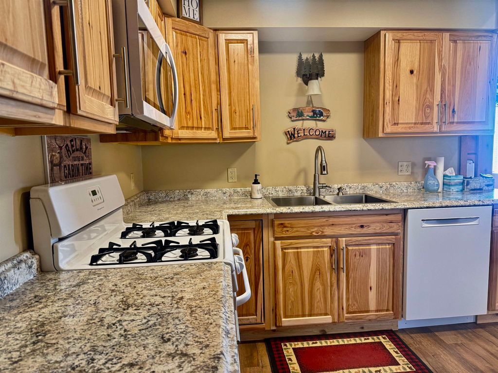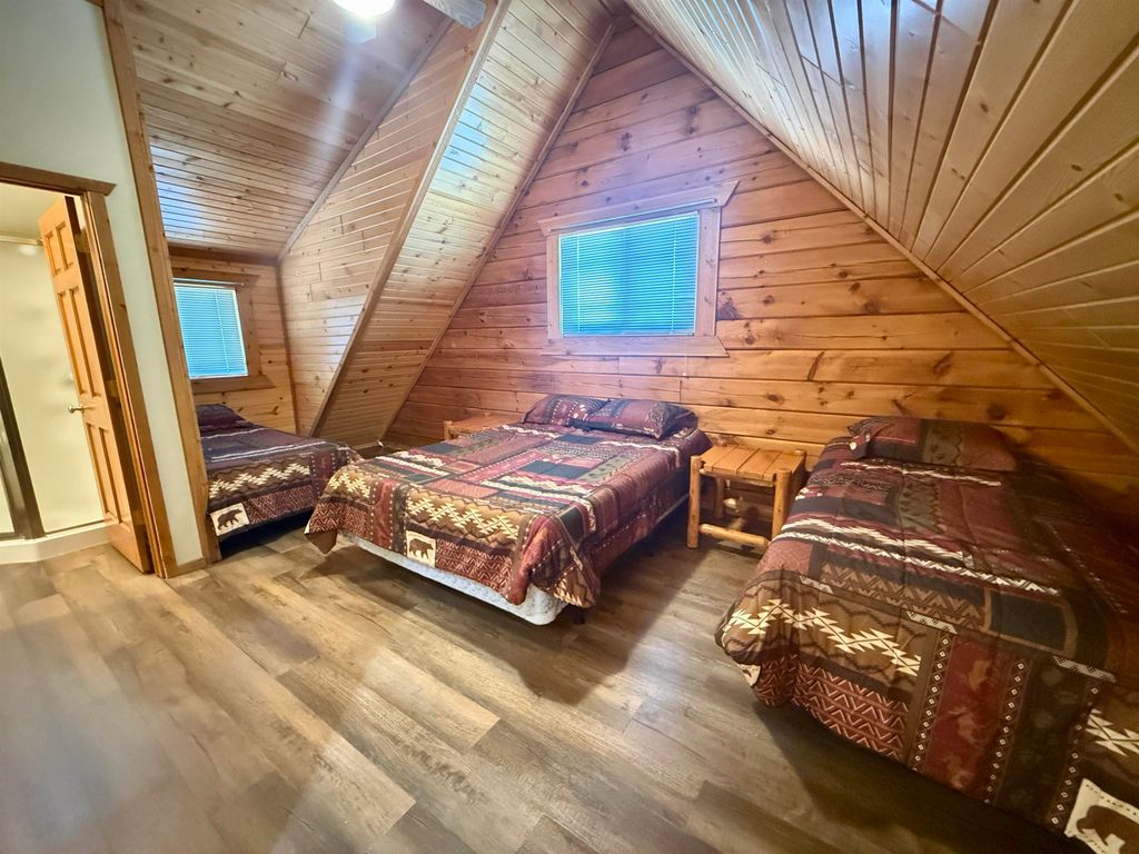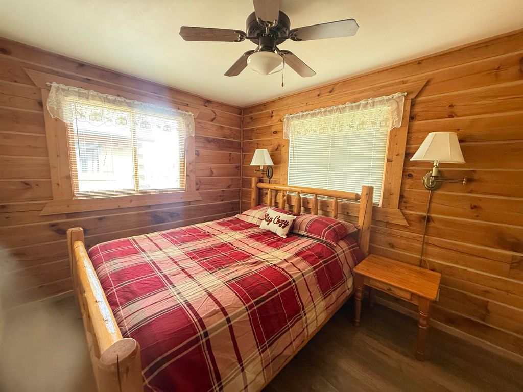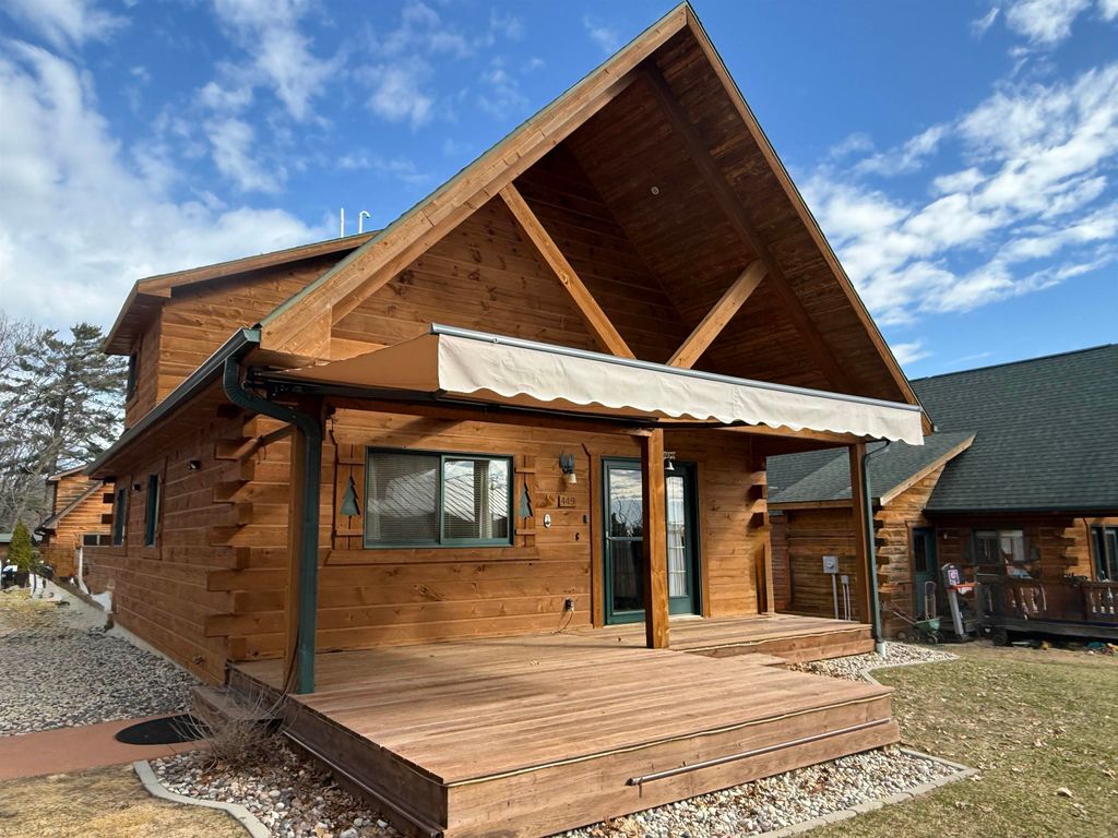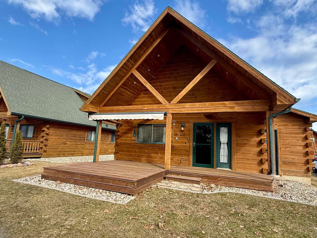 Step into this beautifully enhanced log villa, that has been thoughtfully updated making this one stand out amongst the rest! Inside you will find new luxury vinyl plank flooring throughout. The heart of the home is fully renovated w hickory cabinets, updated countertops, and newer appliances. A pantry closet helps for your cooking needs. This villa now includes a newly added half bathroom providing extra comfort for your guests. Both existing bathrooms have been tastefully updated. Enjoy peace of mind w 2 security cameras & a Nest thermostat. A major bonus is the 14X20 shed equipped w a garage door/opener, perfect for extra storage. Relax on the newly added deck w retractable awning. It is fully furnished, w all decor included for the buyer's convenience. Pack your bags and let the summer fun begin!