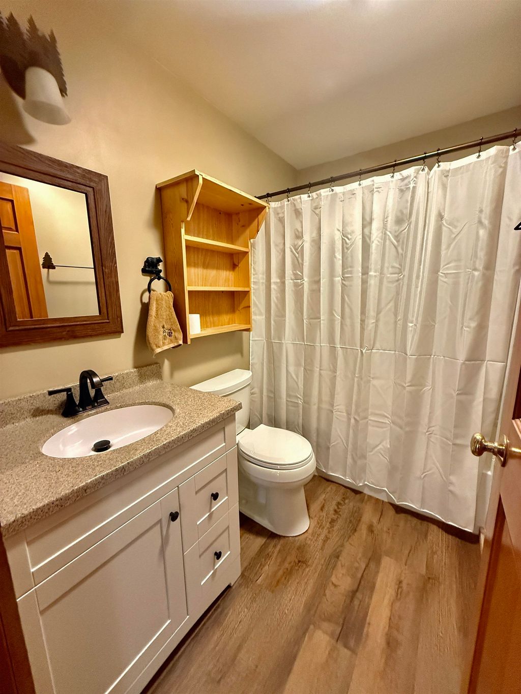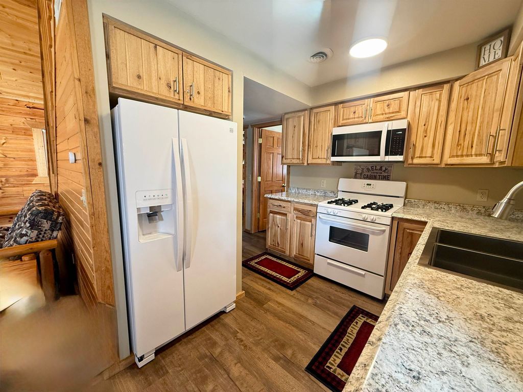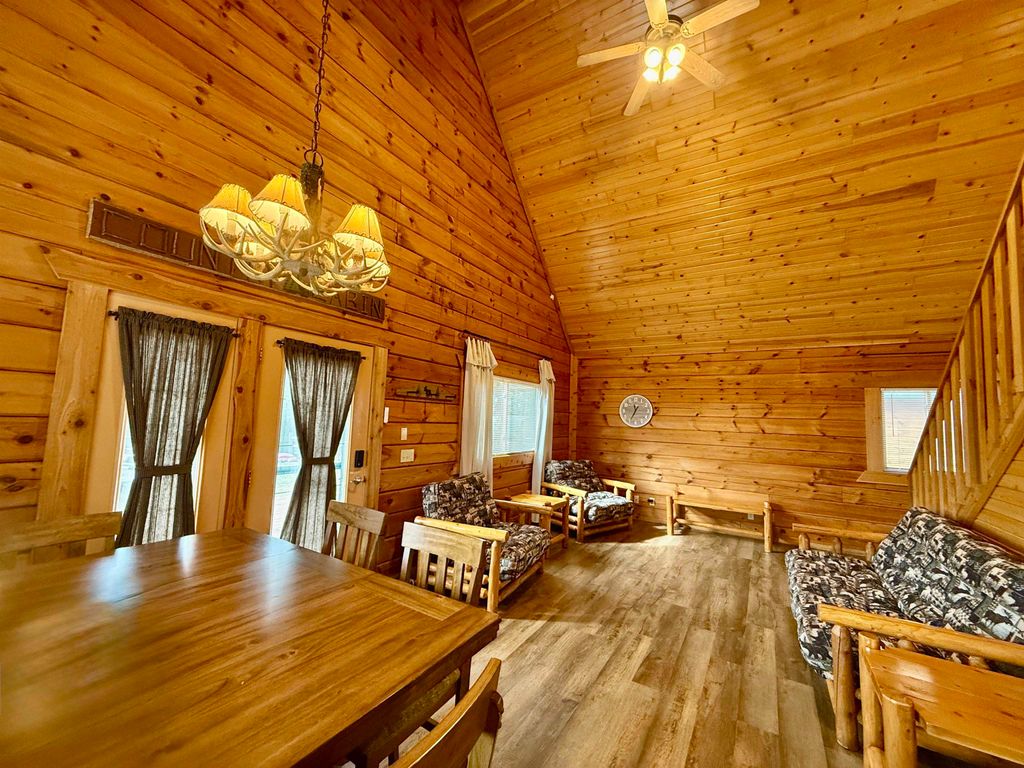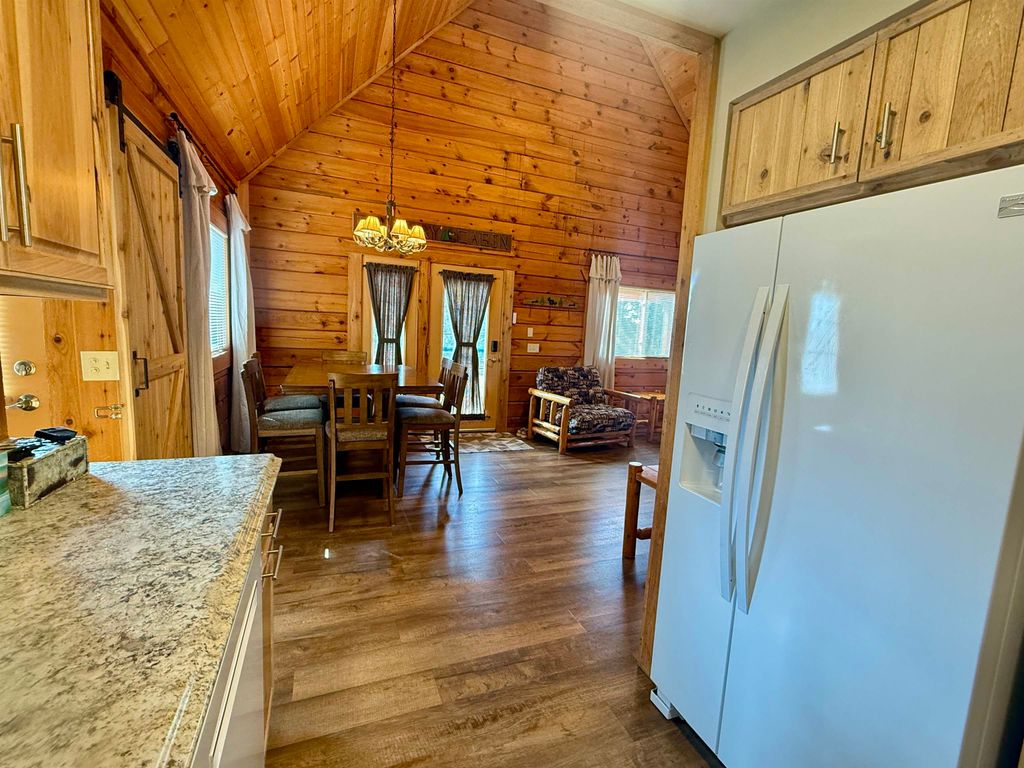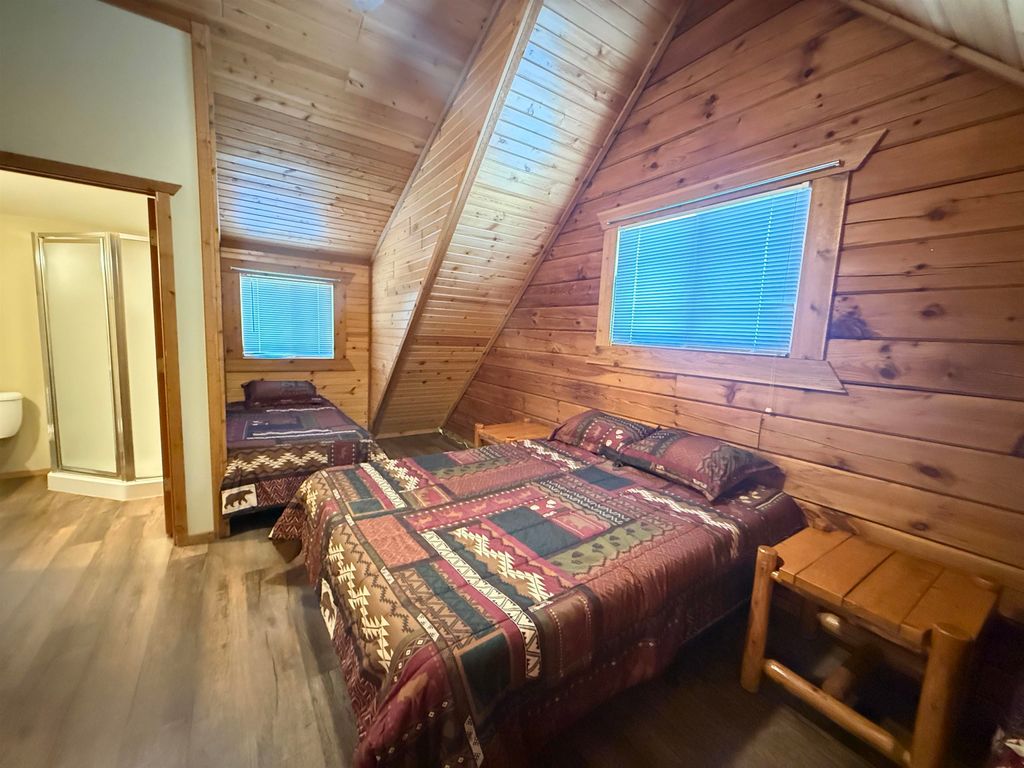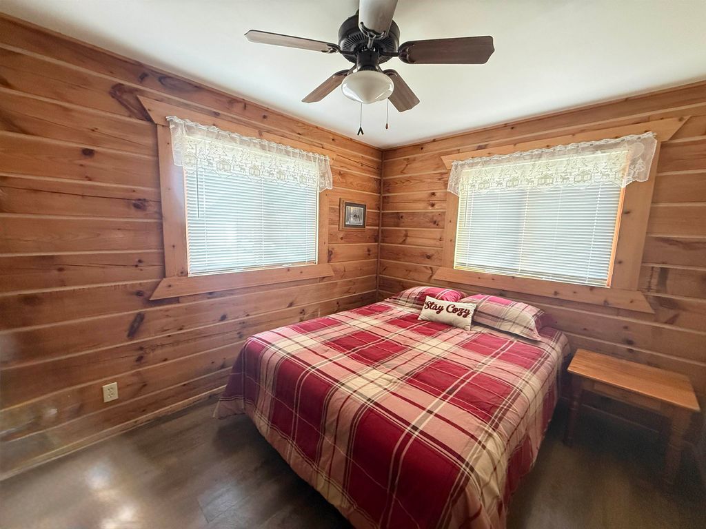 Step into this beautifully enhanced log villa, that has been thoughtfully updated making this one stand out amongst the rest! Inside you will find new luxury vinyl plank flooring throughout. The heart of the home is fully renovated w hickory cabinets, updated countertops, and newer appliances. A pantry closet helps for your cooking needs. This villa now includes a newly added half bathroom providing extra comfort for your guests. Both existing bathrooms have been tastefully updated. Enjoy peace of mind w 2 security cameras & a Nest thermostat. A major bonus is the 14X20 shed equipped w a garage door/opener, perfect for extra storage. Relax on the newly added deck w retractable awning. It is fully furnished, w all decor included for the buyer's convenience. Pack your bags and let the summer fun begin!