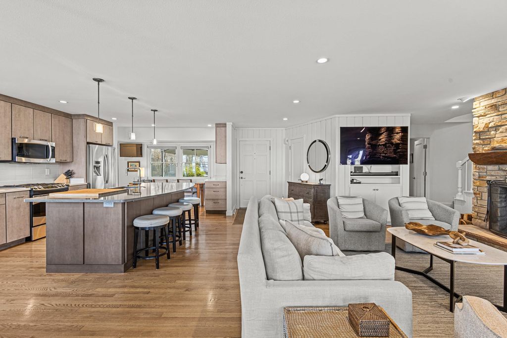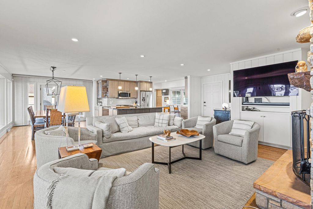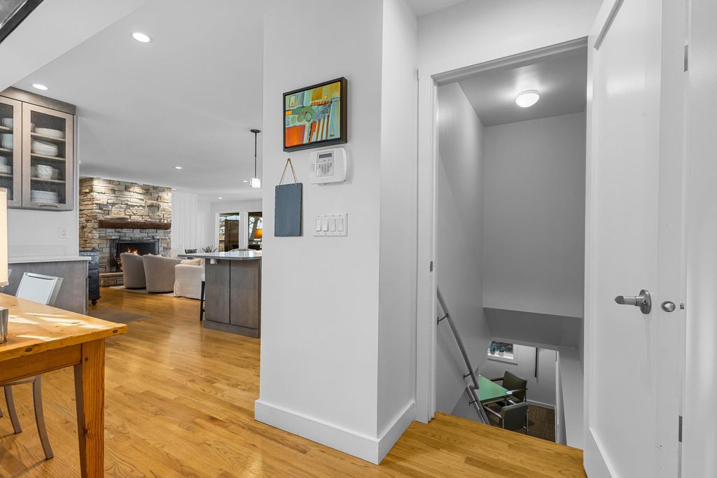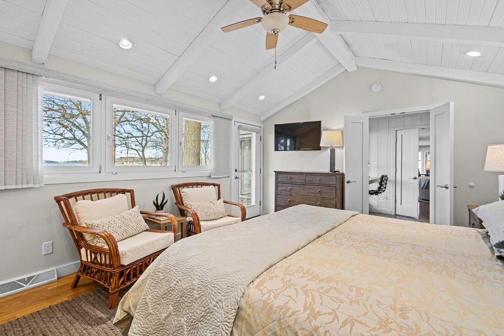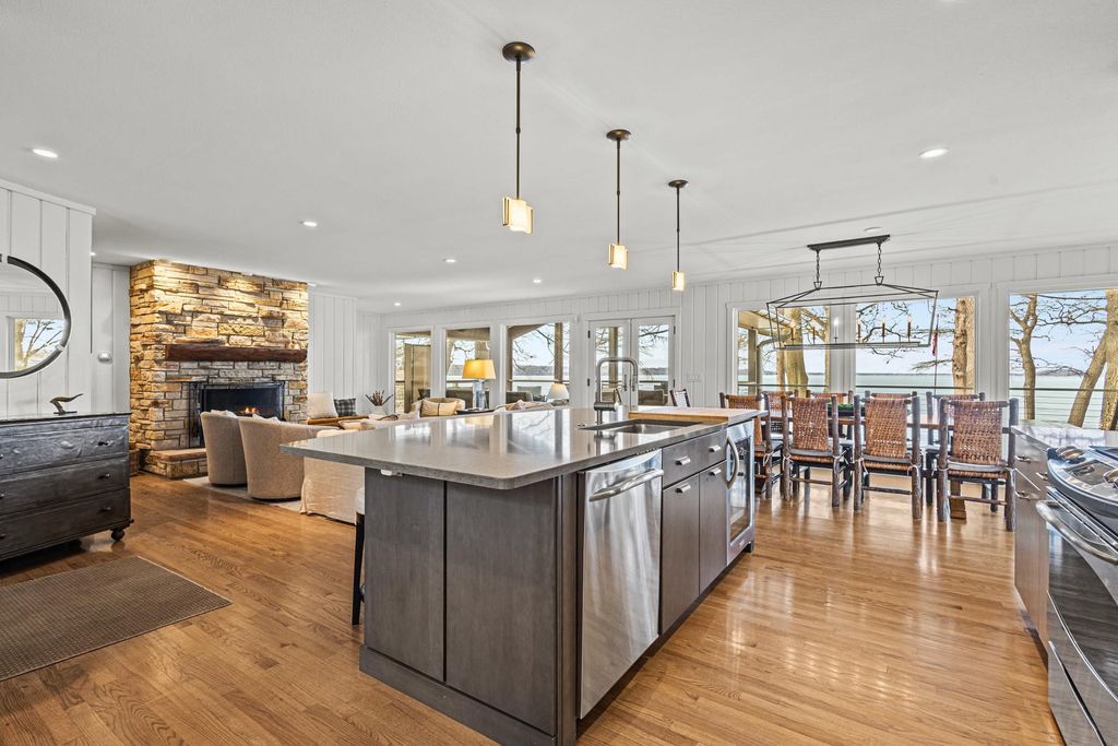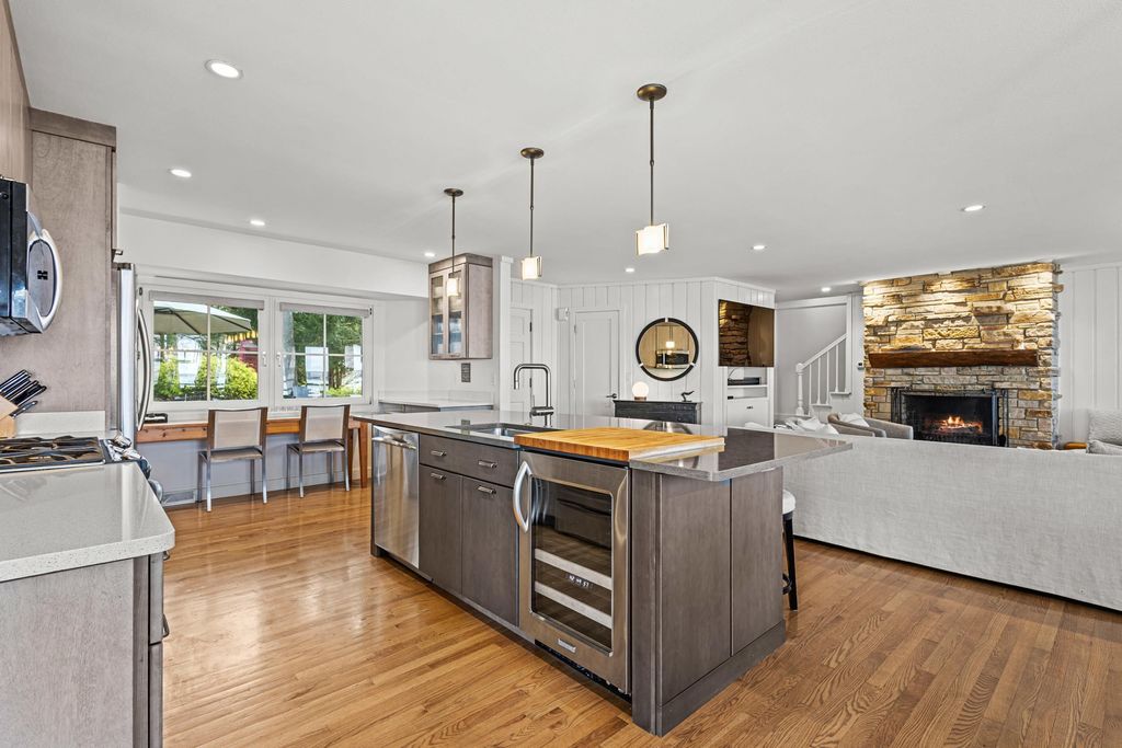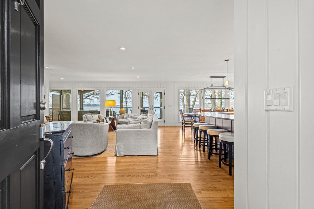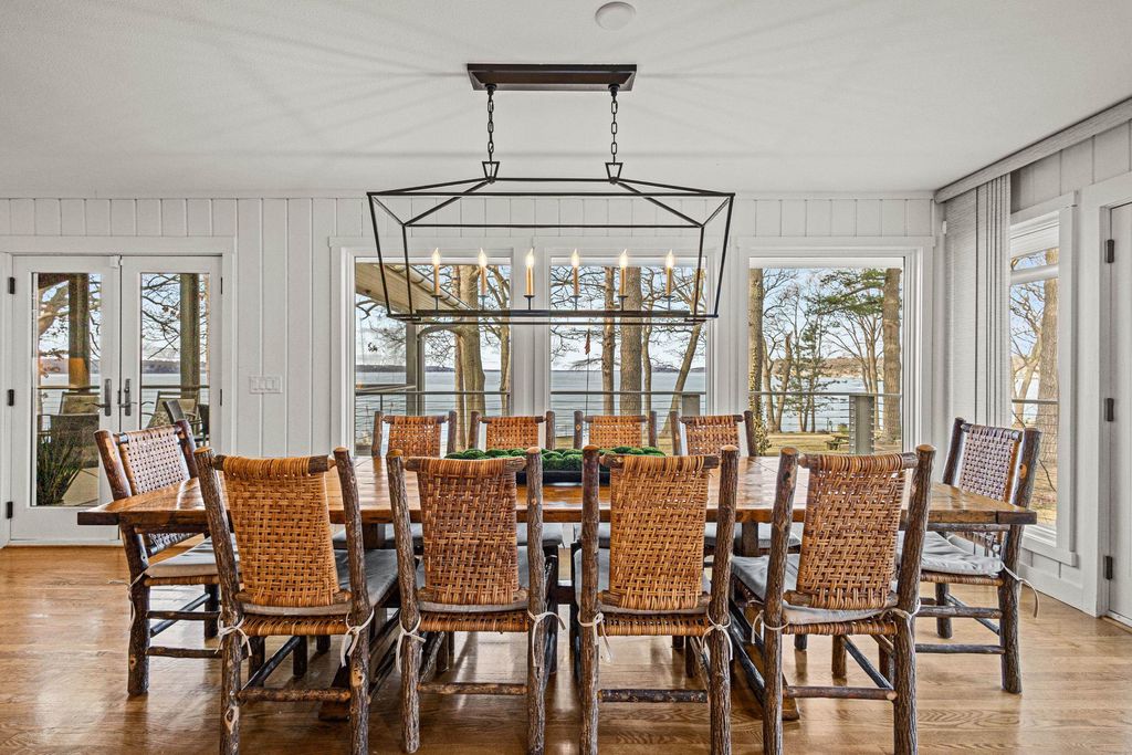 Prestigious Greenway Ave on the north shore of Green Lake is home to this exceptional modern rustic lake house. Originally built in 1945 and completely rebuilt top-to-bottom to today's standards, the residence blends timeless lake charm with refined comfort. The expansive great room serves as the heart of the home, creating an inviting central gathering space. Offering 6 bedrooms plus a den and 5.5 baths, the home is designed for both relaxation and entertaining. The huge lakeside screened porch with four skylights captures breathtaking water views. A vaulted ceiling highlights the main-floor primary suite, while an upper-level ensuite and spacious lower-level family room provide room for guests. Two wood-burning fireplaces, warm wood floors throughout, and a durable metal roof add character. Outside, enjoy the large lakeside fire pit and beautifully landscaped grounds on one of Green Lake's most coveted streets.
