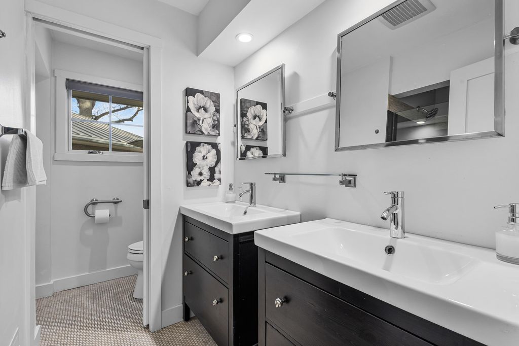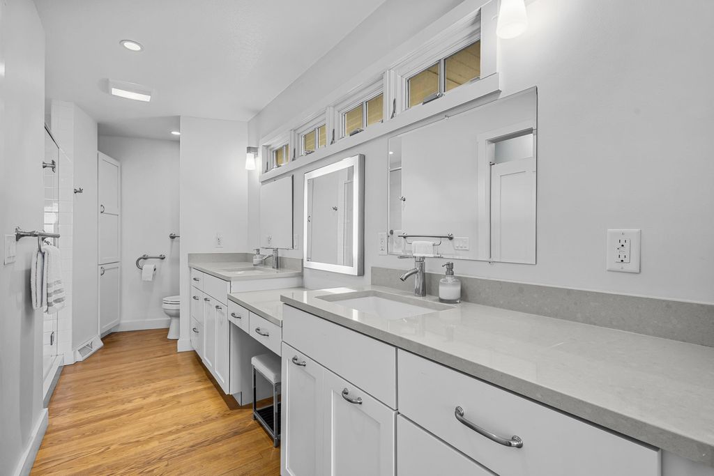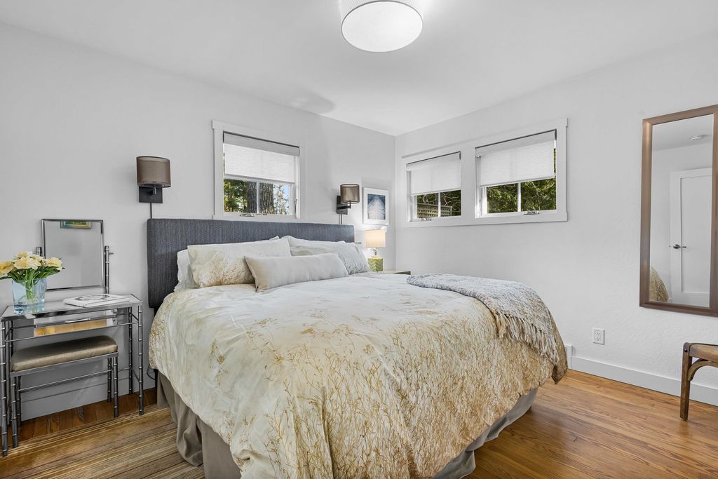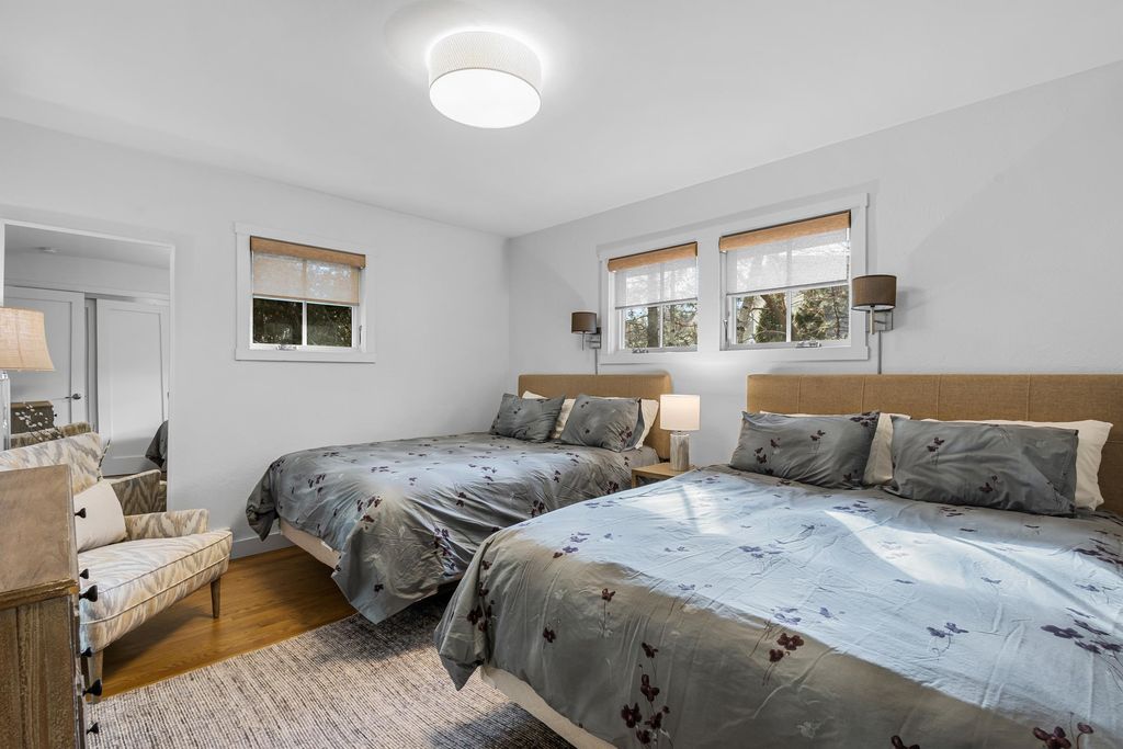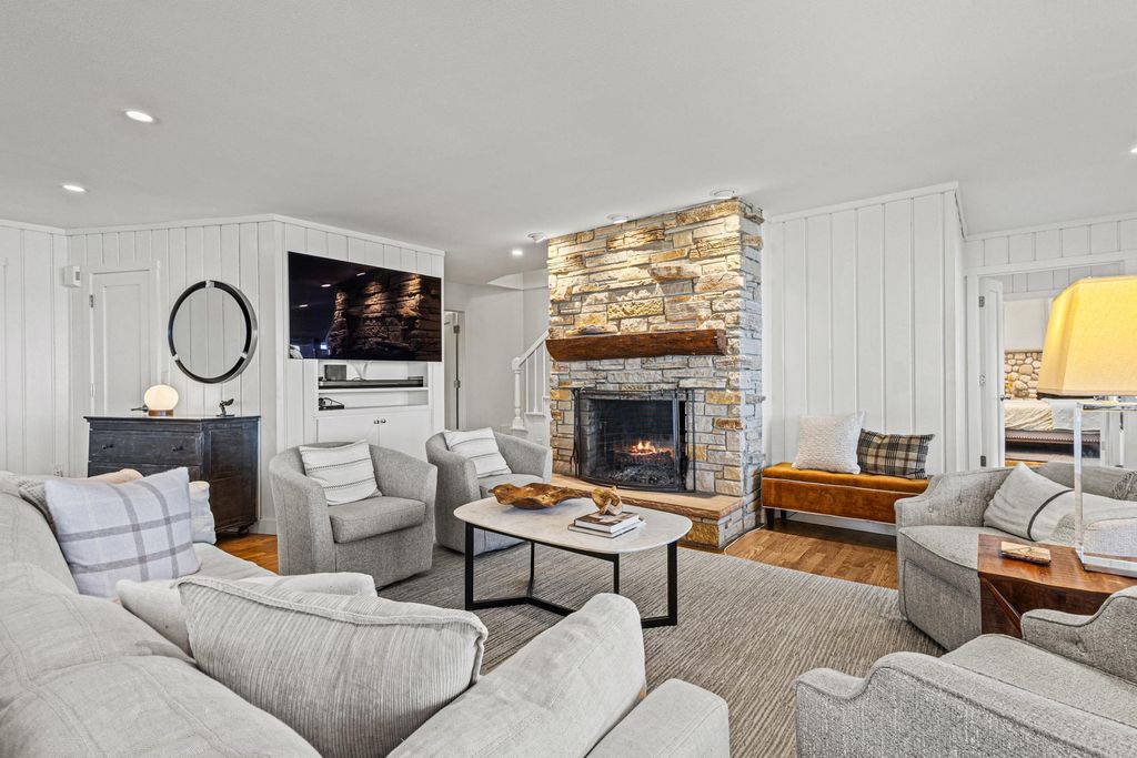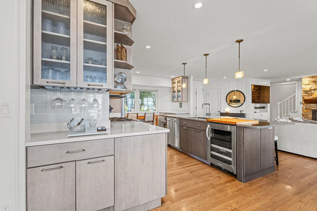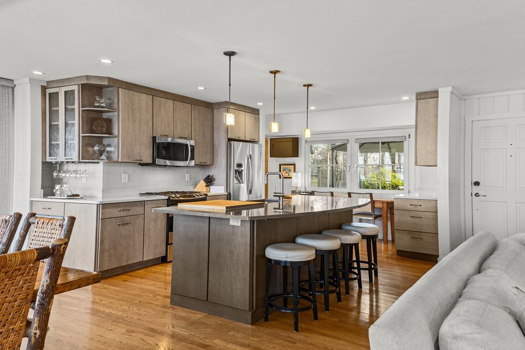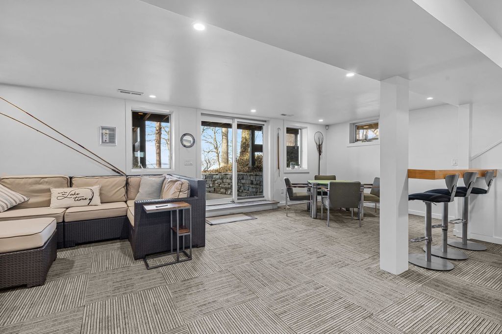 Prestigious Greenway Ave on the north shore of Green Lake is home to this exceptional modern rustic lake house. Originally built in 1945 and completely rebuilt top-to-bottom to today's standards, the residence blends timeless lake charm with refined comfort. The expansive great room serves as the heart of the home, creating an inviting central gathering space. Offering 6 bedrooms plus a den and 5.5 baths, the home is designed for both relaxation and entertaining. The huge lakeside screened porch with four skylights captures breathtaking water views. A vaulted ceiling highlights the main-floor primary suite, while an upper-level ensuite and spacious lower-level family room provide room for guests. Two wood-burning fireplaces, warm wood floors throughout, and a durable metal roof add character. Outside, enjoy the large lakeside fire pit and beautifully landscaped grounds on one of Green Lake's most coveted streets.