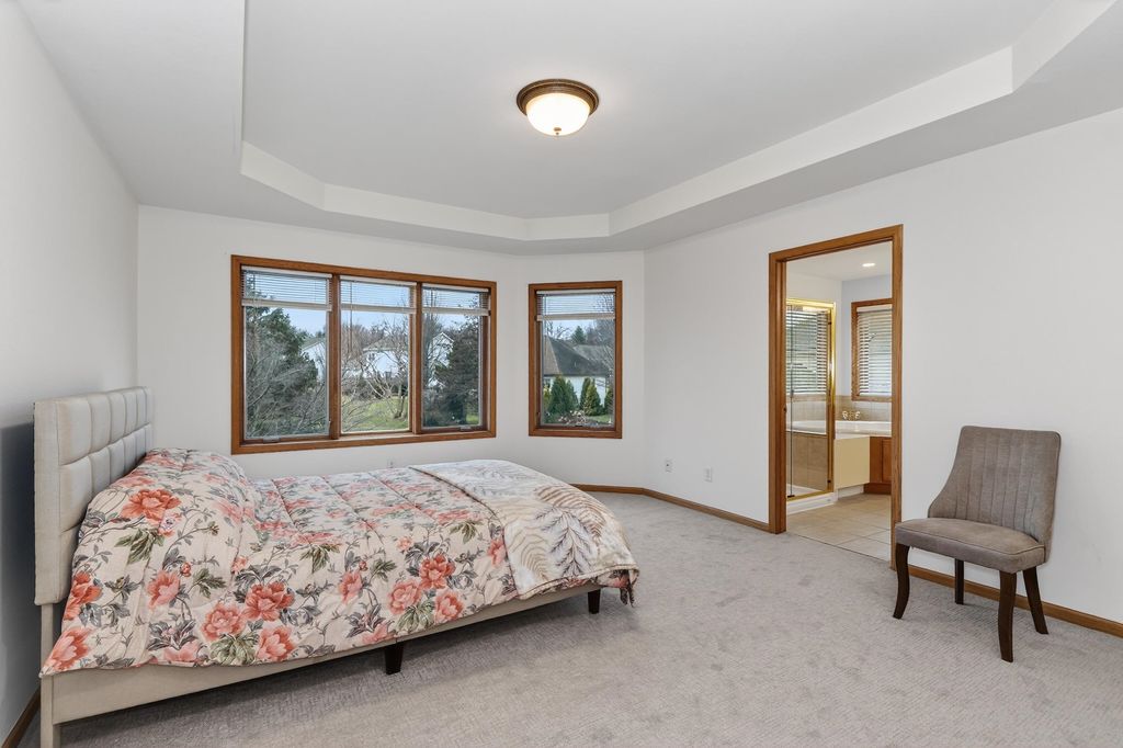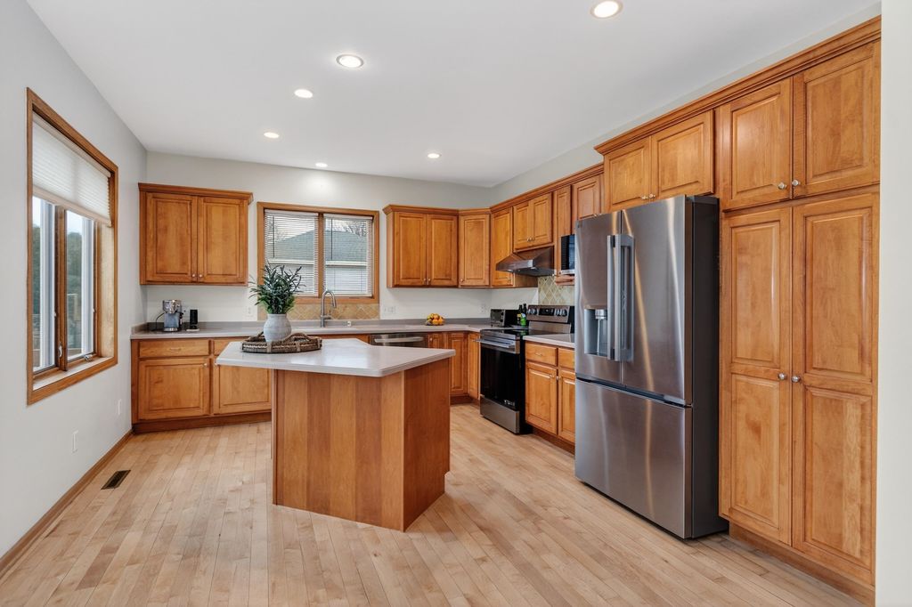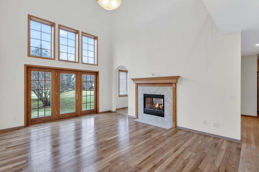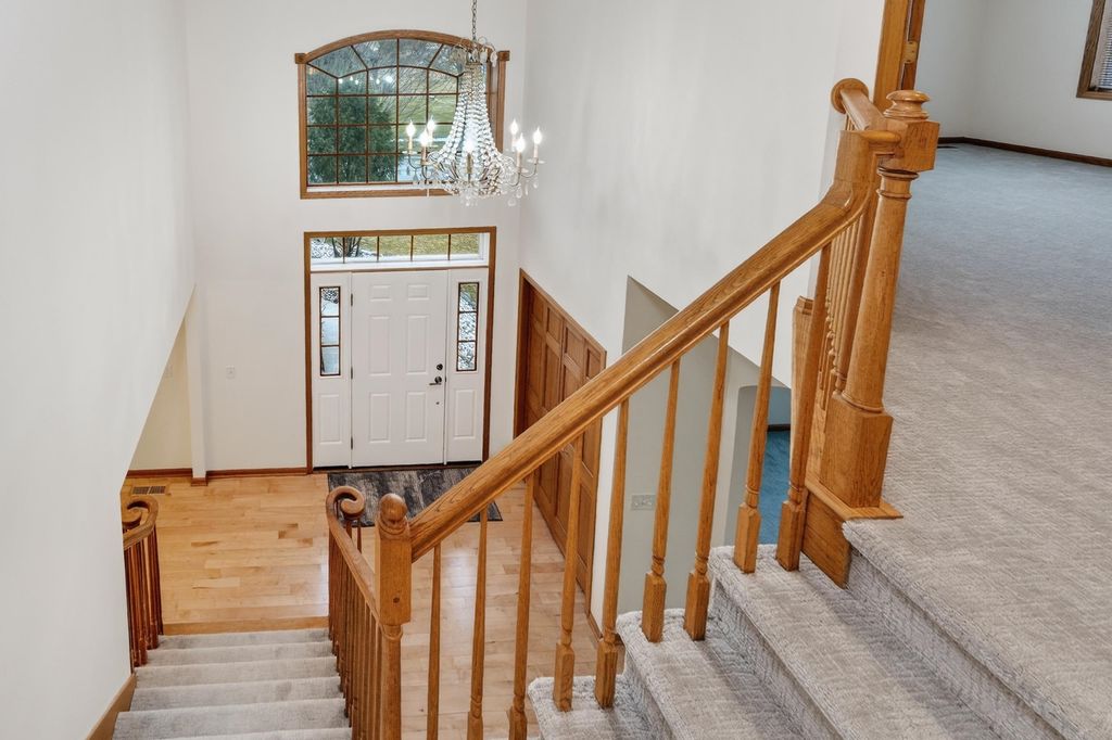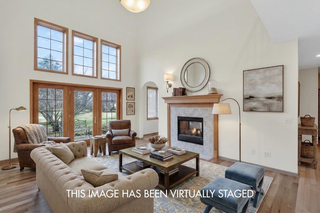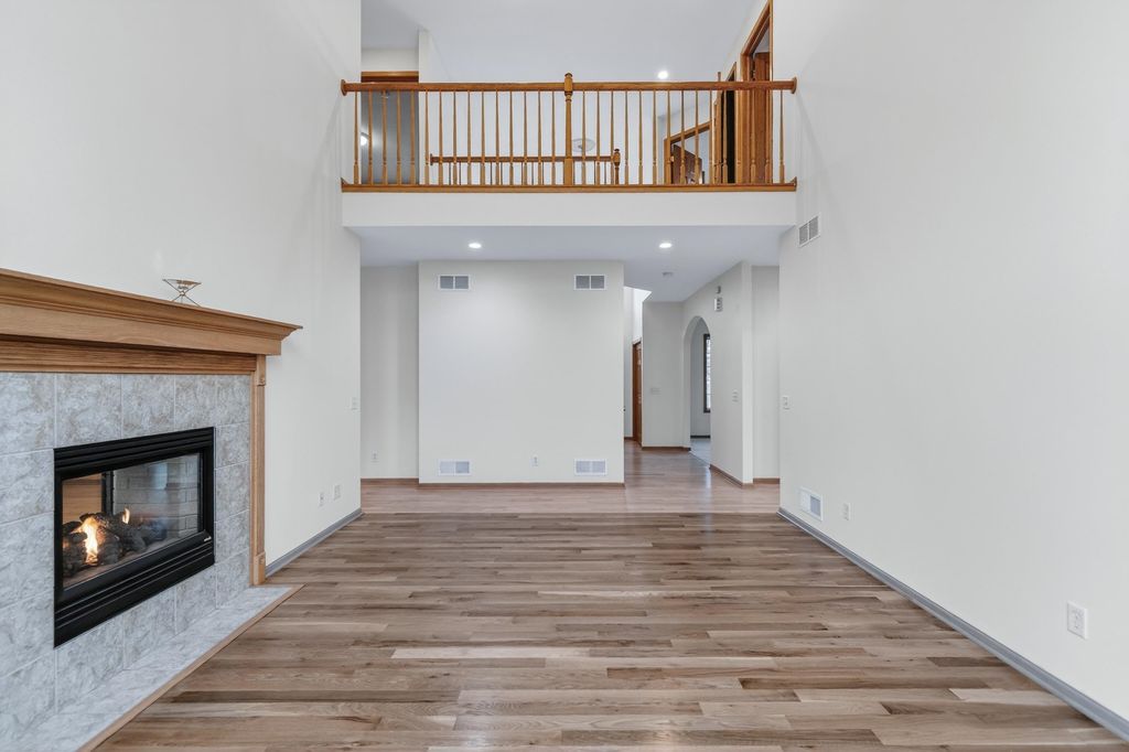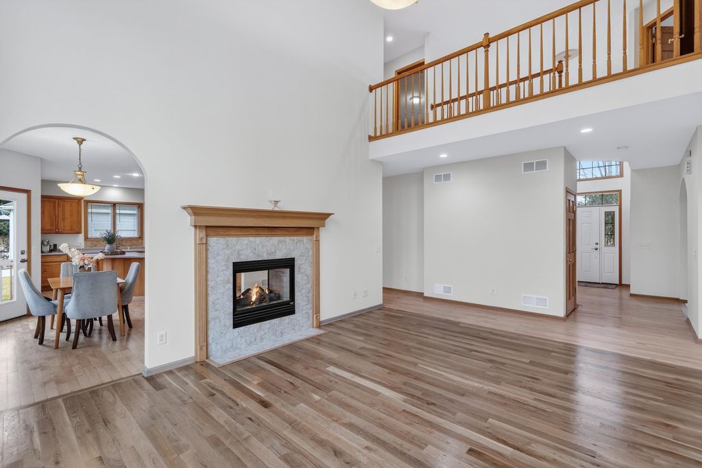 Elegant custom home in Hawks Landing offers 4400+ sf & comfortable gathering rooms. Walk into your dramatic 2 story great room featuring new white oak floors & 2-sided fireplace w/large windows overlooking the private yard. The kitchen boasts all brand new appliances, maple cabinets & fireplace to the LR. 4 brs up, main floor office, formal dining, 1/2 bath & laundry on main level. Private owner's suite has WIC, jetted tub & beautiful views. 2nd en suite w/wood floors & WIC and bedrooms 3-4 have a jack & jill bath. Finished LL offers kitchenette, 5th br/flex room, spacious rec room & lots of light. This home has been beautifully maintained. ALL new carpet, paint, refinished hw, & brand new furnace & W/D. Neat as a pin & ready for your finishing touches!