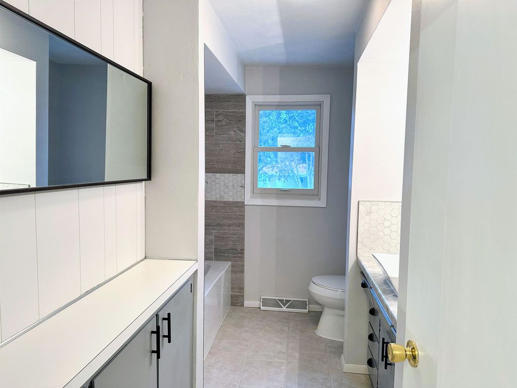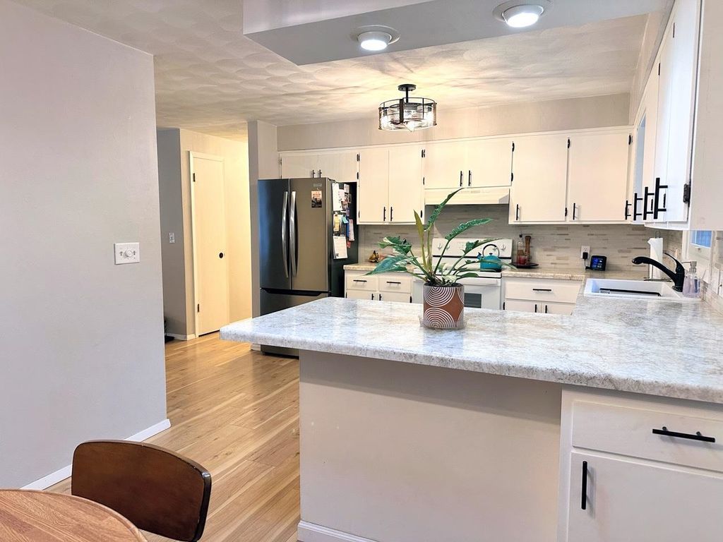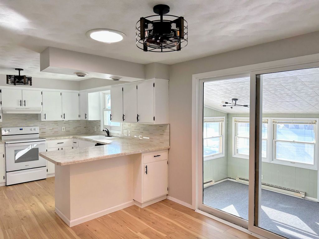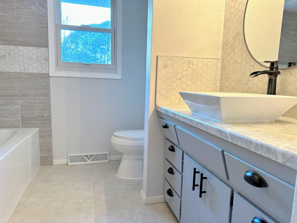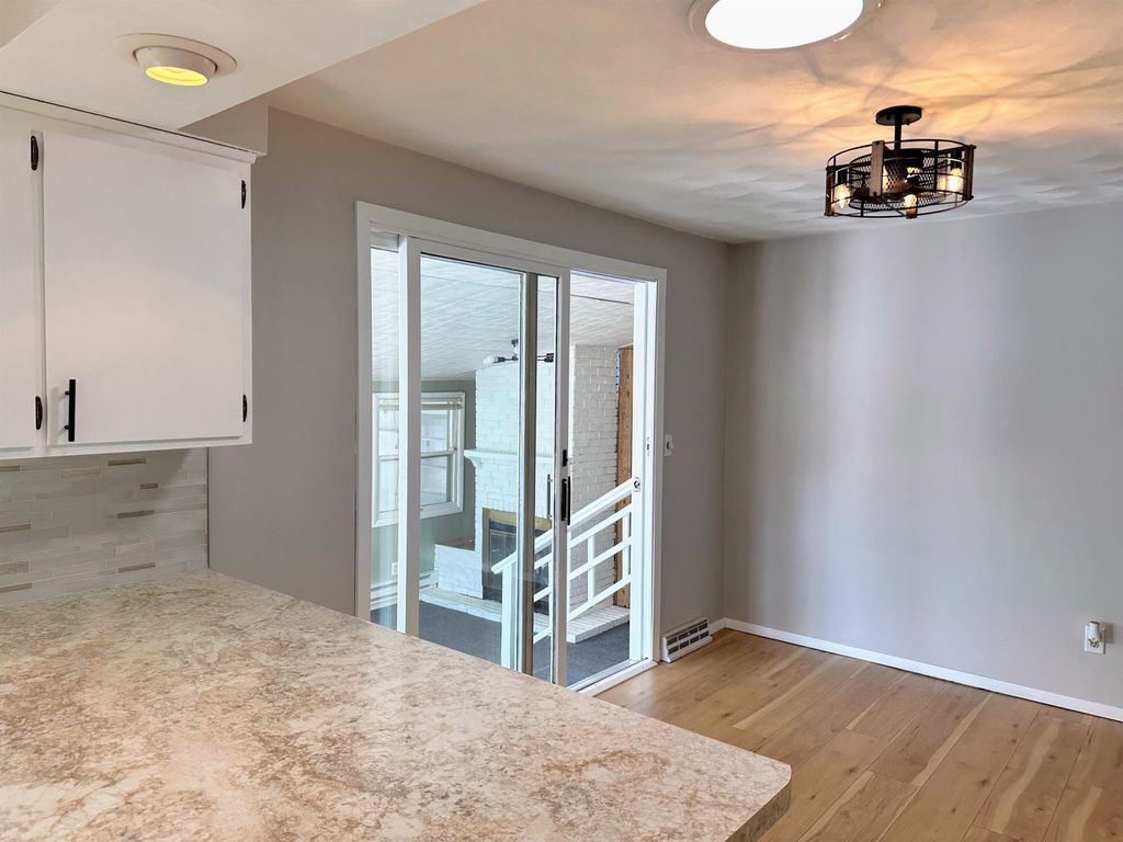 Updated ranch home with the neutral color scheme that is warm and inviting. The living area, kitchen and dining seamlessly flow. This home boosts new flooring in 2023 throughout the entire home, new fixtures, bathroom, updated painting plus more. 3 bedrooms and 2 bath with a 4th non-conforming bedroom in the oversized basement. 3 bedrooms on the main level with one full bath, and a sun room with lots of natural light. Beautifully tiled bathroom with new fixtures and bathtub in 2023. Basement has an overly large Family room, 4th non-conforming bedroom and another room for an office, craft room, hunting room, (5th non-conforming) whatever you desire. This home features an attached 3 stall tandem garage. Poured concrete basement, central air, and includes all appliances. For piece of mind, this home has an installed radon system, gutters and downspouts.