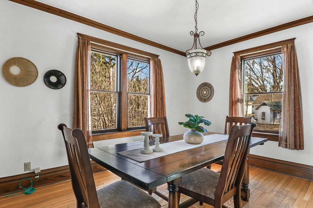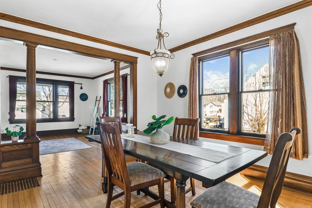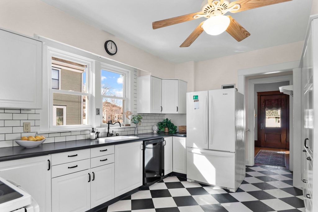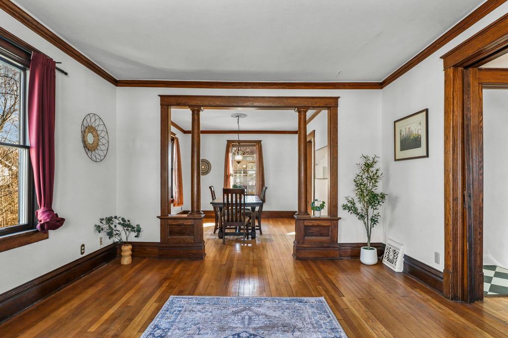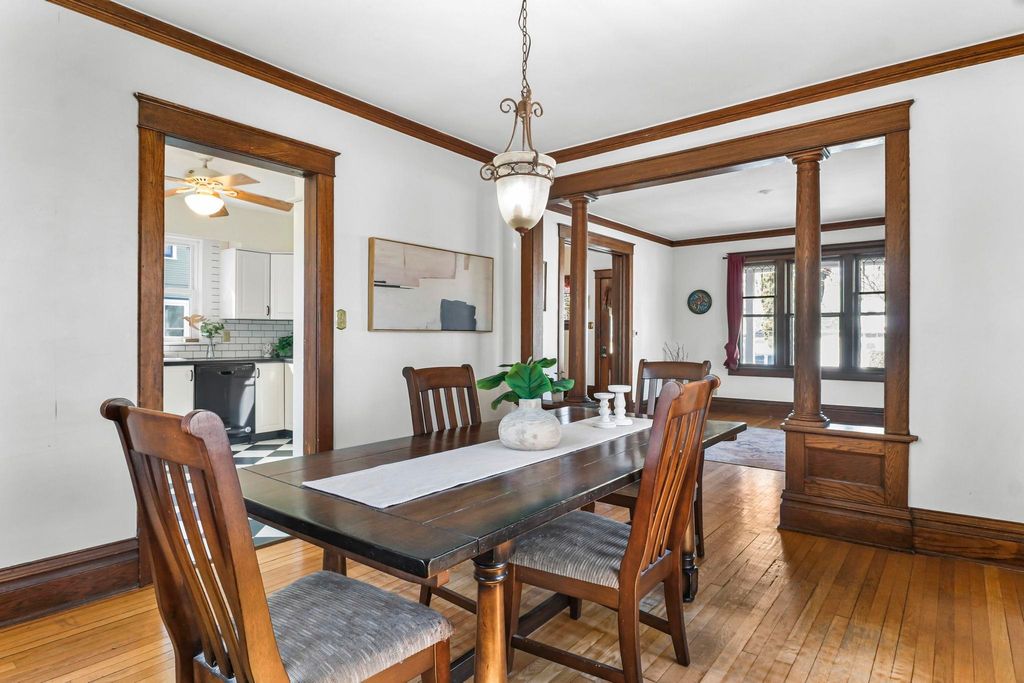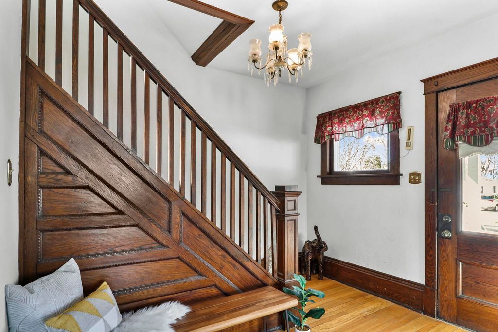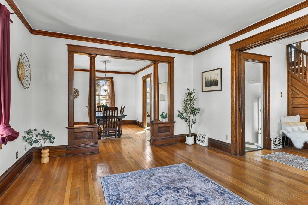 Show March 12th. Two Story Colonial boasts two lemonade sipping covered porches, walkable to downtown and shopping, all while being tucked on a quiet residential street. The interior is rich in turn of the century classics; hardwood floors, formal foyer, crown molding, columns separating living and dining, 9ft ceilings and original woodwork. Spacious kitchen remodeled in '20 boasts white cabinetry, pantry and newer appliances. 3 bdrms on the second floor with the primary bdrm offering a walk-in closet, and access to 2nd floor porch. Third floor loft offers room for a home office or playroom! The basement rec room is the perfect space for a home gym or media room, plus the second full bath! Spacious lot great for gardens, fido and friends + 2 car garage and kids playhouse. UHP Elite Home Warranty, new roof '22 & windows '15.