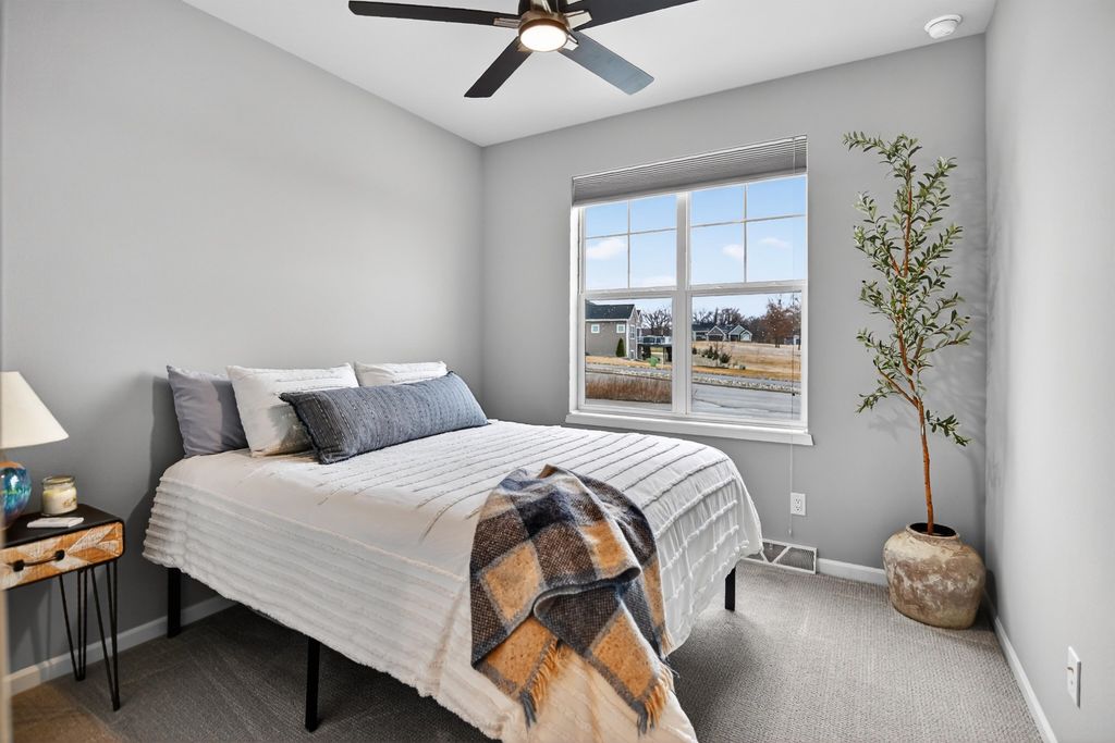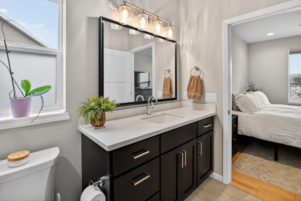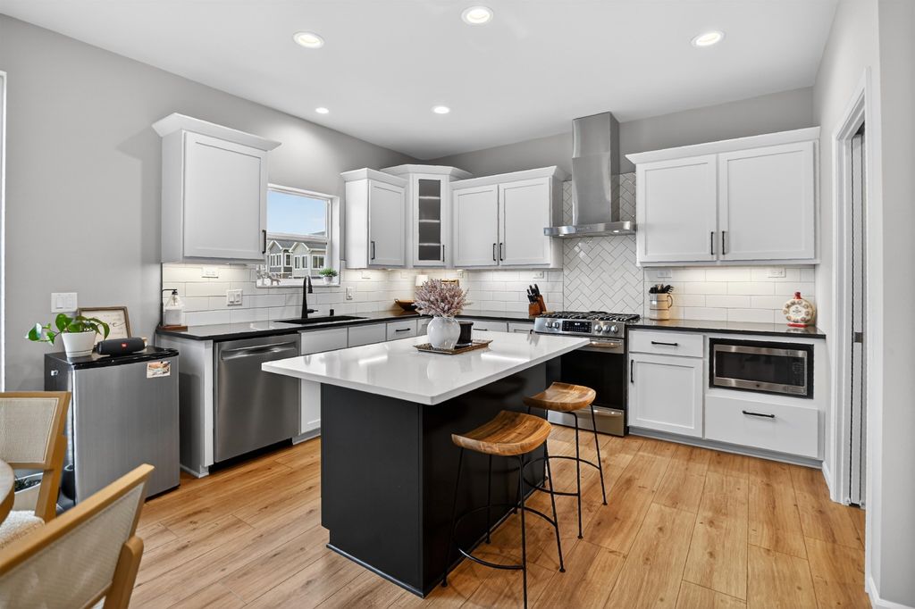 Open House 3/15 11-1. Filled with natural light and thoughtfully designed, this home offers a bright, open feel with a setting that's hard to find. The south-facing backyard brings sunshine into the main living spaces throughout the day, while no neighbors behind provide a peaceful sense of privacy. The open-concept layout flows effortlessly from the kitchen through the living and dining areas, featuring modern finishes, clean lines, and large windows that frame the backyard and create a warm, inviting atmosphere. The space is ideal for both everyday living and entertaining. Step outside to the composite deck added in 2024-perfect for morning coffee, summer grilling, or relaxing while enjoying open views and abundant sunlight. The backyard feels like a natural extension of the home, offering privacy and comfort year-round. With a smart layout, stylish finishes, and a light-filled, private setting, this move-in-ready home stands out for for both comfort and ease of living.