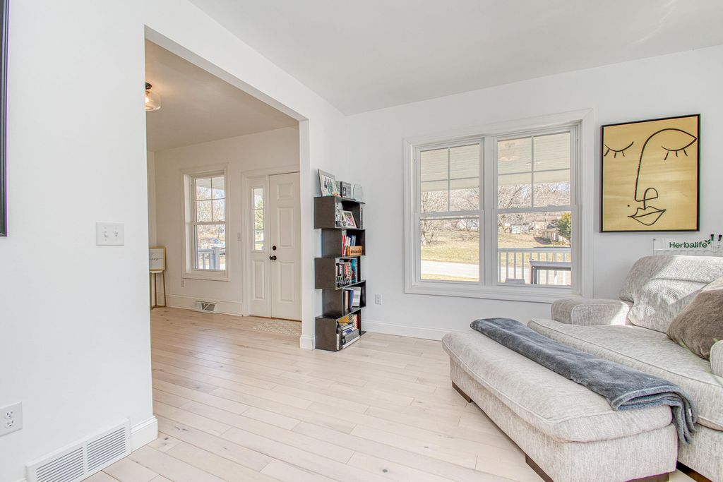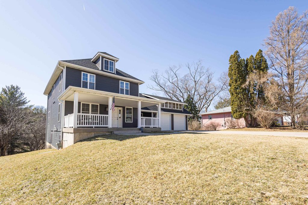 Beautiful two-story farmhouse-style home offering 4 bedrooms and 3 full baths. Relocated to this setting and completely renovated in 2021, this property blends timeless character with modern updates designed for everyday living. Inviting front porch leads to a stunning foyer with open staircase. Bright open-concept kitchen, dining, and living area features double doors to a covered back porch overlooking the creek. Main level includes private office with adjoining full bath, first-floor laundry, and spacious mudroom off the attached 2-car garage. Upper level offers four bedrooms, including a primary suite with soaking tub, tiled shower, and walk-in closet. The exposed walk-out lower level is finished as a workout haven, plumbed for a future full bath, and still offers generous storage "” plus a walk-up attic for even more space.