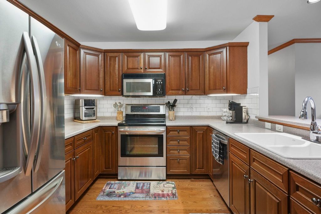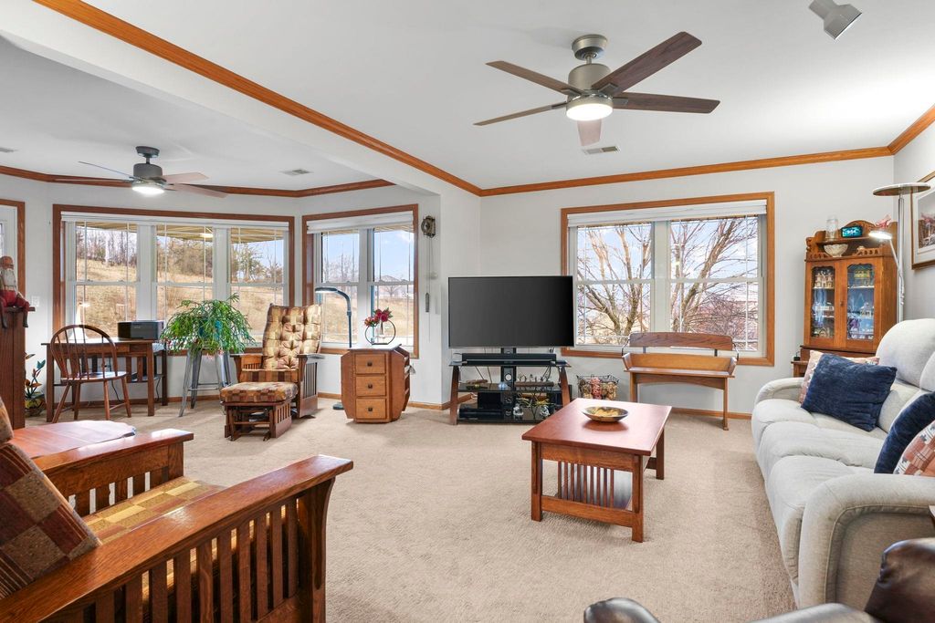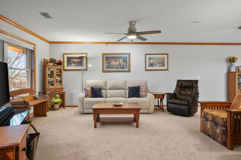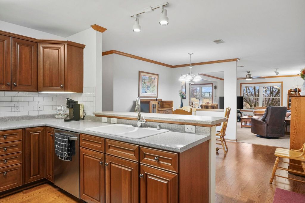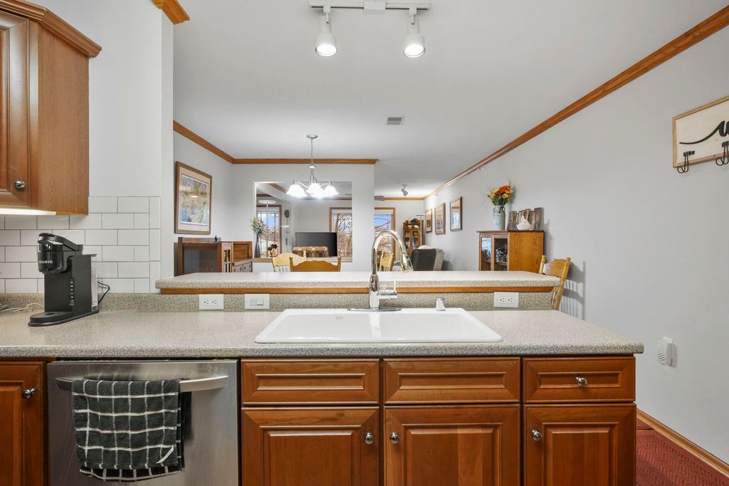 Bright end-unit condo in a welcoming 55+ community! This 2 bed, 2 bath home features new paint, a new furnace, abundant natural light, crown molding, and an updated kitchen with a pantry. Enjoy your morning coffee on the private balcony. The unit includes heated underground parking and a large storage unit, plus the convenience of in-unit laundry. Monthly dues include Spectrum TV and internet. Ideally located near shops, dining, parks, and scenic walking trails.