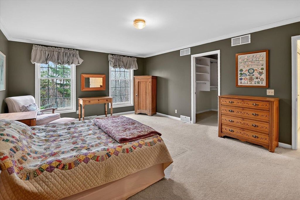 Enjoy peace and tranquility in this wooded over 5 acre setting, yet so convenient & close to the Village of Oregon. First time on the market, this property built in 1992 has been beautifully updated with a gorgeous kitchen featuring large island, quality cabinets, quiet close and solid dovetailed drawers, double ovens, cooktop range, quartz countertops and pantry. Main level has oak hardwood floors, bright open floorplan, spacious great room with WB fireplace, built-in shelving, french doors to screen porch & deck, a front office and a full bath plus mudroom from garage. Second floor offers primary bedroom with private bath & walk-n closet, two additional bedrooms and full bath plus convenient upper level laundry room with window. Lower level has nice rec room, exercise/flex room and plenty of storage. Lots of room to roam outside, plus two sheds. Private well and septic. New furnace & A/C in 2021 & new water heater in 2024 , newer windows too. Property will not disappoint!