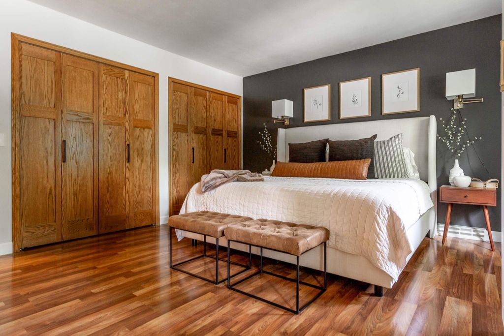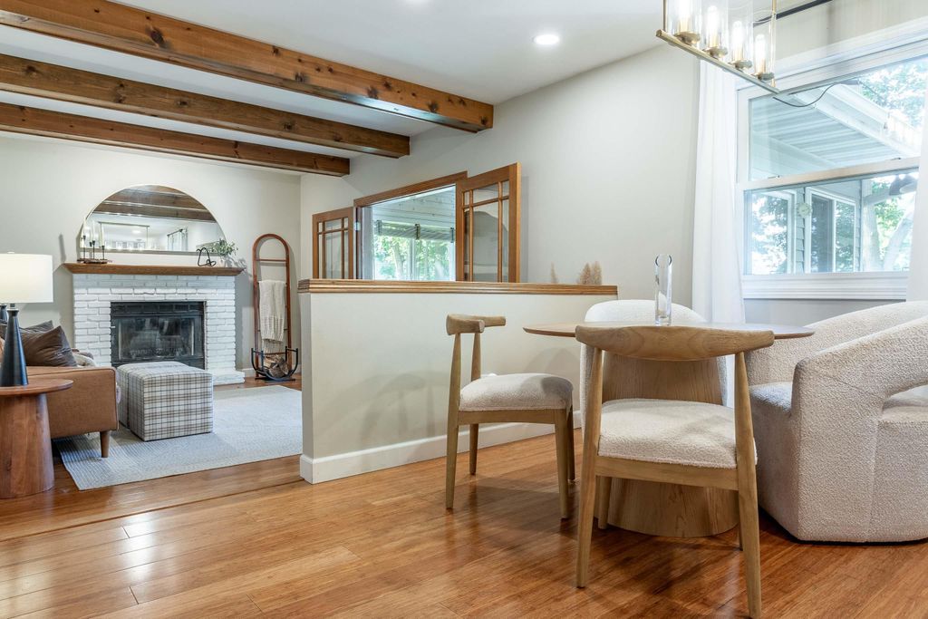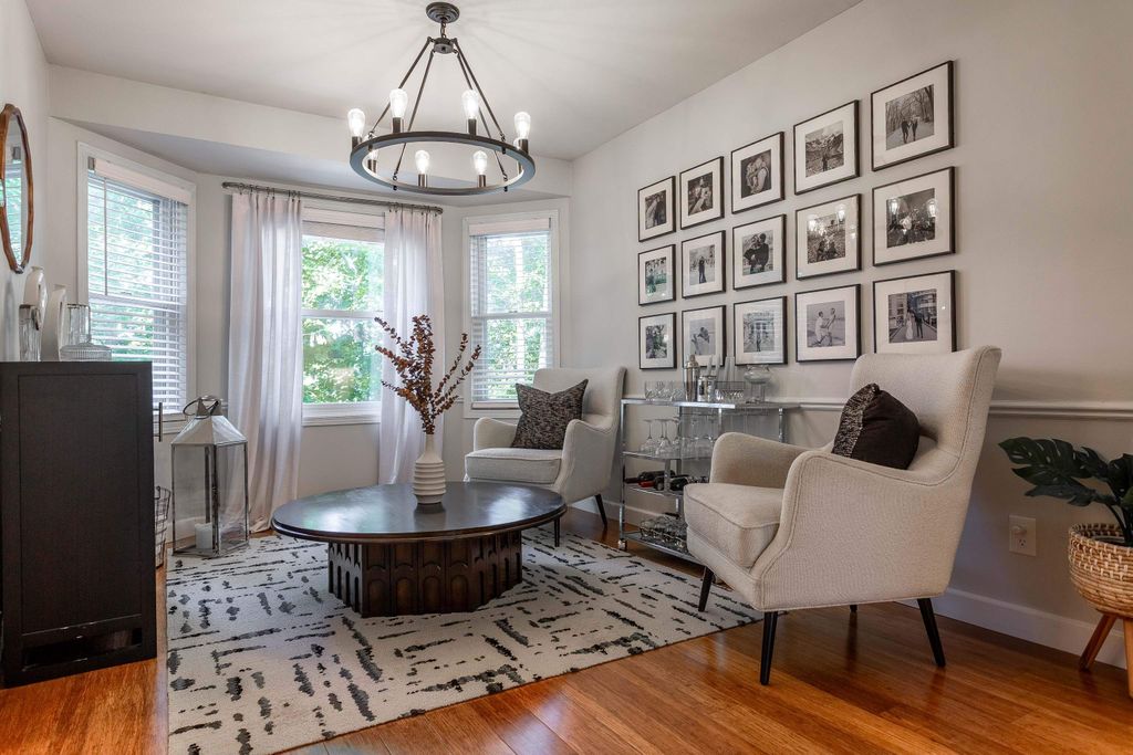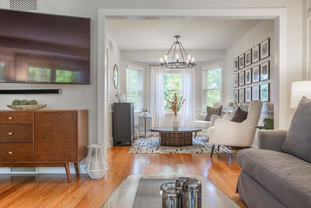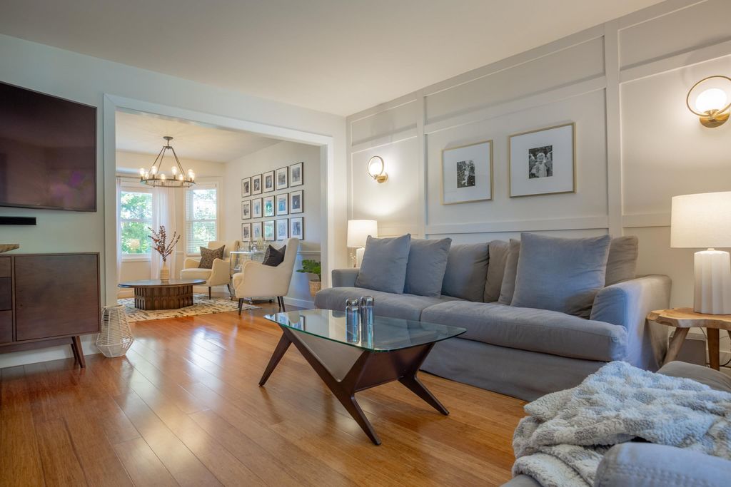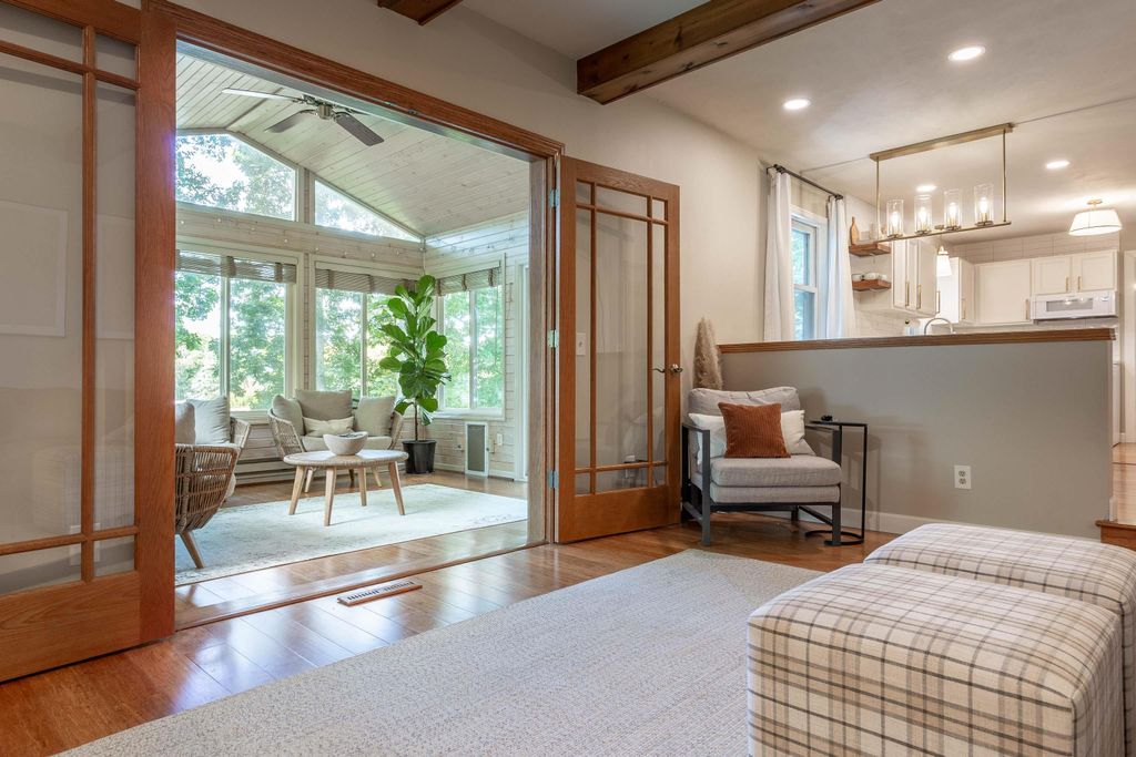 Nestled on a wooded cul-de-sac, this picture-perfect 3-bedroom, 2.5-bath home offers an inviting layout and thoughtful updates throughout. The freshly painted interior and gleaming wood floors create a warm first impression. A bright front living room flows into the dining area, where bay windows overlook the lush backyard. The updated eat-in kitchen features quartz countertops and a classic subway tile backsplash. The cozy family room with wood-burning fireplace opens to an incredible sunroom and deck, perfect for enjoying the private, fenced yard. Upstairs you'll find two spacious bedrooms, a full bath, and the primary ensuite. The finished lower level rec room walks out to a beautiful paver patio with a built-in firepit - ideal for relaxing or entertaining. Don't miss this gem!