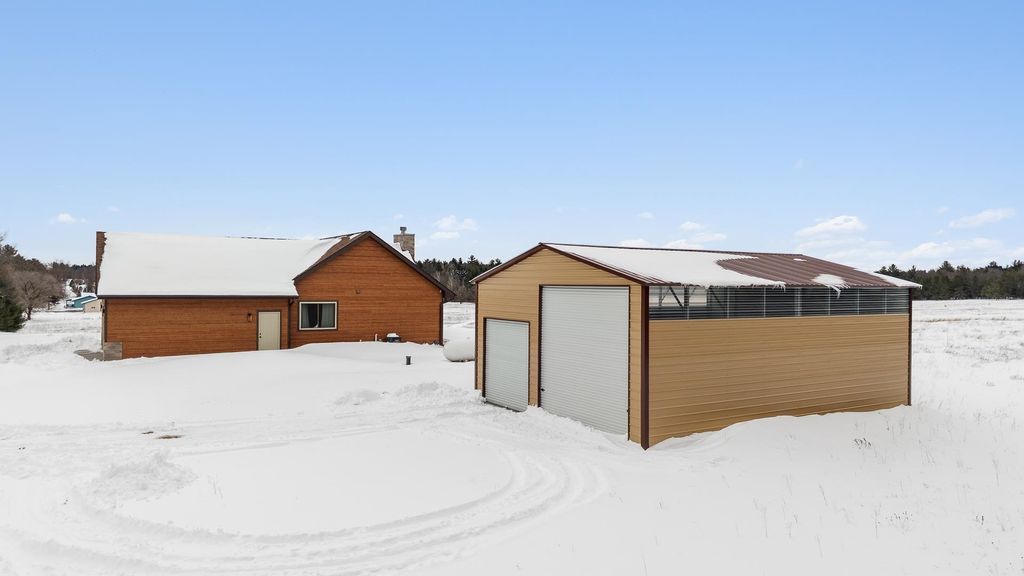 Elevated design and high-end finishes throughout this 2023 custom built Redwood designer home sitting on 31.6 sprawling acres, anchored by spa-inspired bathrooms and thoughtfully curated details that create both comfort and sophistication. The open, functional layout is ideal for everyday living or hosting, while large windows invite in natural light and surrounding views of Wisconsin's best landscapes. The land becomes the lifestyle here. Whether you envision more trails, recreation, hunting, hobby farming, or simply unmatched privacy, this property gives you the freedom to use it your way. Enjoy the beautiful creek running through it! 30x40 outbuilding with a concrete floor provides space for equipment, vehicles, and all the toys that come with country living, making this an ideal setup for outdoor enthusiasts or anyone needing serious storage. The lower level offers substantial unfinished space, creating an opportunity to expand finished square footage and customize to your needs!