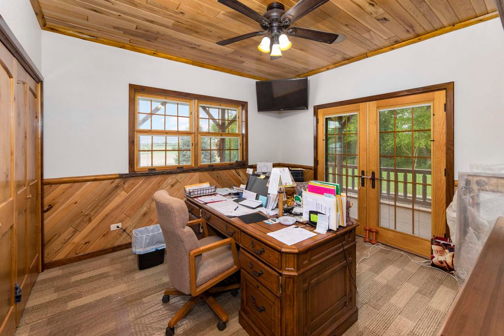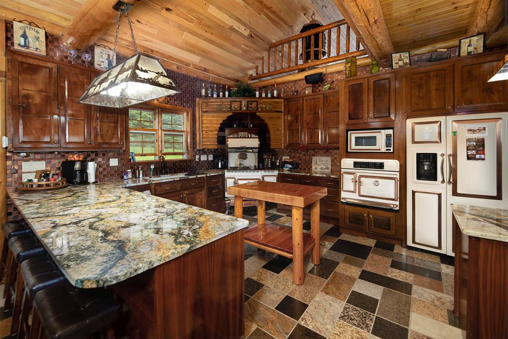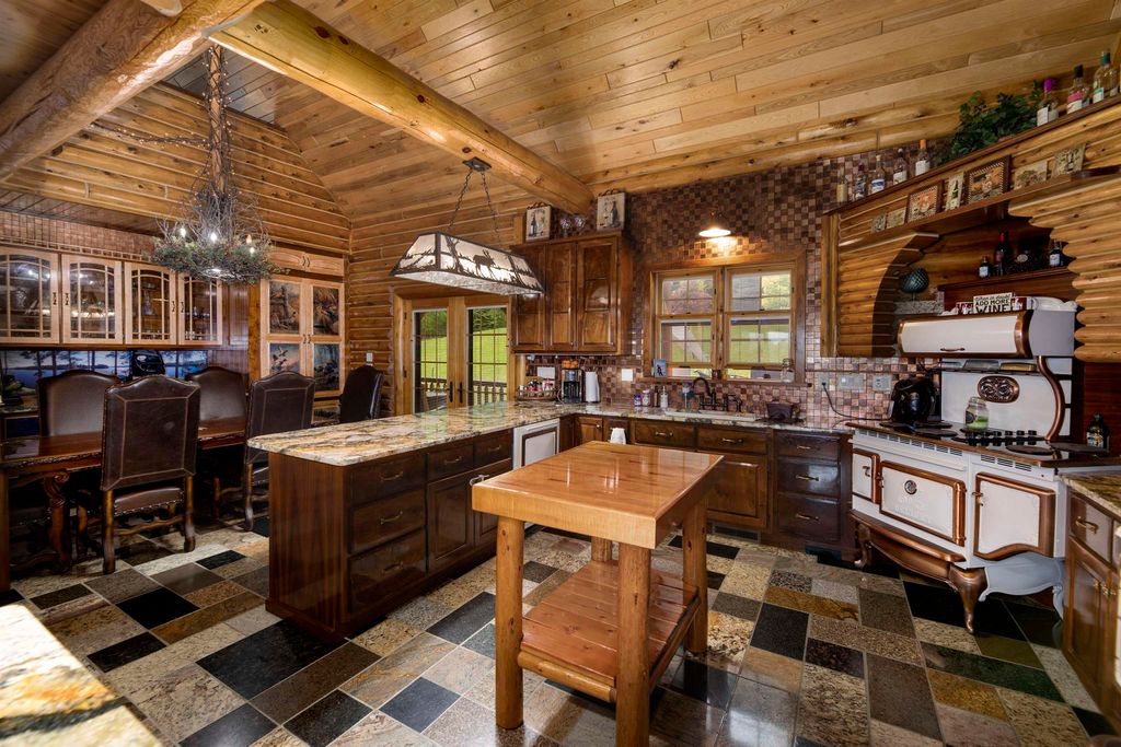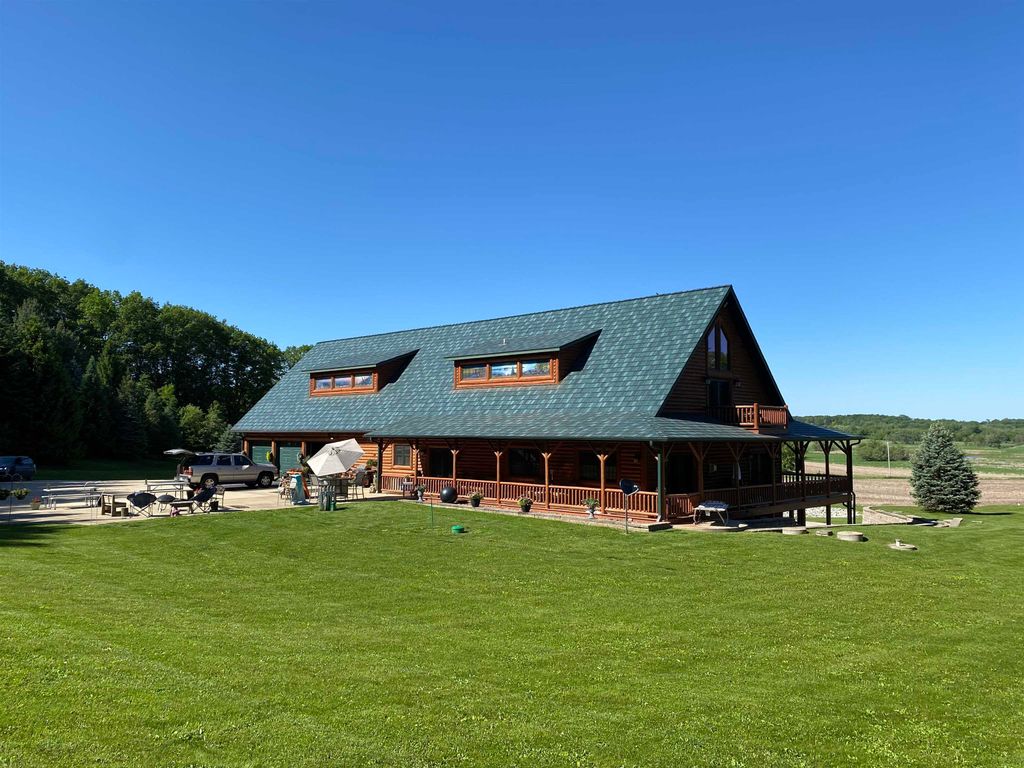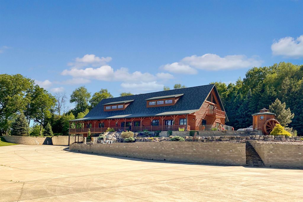 Custom Built Country Retreat with space to work, store, and enjoy the outdoors. If country living with room for projects, equipment, vehicles, and hobbies is your dream, this property delivers. The custom log home features black walnut floors, a cooks kitchen, beautiful mosaic tile baths, metal roof, and a heated 3+ stall attached garage. Thoughtful touches include a lower level kitchen for entertaining, a home theater, and a custom gun case. Outside is where it truly shines with two impressive 40 x 50 heated outbuildings with concrete floors perfect for workshops, storage, toys, or small business use. A heated driveway pad adds everyday convenience. Luxury living paired with the space and functionality that makes country life so enjoyable.