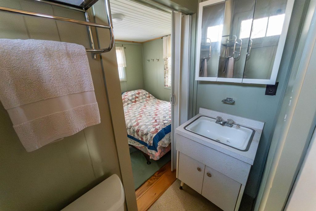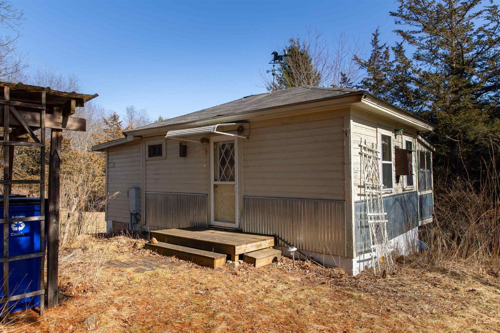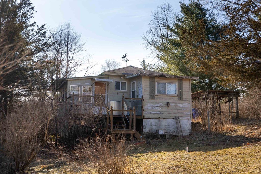 Tucked away at the end of a quiet country cul-de-sac, this charming older 1-bedroom cabin offers the kind of peaceful setting that's hard to find. Set on over 3 beautiful acres with frontage on Peppermill Creek, the property provides privacy, nature views, and a variety of birds and wildlife. The cozy cabin features a comfortable one-bedroom layout, open living area and a bright sunroom perfect for overnight guests, morning coffee, or simply enjoying the surroundings. A mix of trees and open space creates a secluded atmosphere while still offering plenty of room to explore, garden, or relax by the creek. Needing a fresh paint job and a few exterior repairs, this property has great potential to make it your own. Located a stone's throw from Wolf, Peppermill and Goose Lakes for an easy drive to go fishing. Whether you're looking for an affordable weekend getaway or rustic retreat, this unique creekside cabin offers a rare opportunity to own a private slice of heaven.