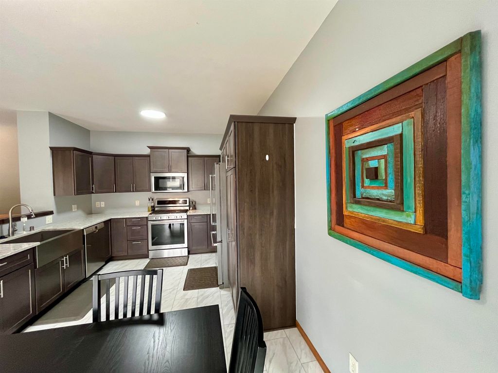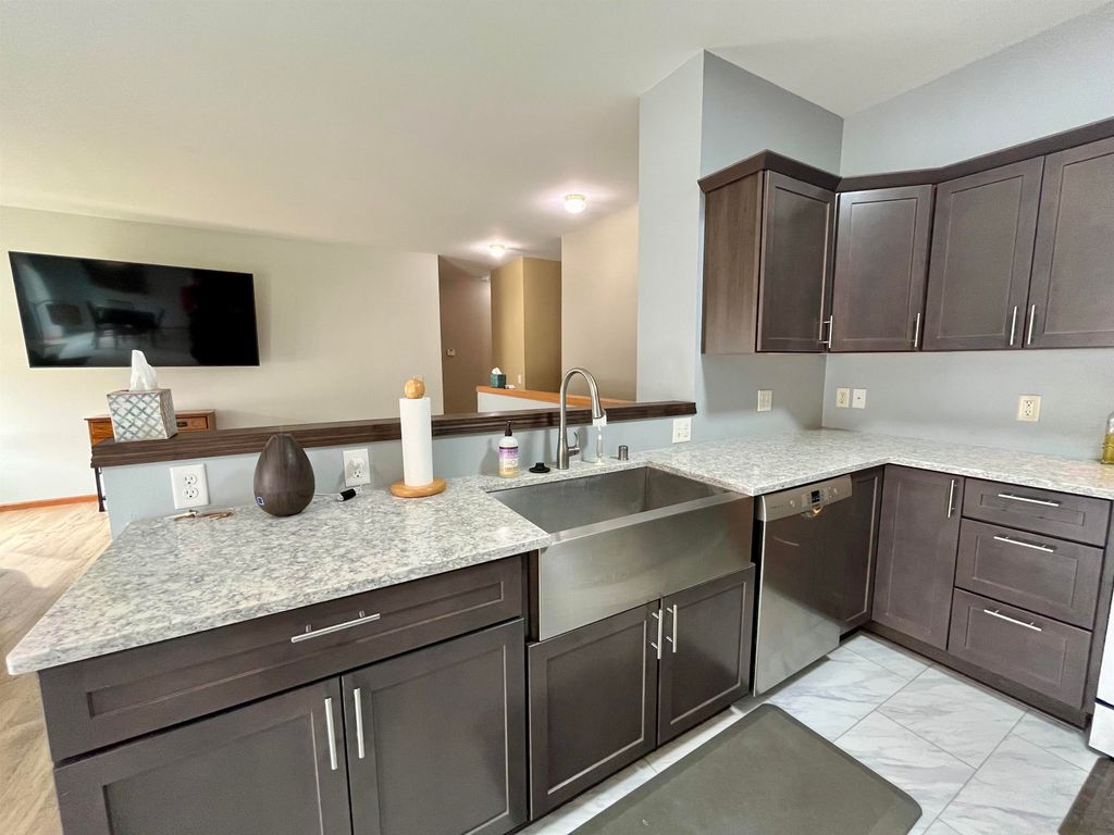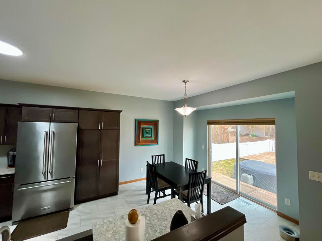 Don't miss out on this beautiful ranch on a quiet cul-de-sac in Verona school district! Extensive updates include: Stunning kitchen (2020), roof (2022), Pella windows and patio door (2022), egress window (2022), radon mitigation system (2022), main bath remodel (2025), flooring upstairs (2025), flooring downstairs (2020), vinyl fence (2025). Chef's kitchen features beautiful gray shaker cabinets, stainless appliances, granite counters, breakfast bar, tile floors, and a huge farm sink! Patio walks out to paver patio that overlooks fenced (vinyl) back yard perfect for your pups to run. Expansive lower level with rec room, bedroom, 1/2 bath, and office/den with french doors. Just minutes to Epic, Costco, and many popular Verona restaurants and shops. Seller will leave LR flat screen tv, pool for platform, and lower level couch if desired. Don't miss out on this beautiful home!
