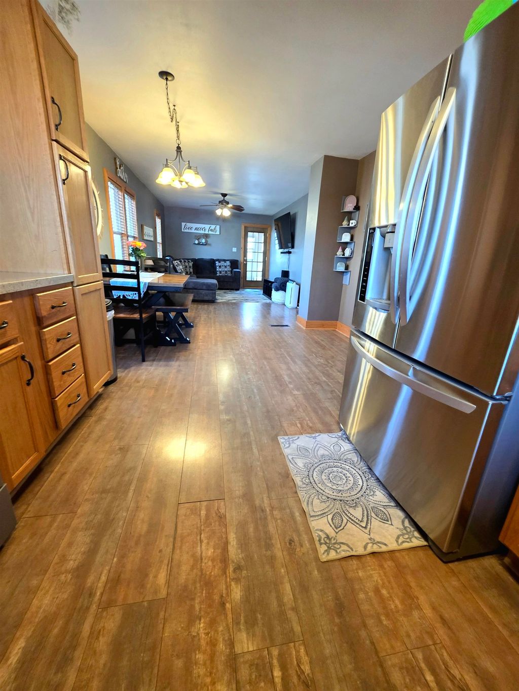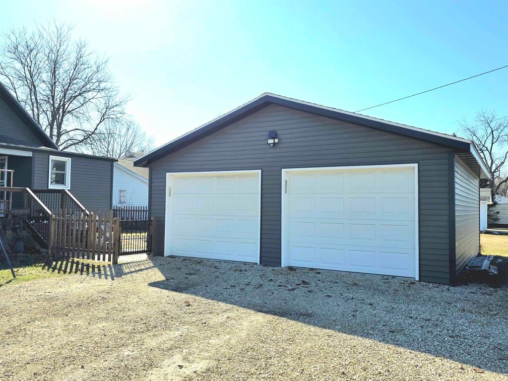 Immaculate & well laid out, this 4-bed, 2-bath home sits on a corner lot with a fenced yard and impressive updates throughout. The home was completely gutted and remodeled around 2014, including plumbing, electrical, windows, doors, trim, drywall, and flooring. Major recent upgrades continue the trend with a steel roof scheduled to be completed on the house (April 2026), new main-level carpet (2026), vinyl siding (2025), and fresh gravel (2025). Mechanical updates include a furnace and water heater (2020) and a gas stove (2023). The 2 upper bedrooms home two large walk-in closets & the upper level has an addition storage room as well. The full basement offers tons of extra space & endless possibilities. Finish it off or keep as is for a workshop or extra storage. The insulated, heated garage built in 2017 features 200-amp service, offering excellent space for vehicles, hobbies, or storage. Move-in ready & proudly maintained, this property blends modern updates with everyday comfort.