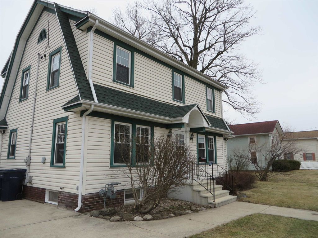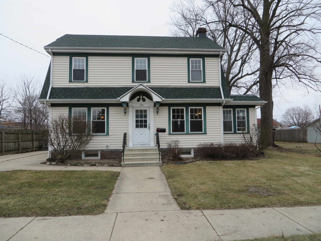 Beautiful Westside Colonial with the historic charm of original hardwood floors, trim, doors and most light fixtures. Kitchen was gutted and has all new cabinets, counters, sink, faucet and disposal. Main floor original hardwood floors were just refinished. Enjoy cozy nights in front of the fireplace in the large living room. Windows are all newer style. Sunroom is 4 season and could work as an office or even a 4th bedroom if needed. Upstairs has 3 nice sized bedrooms and a completely renovated bathroom. Garage is 24x30 built in 2008 with ceiling fans, 8' doors, insulation and LP heater. And will make a great workshop or party space with a backside overhead door for spilling out onto the yard. And at 30' deep the boat should fit! Additional 8x10 shed on concrete to store all the yard stuff and toys. Enjoy summers on the huge 14x23 deck. Back yard will be seeded and center circle is ready for plants and flowers. Lower level has a Rec room with bar area & full bathroom with laundry area.