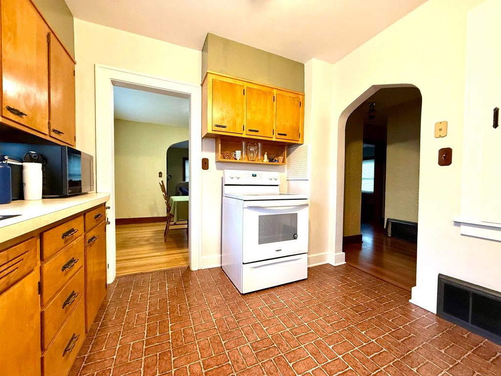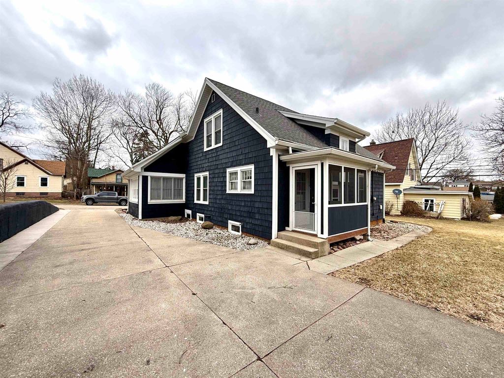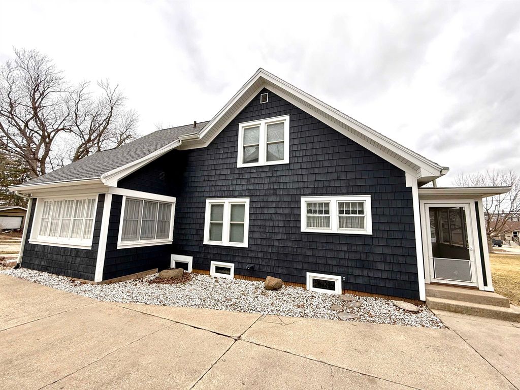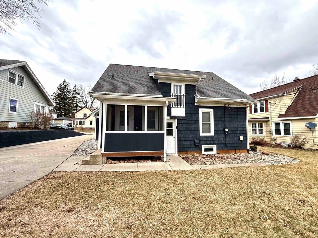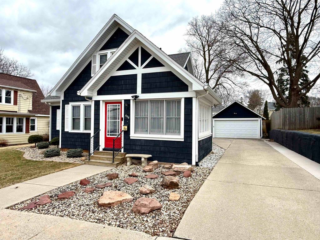 Nestled in the heart of Monroe, this 1.5-story Cape Cod offers a perfect blend of classic character and modern peace of mind. Built in 1930, the home's curb appeal is an authentic cape cod style - freshly painted navy blue shake siding with white trim, 2 car detached garage and a spacious lot just minutes from Monroe Clinic. All woodwork, doors and floors in the home were professionally stripped and stained. The home was completely spray-foamed along with all basement walls which were also whitewashed - extremely efficient home. 5 bedrooms including a 2nd floor primary suite with full bath and another main floor full bath that was also remodeled. Vinyl replacement windows, 200 amp circuit breakers, central air, roof in 2019, new garage roof in 2024, new staircase to basement and all new landscaping. Move-in-ready. The 3 season porch is so charming and spacious. Be ready to fall in love with this one!