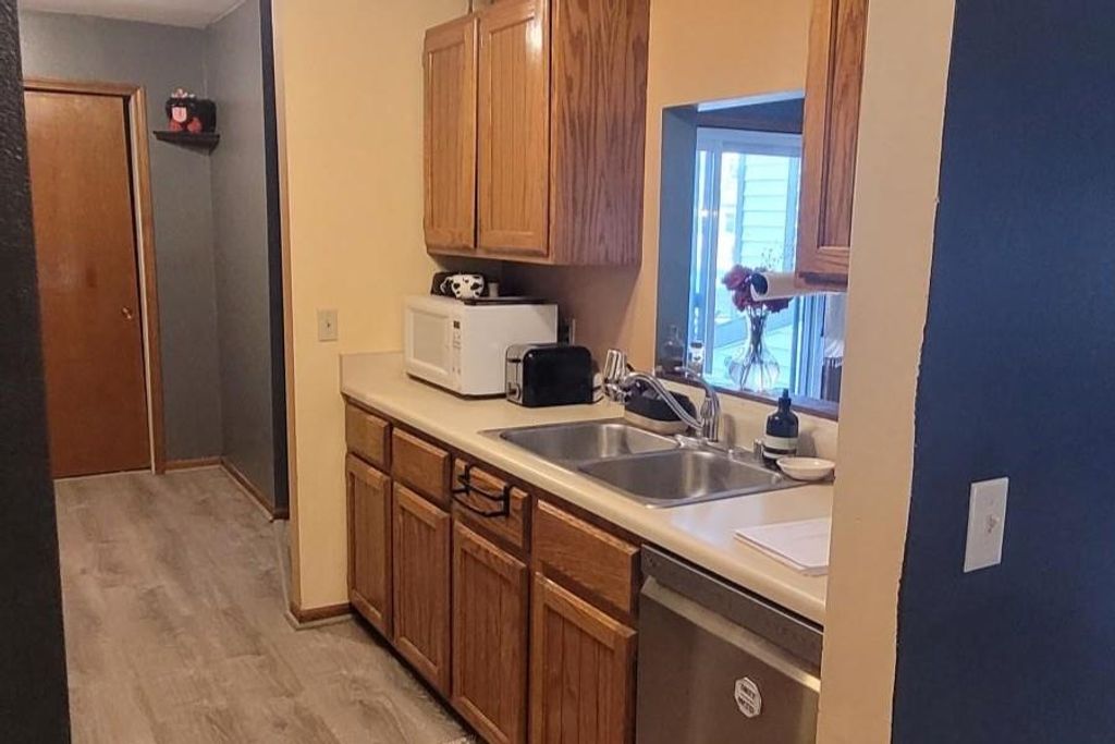 First floor Condo ready to move in! Convenient kitchen with all appliances. Plus, a pantry off the dining area. Spacious great room with patio doors out to small fenced in patio area. Pets are allowed and the fenced in patio area is a convenient outside space for your pet(s). Shared laundry area in the lower level of the building. The one car garage space and private storage unit are also located in the lower level of the building. Additional parking area at the rear of the building. Outside common spaces include a play area with swings and basketball hoop. You can picnic in your backyard. Close to walking trails, a large public park, and shopping.
