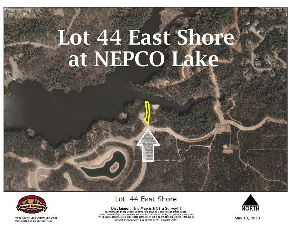 Over 60' of frontage on beautiful NEPCO Lake. This wooded lot right on the water provides for amazing water views ready for you to build your dream lake home. Situated between 2 championship golf courses & Wisconsin River, NEPCO Lake is a 500 acre crystal clear hard sand bottom all watersport lake. Boat, ski, fish, swim right from your property. Own your shoreline, no conservancy strip. Install your own dock. Incredibly beautiful 'Up North' feel without 'Up North' drive.