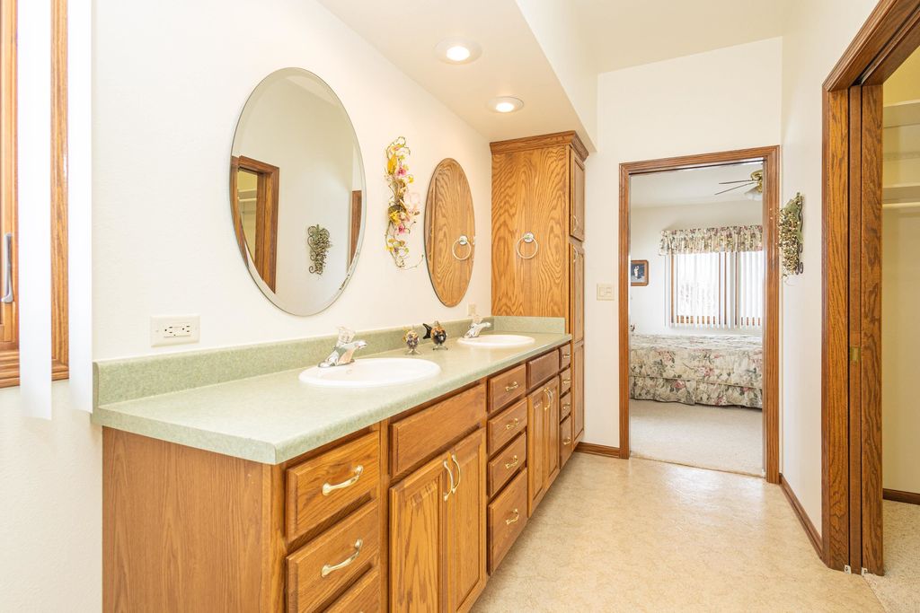 This beautiful 3 bdrm, 2 bath contemporary ranch has over 2300 Sq. Ft. of living space on the main level. With 9 Ft. ceilings and generous room sizes throughout the home. Kitchen has a formal dining adjacent to it and looks out to large living room. There is a huge walk-in pantry with a sink and a main level laundry room, also with sink and plenty of storage. Two bdrms are across from each other and the master wing is around the corner and secluded. Master bedroom has a large master bath with a double sinke, a jetted tub , shower and large walk-in closet. Lower level has high ceilings, access from garage and is ready for you to finish for even more equity and space for your home.