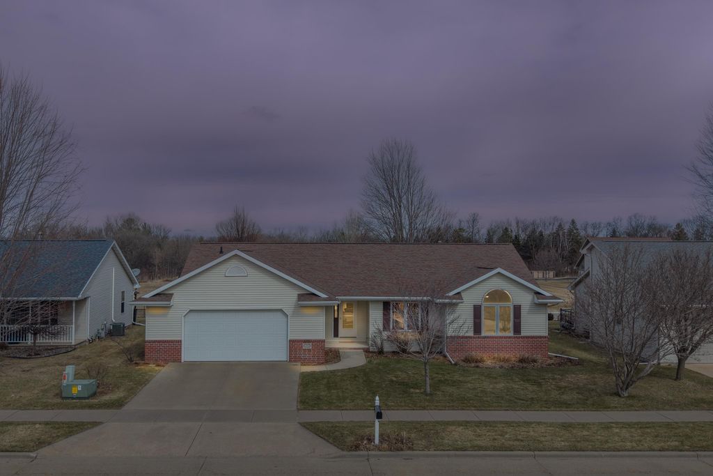 Welcome to the neighborhood. Beautifully maintained 4-bedroom, 2.5-bath ranch on Oshkosh's desirable west side in the Carl Traeger School District. This inviting home features an open-concept layout designed for comfortable living and easy entertaining, highlighted by a warm gas fireplace in the main living area and convenient main-floor laundry. The finished lower level expands your living space with a spacious family room featuring a second gas fireplace, plus additional flexible space perfect for a craft room, game room, or hobby area. Step outside to enjoy peaceful field views from the backyard, offering a relaxing backdrop and added privacy. Lovingly cared for and move-in ready, this home combines space, comfort, and a prime location close to schools, parks, and everyday conveniences. All offers are to be reviewed on Monday, March 23, 2026 . All measurements are estimations and should be verified by buyer if material.