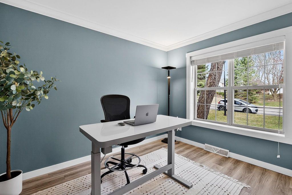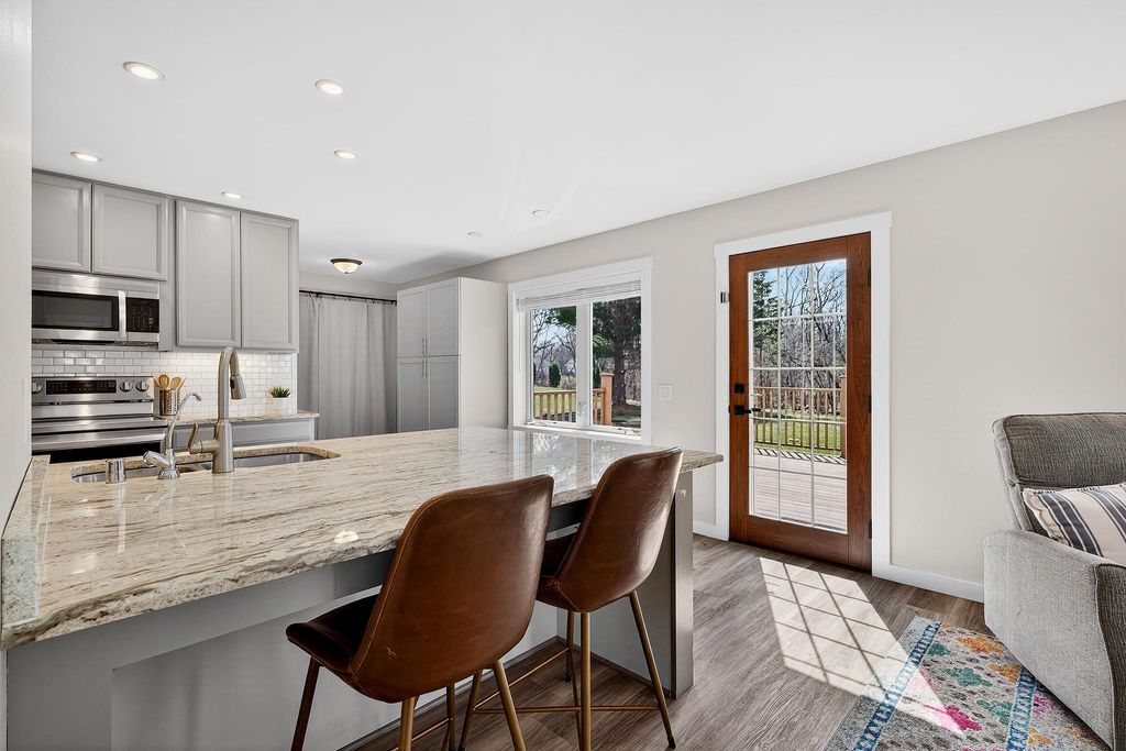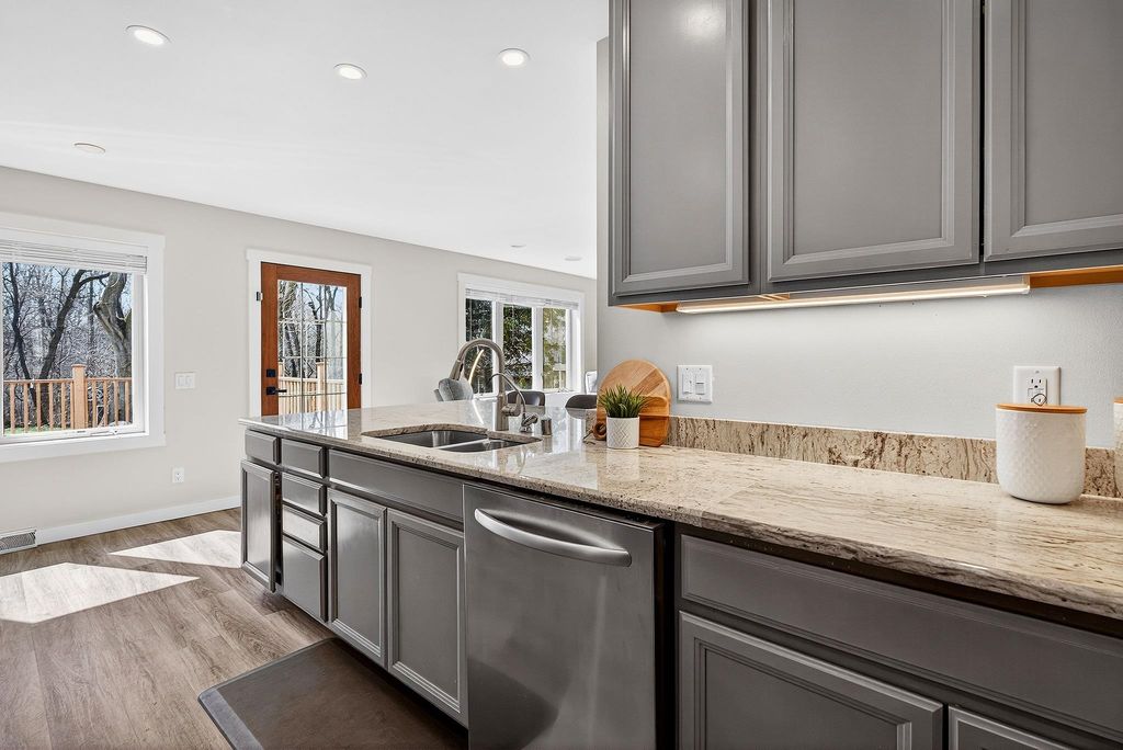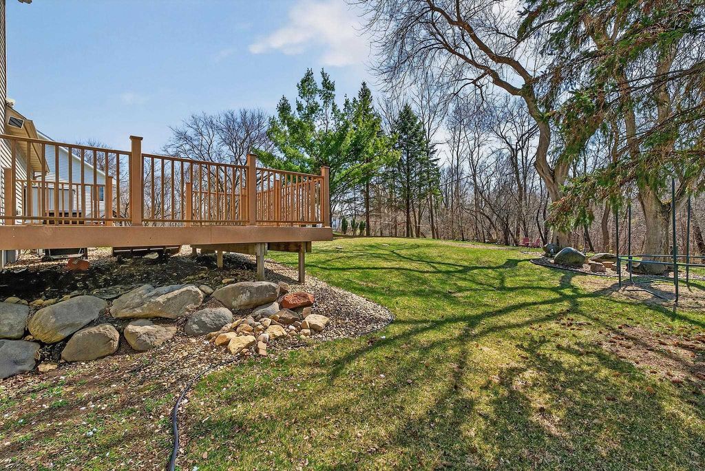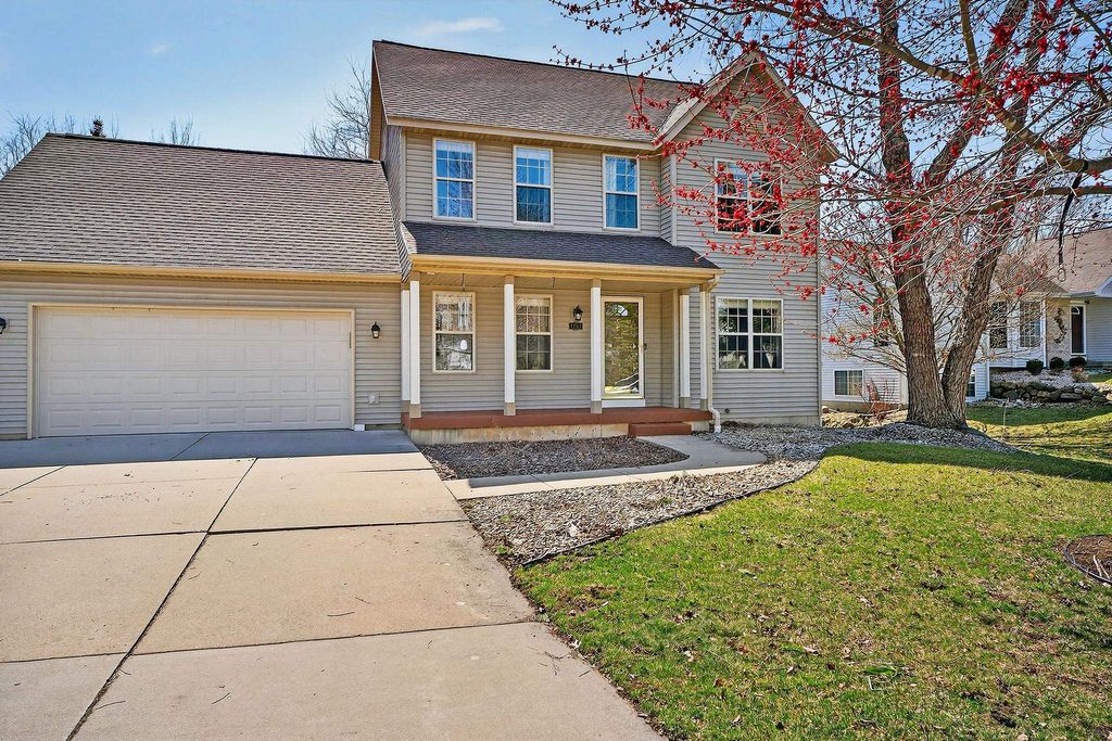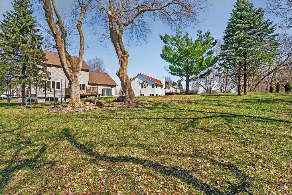 Showings begin 4/3. Backing to green space with walking trails in Sun Prairie's Hickory Grove Estates, this beautifully maintained home impresses with designer finishes, luxury vinyl plank floors, and natural light. The open layout flows from the great room with gas fireplace to formal dining and a well-appointed kitchen with breakfast bar, pantry, and solid surface counters. The primary suite features a spa-like ensuite with jetted soaking tub, walk-in shower, and walk-in closet. The finished lower level adds a 4th bedroom and family room... perfect for guests or movie nights. Step onto the expansive deck and take in the serene, tree-lined backdrop with walking trails just steps away. Oversized 2-car garage stretches over 26 ft deep and is wired for an EV charger. Smart thermostat, garage opener, water softener, and reverse osmosis included, plus newer roof for peace of mind. Minutes from Token Springs Elementary and Liberty Park.