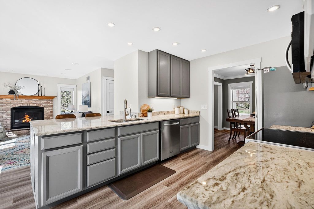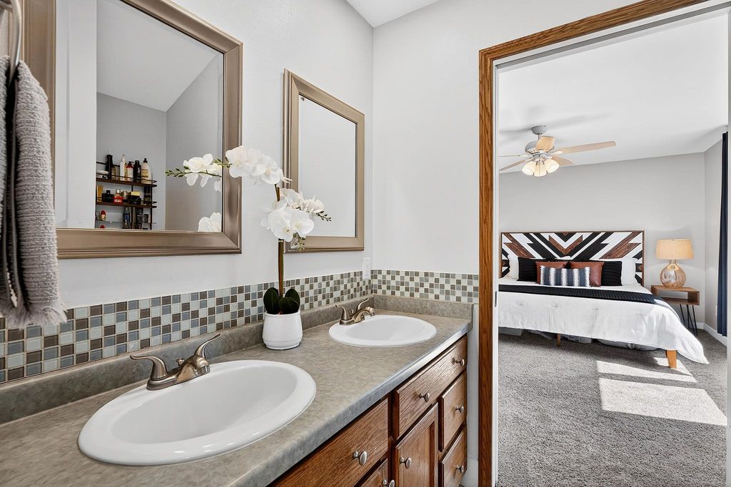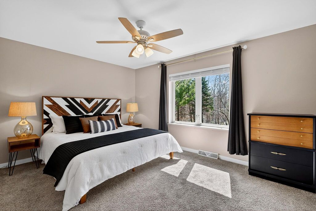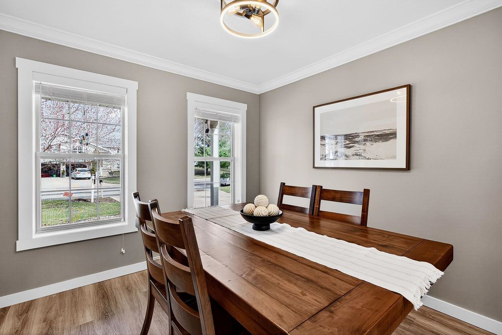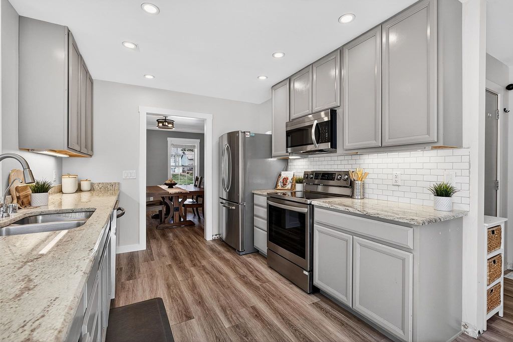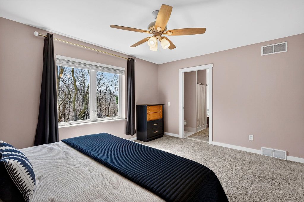 Showings begin 4/3. Backing to green space with walking trails in Sun Prairie's Hickory Grove Estates, this beautifully maintained home impresses with designer finishes, luxury vinyl plank floors, and natural light. The open layout flows from the great room with gas fireplace to formal dining and a well-appointed kitchen with breakfast bar, pantry, and solid surface counters. The primary suite features a spa-like ensuite with jetted soaking tub, walk-in shower, and walk-in closet. The finished lower level adds a 4th bedroom and family room... perfect for guests or movie nights. Step onto the expansive deck and take in the serene, tree-lined backdrop with walking trails just steps away. Oversized 2-car garage stretches over 26 ft deep and is wired for an EV charger. Smart thermostat, garage opener, water softener, and reverse osmosis included, plus newer roof for peace of mind. Minutes from Token Springs Elementary and Liberty Park.