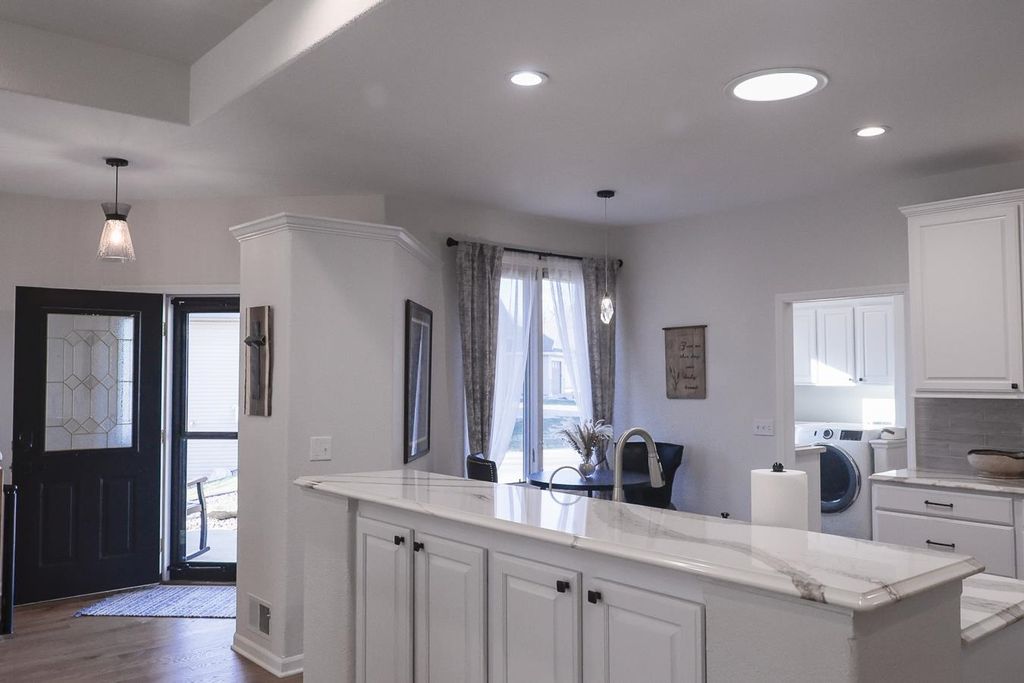 This beautifully updated 3-bedroom, 2.5-bathroom condo is sure to impress! Ideally located near Janesville and Milton, this home offers the perfect blend of style, comfort, and convenience. Step inside to an inviting open floor plan highlighted by soaring 11-foot tray ceilings, rich hardwood floors, and abundant natural light. The spacious great room features a cozy gas fireplace and flows seamlessly to a screened porch"”perfect for relaxing or entertaining. The kitchen is a standout with quartz countertops, stainless steel appliances, and modern finishes, while the bathrooms boast updated solid surface countertops. The dining area adds a touch of elegance with a skylight and motorized blinds. 2025-New Furnace, Central Air and Water Heat Enjoy the ease of main floor laundry and retreat to the finished lower level, complete with fresh carpeting and ample space for entertaining, hobbies, or guests. Walk out to an upper and lower patio overlooking a beautiful backyard with amazing views!
