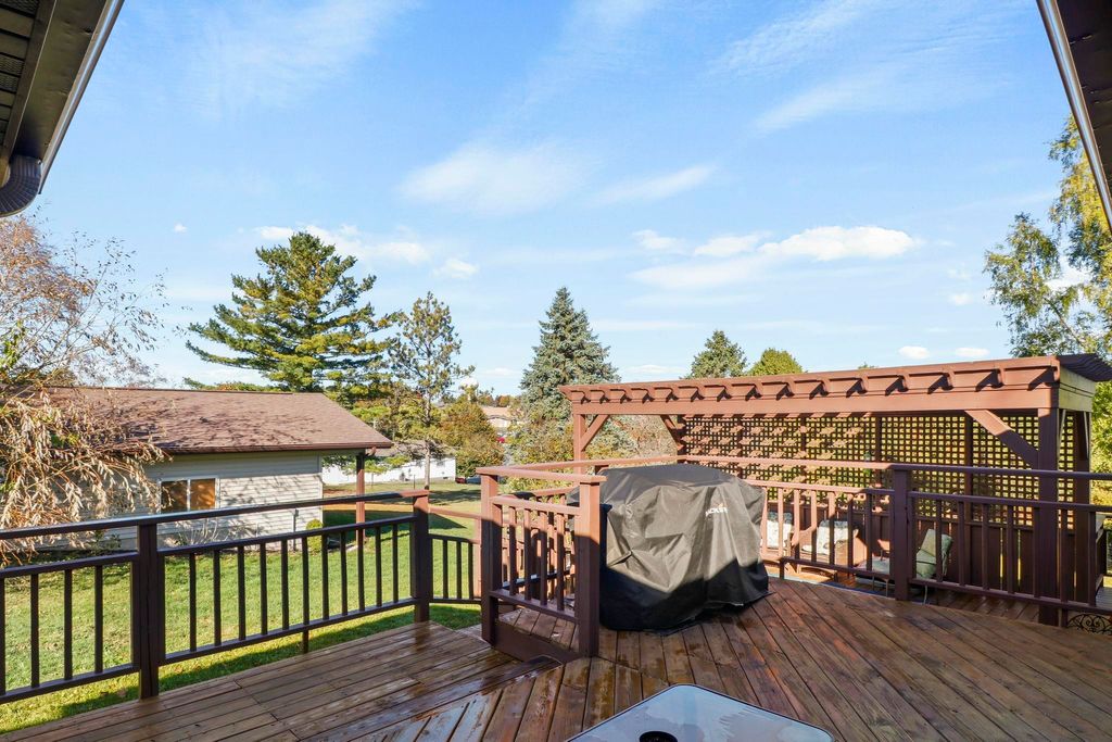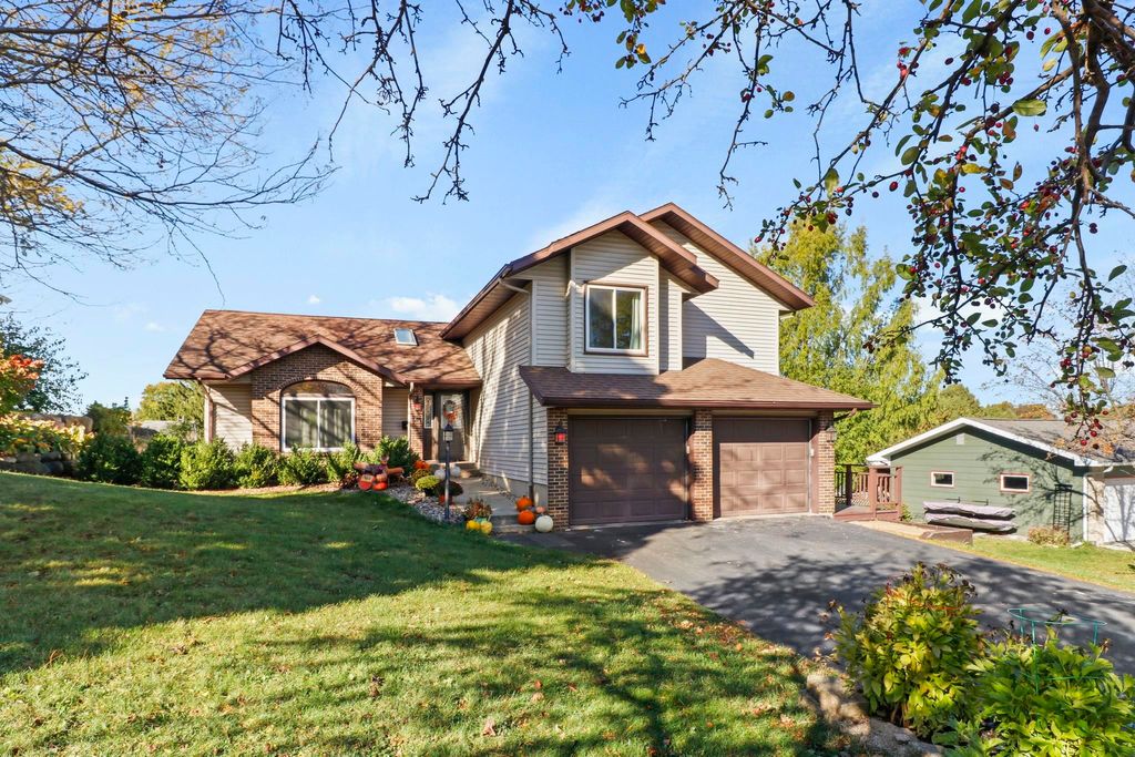 This 3/3 tri-level home boasts an excellent cul-de-sac location central to schools, groceries, and Wilson Park. Large lot includes impressive outdoor living, plus a backyard shop with 2 garage bays. Vaulted ceiling envelops the bright and airy living space. Wood-look flooring flows between formal dining and eat-in kitchen with granite breakfast bar. Bonus sunroom opens to west-facing tiered deck with pergola and privacy trellis. Stacked stone gas fireplace anchors the family room. Mudroom from 2-car garage accesses laundry, full bath, and finished LL. Valuable flex spaces suit any need, including built-in cabinetry for hobbies or office, and secluded room perfect for home theater or gym. Cathedral ceiling crowns the primary suite, including a walk-through dressing area with makeup vanity.