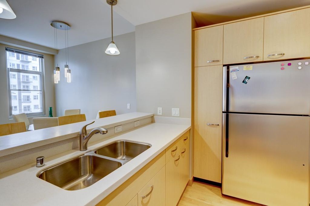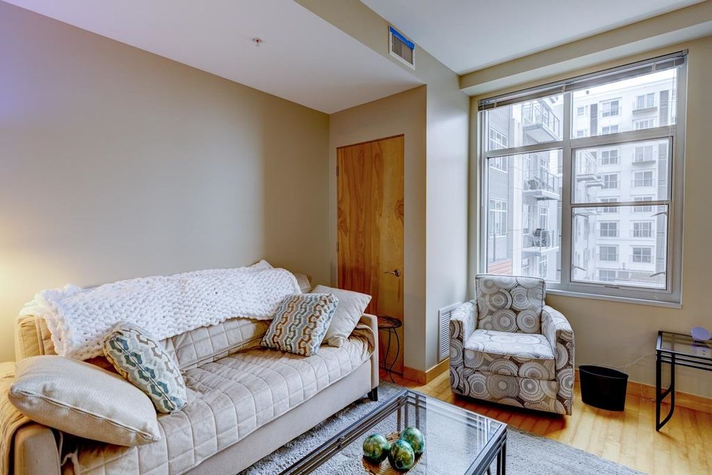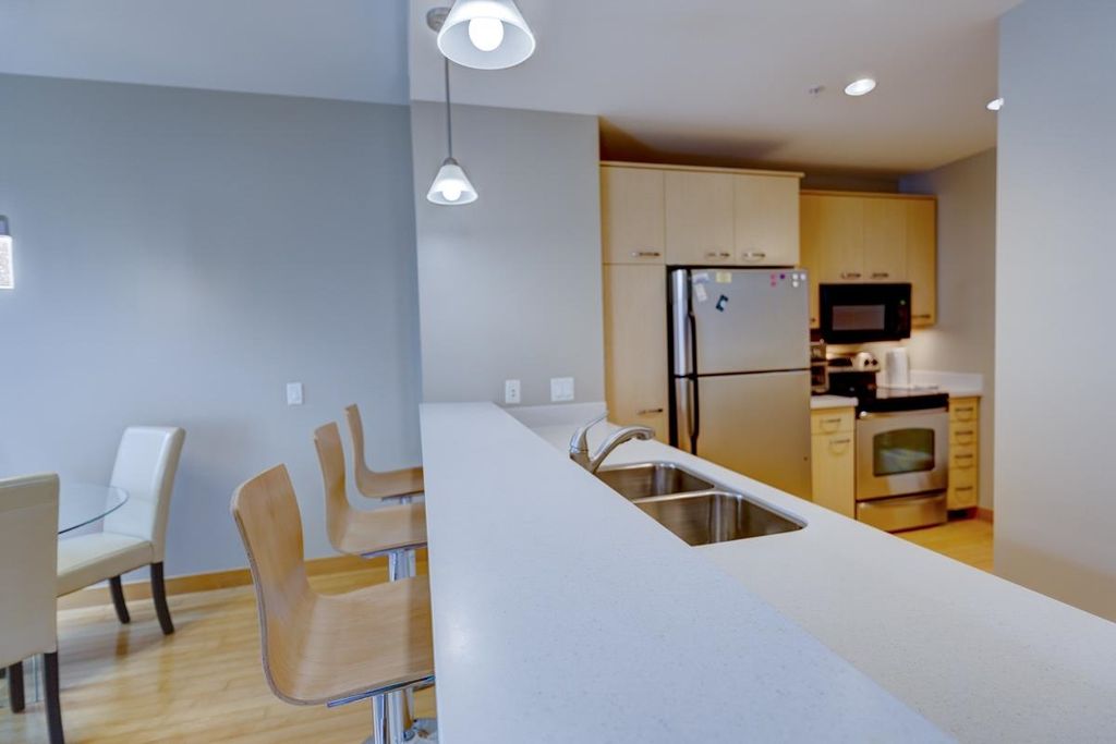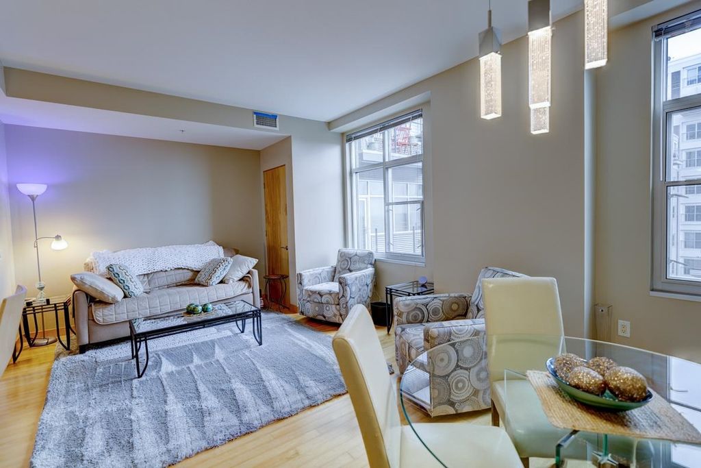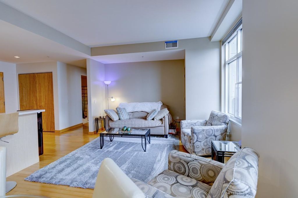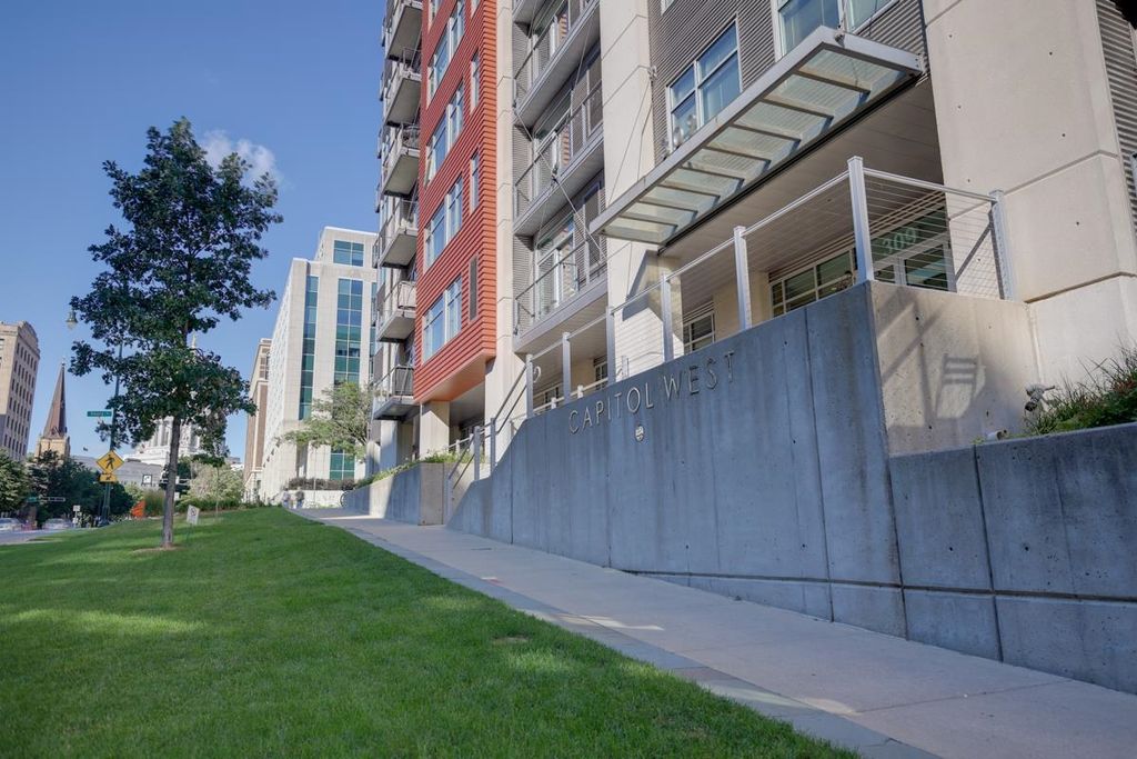 Experience stylish downtown living at Capitol West in the heart of Madison. This highly desirable 2-bedroom condo offers an open, inviting layout with warm wood floors, and a sophisticated, city-forward feel. The kitchen features contemporary cabinetry, solid surface countertops, stainless steel appliances, and a breakfast bar that works well for casual meals or entertaining. Large windows fill the home with natural light and help create a bright, airy atmosphere throughout the main living spaces. The well-designed floor plan offers comfortable bedrooms, functional living space, and the convenience today's buyers are looking for. Enjoy in-unit laundry, 1 underground parking space for added flexibility and ease. Capitol West also offers a full-time on-site building manager, exercise room, and mail room, all in an unbeatable downtown location close to shopping, dining, entertainment, and the best of Madison living.