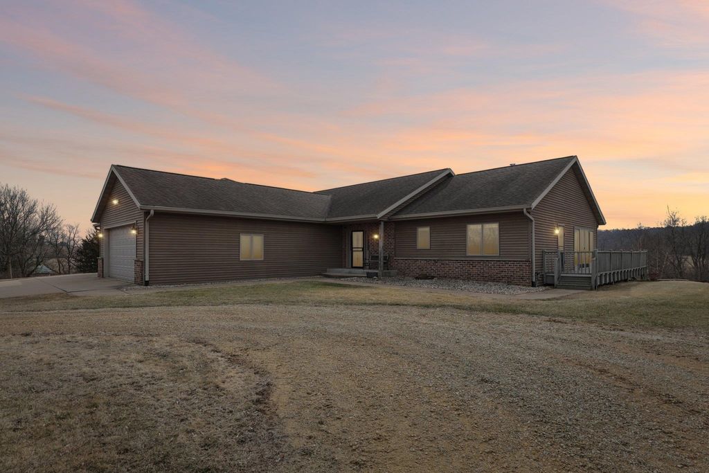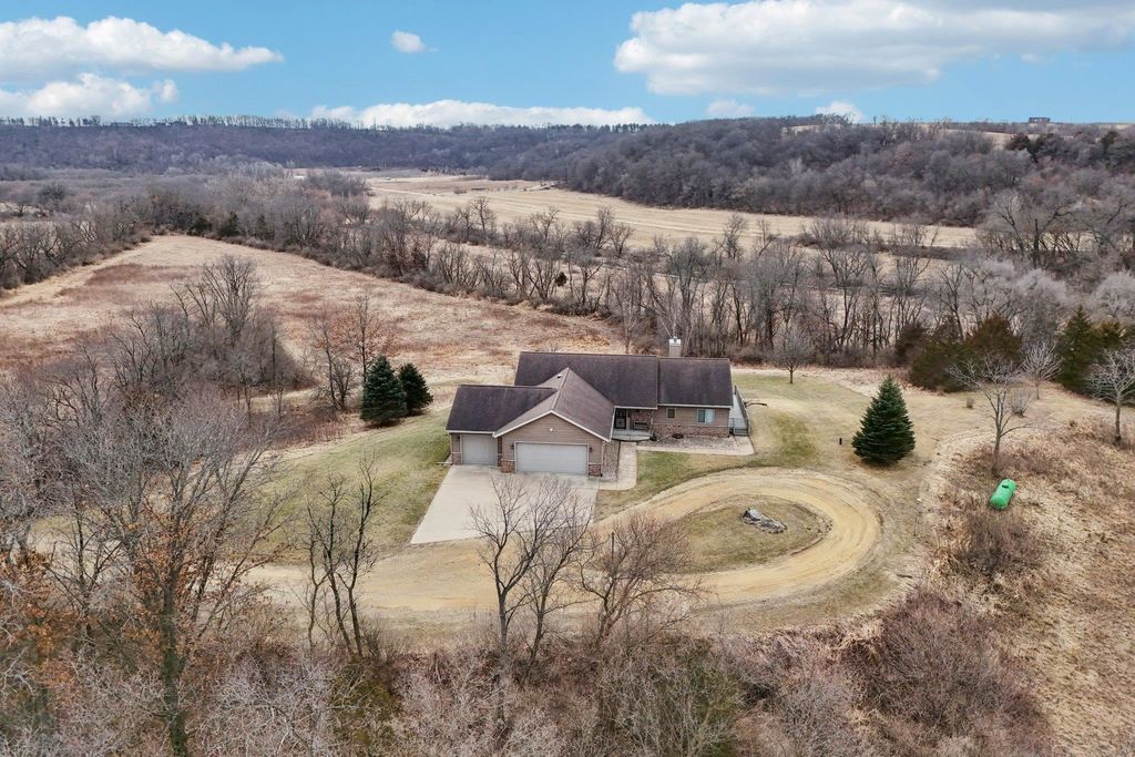 Showings start 3/29 at 11am. Enjoy peaceful country living in this custom-built 3 bedroom, 4 bath ranch home set on 61 scenic acres in the Town of Moscow. With approximately 3,000 feet of frontage on the Pecatonica River, this property offers incredible privacy, wildlife, and beautiful natural surroundings. The home features convenient main-level living with a primary suite and main floor laundry, plus spacious living areas designed for comfort and functionality. A heated 3-car garage provides plenty of room for vehicles, storage, and projects. Outside, the property includes two additional outbuildings (40x50 and 25x48) ideal for equipment, hobbies, or recreational storage. Approximately 21 acres are enrolled in CRP, providing income potential while enhancing the natural habitat. This rare property offers the perfect balance of privacy, recreation, and rural beauty"”all in a quiet setting with abundant space to enjoy nature.
