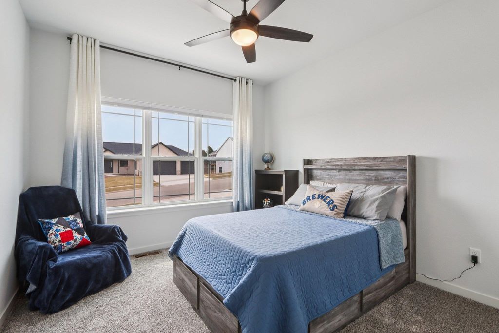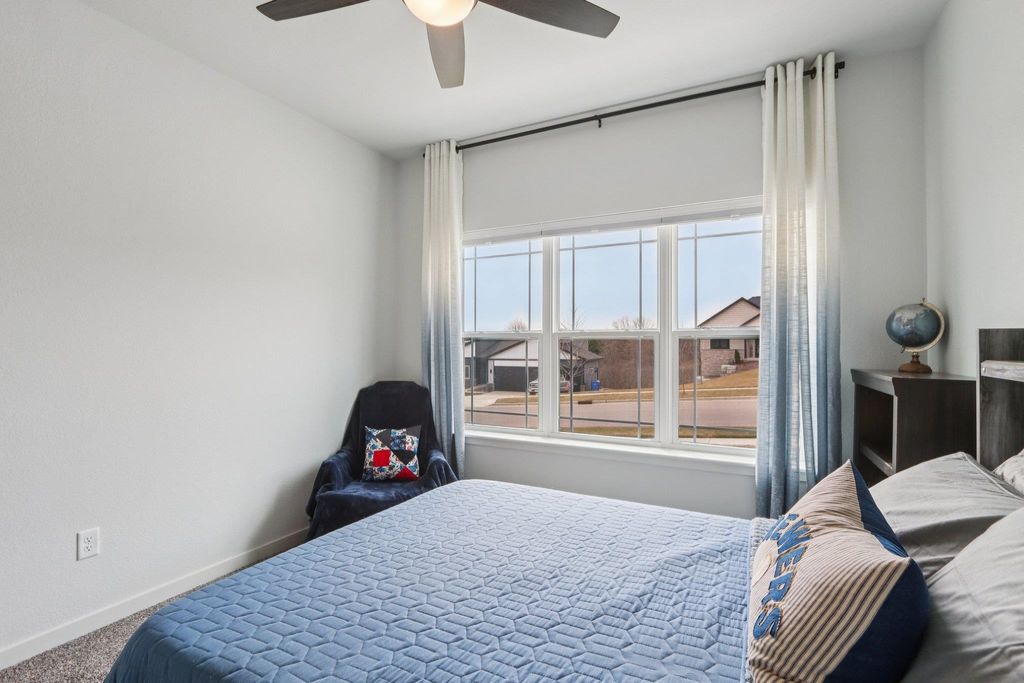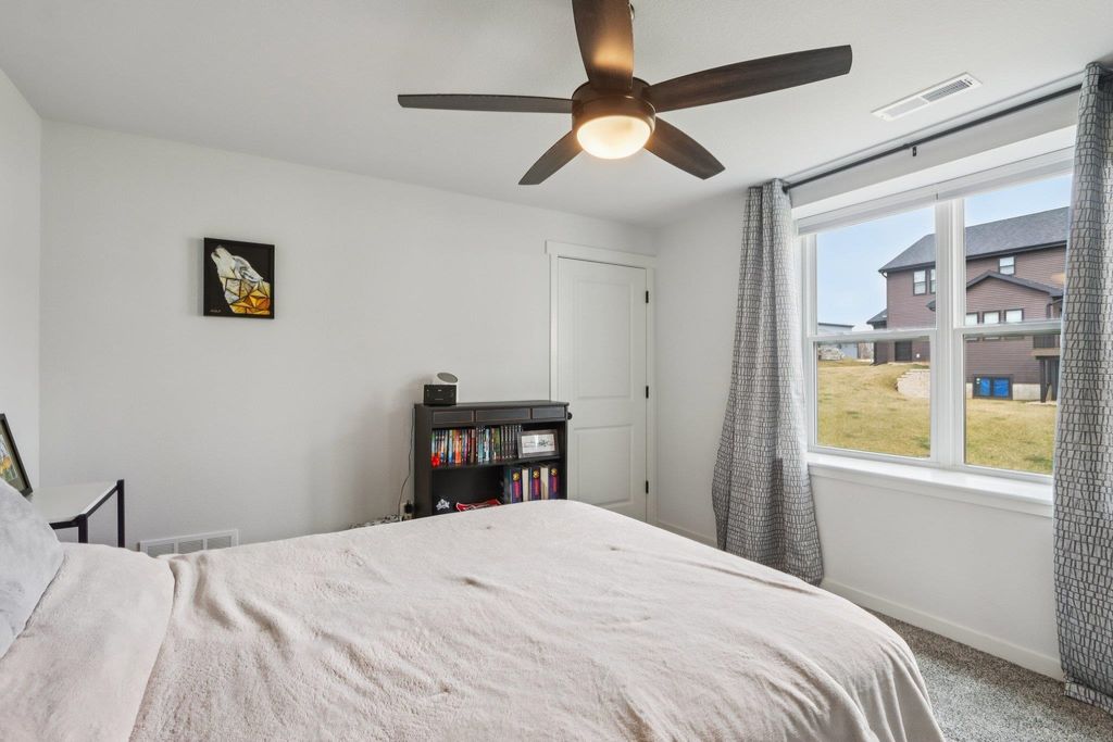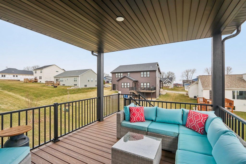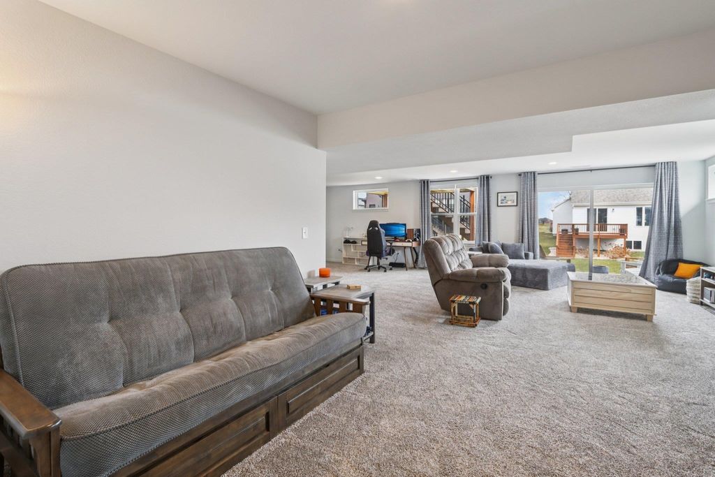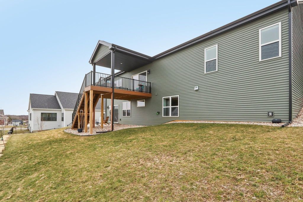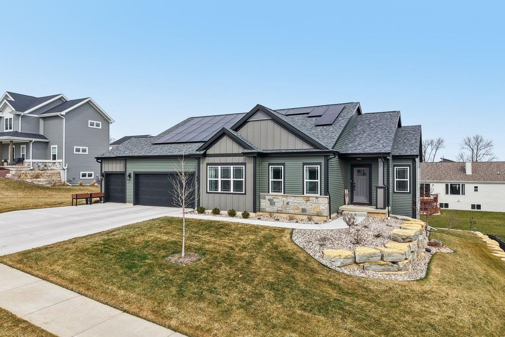 Showings start 3/27/2026. Better than new and built in 2025, this thoughtfully designed home blends modern finishes with functional living. Featuring solar panels for added efficiency, this home offers a bright, open layout centered around a stunning kitchen with quartz countertops, a large island with breakfast bar, and an oversized walk-in pantry. The spacious primary suite includes a private en-suite with double vanity and a generous walk-in closet. Enjoy the convenience of main level laundry with utility sink and a mudroom off the garage for everyday organization. Cozy up by the electric fireplace or step outside to the covered porch"”perfect for relaxing or entertaining. The walkout lower level expands your living space with a legal bedroom and full bathroom, plus additional unfinished space currently used as a gym"”ideal for storage or ready to be finished to fit your needs. A move-in ready home with style, space, and smart features throughout!