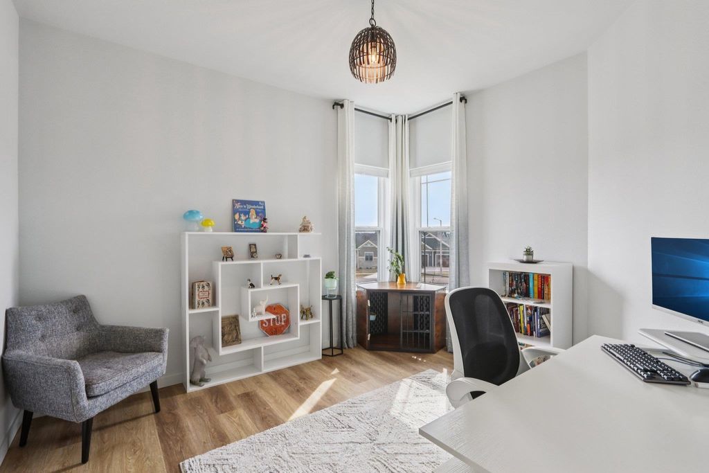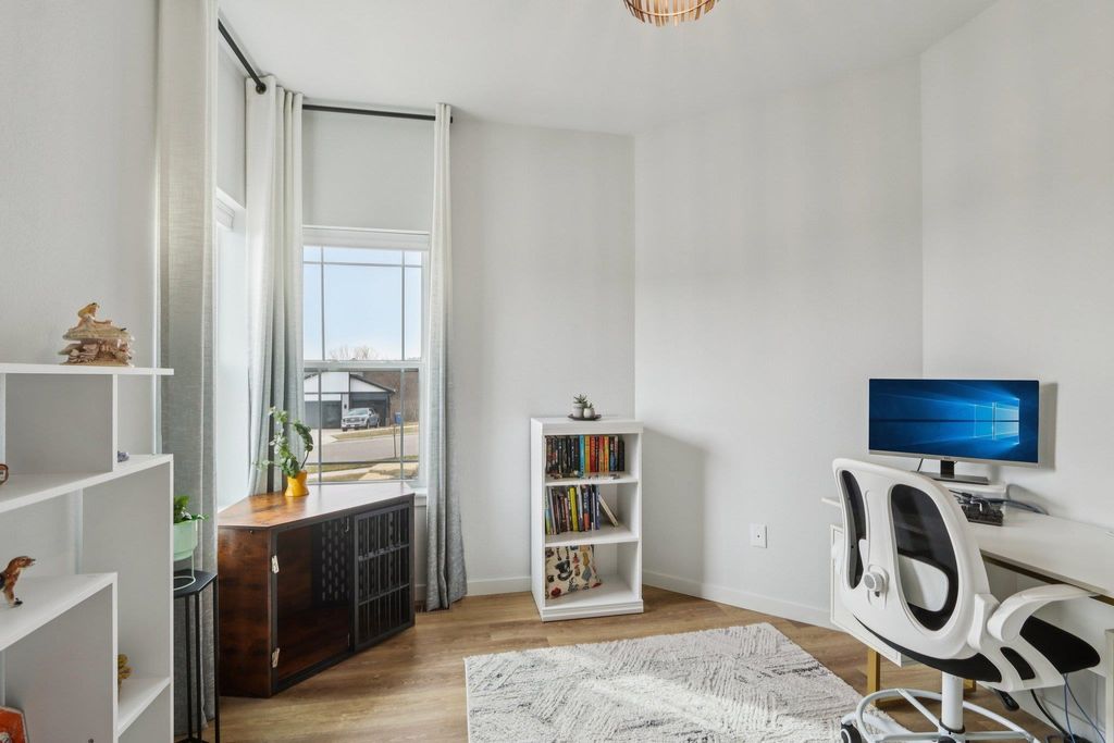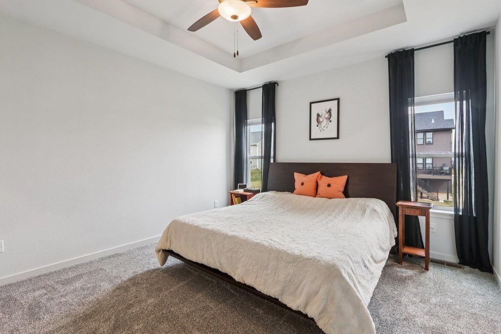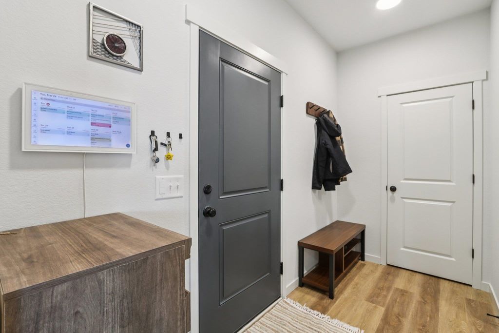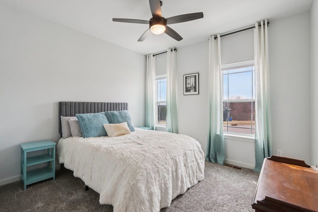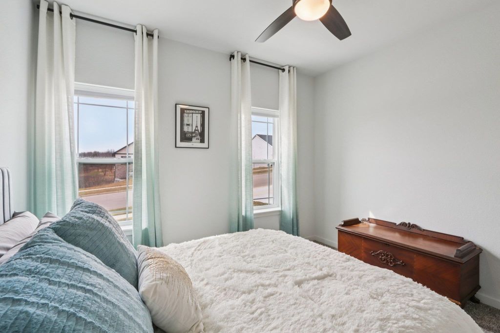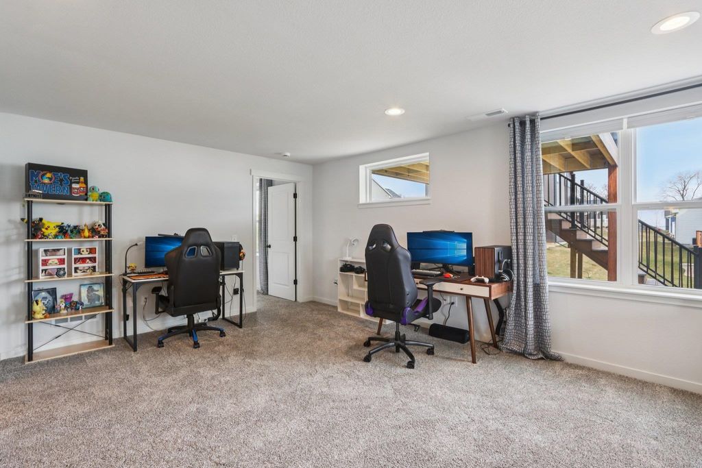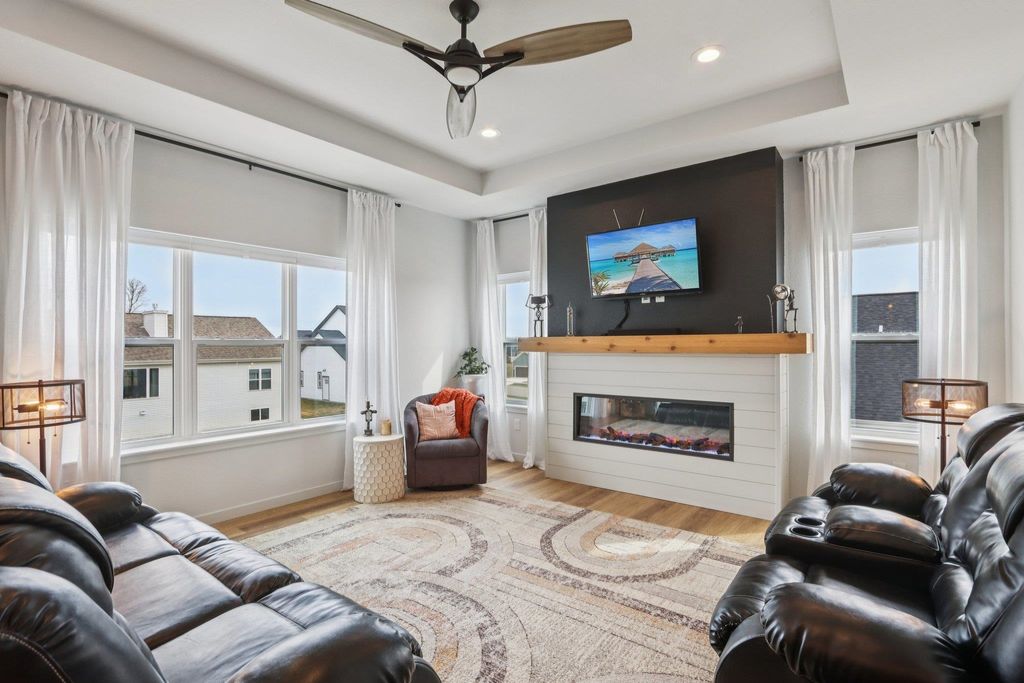 Showings start 3/27/2026. Better than new and built in 2025, this thoughtfully designed home blends modern finishes with functional living. Featuring solar panels for added efficiency, this home offers a bright, open layout centered around a stunning kitchen with quartz countertops, a large island with breakfast bar, and an oversized walk-in pantry. The spacious primary suite includes a private en-suite with double vanity and a generous walk-in closet. Enjoy the convenience of main level laundry with utility sink and a mudroom off the garage for everyday organization. Cozy up by the electric fireplace or step outside to the covered porch"”perfect for relaxing or entertaining. The walkout lower level expands your living space with a legal bedroom and full bathroom, plus additional unfinished space currently used as a gym"”ideal for storage or ready to be finished to fit your needs. A move-in ready home with style, space, and smart features throughout!