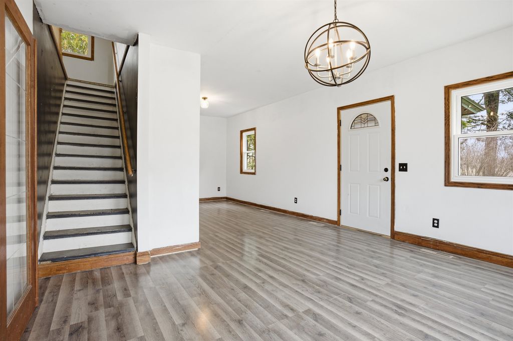 4-bedroom, 2-bath two-story home on 2.83 acres, backing directly to over 100 acres of public land with a trout stream. The main level offers approximately 900 sq ft of finished living space with a generous kitchen, dining, and living area, a convenient main-floor bedroom, full bath, and new appliances for move-in-ready ease. Upstairs you'll find an additional 800 sq ft finished with three more bedrooms and a second full bath, giving everyone room to spread out. Outside, enjoy the expansive yard, mature trees, and direct access to hiking, hunting, and fishing right out your back door. A detached 2-car garage provides great storage for vehicles, tools, and outdoor gear. Hard-to-find country setting with updated features, year-round recreation, and a trout stream just beyond your backyard"”don't miss this one!