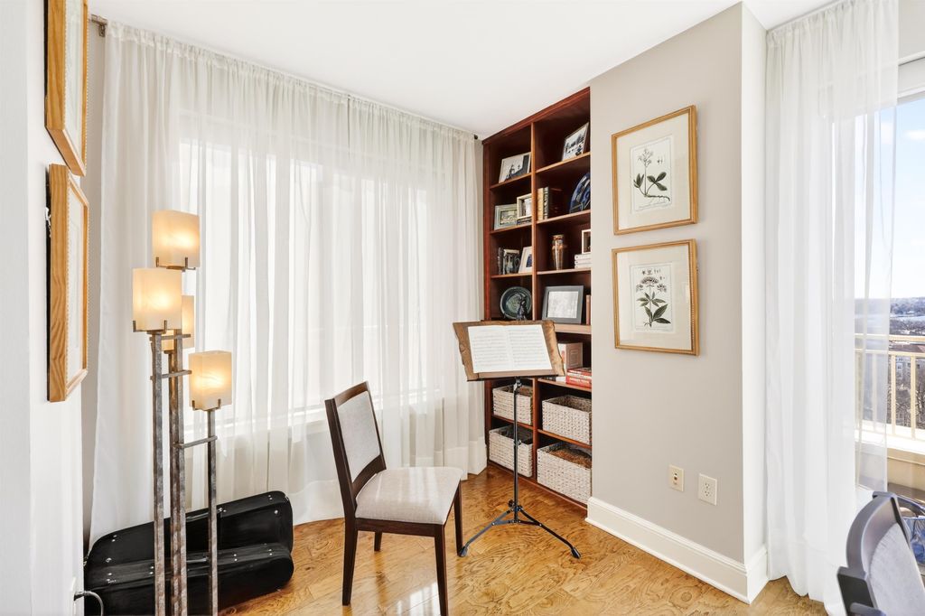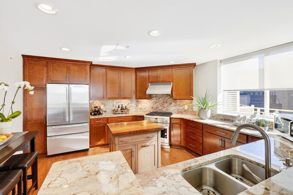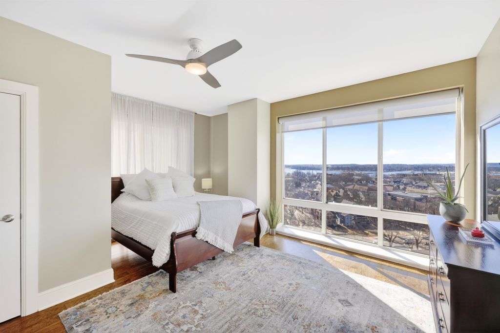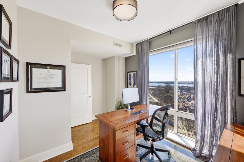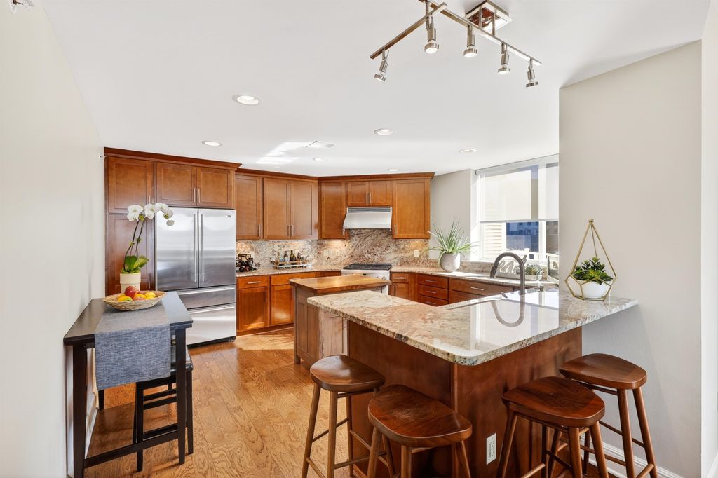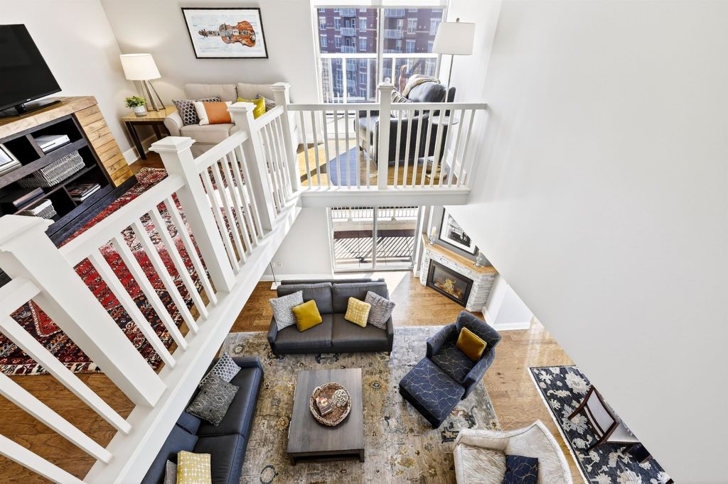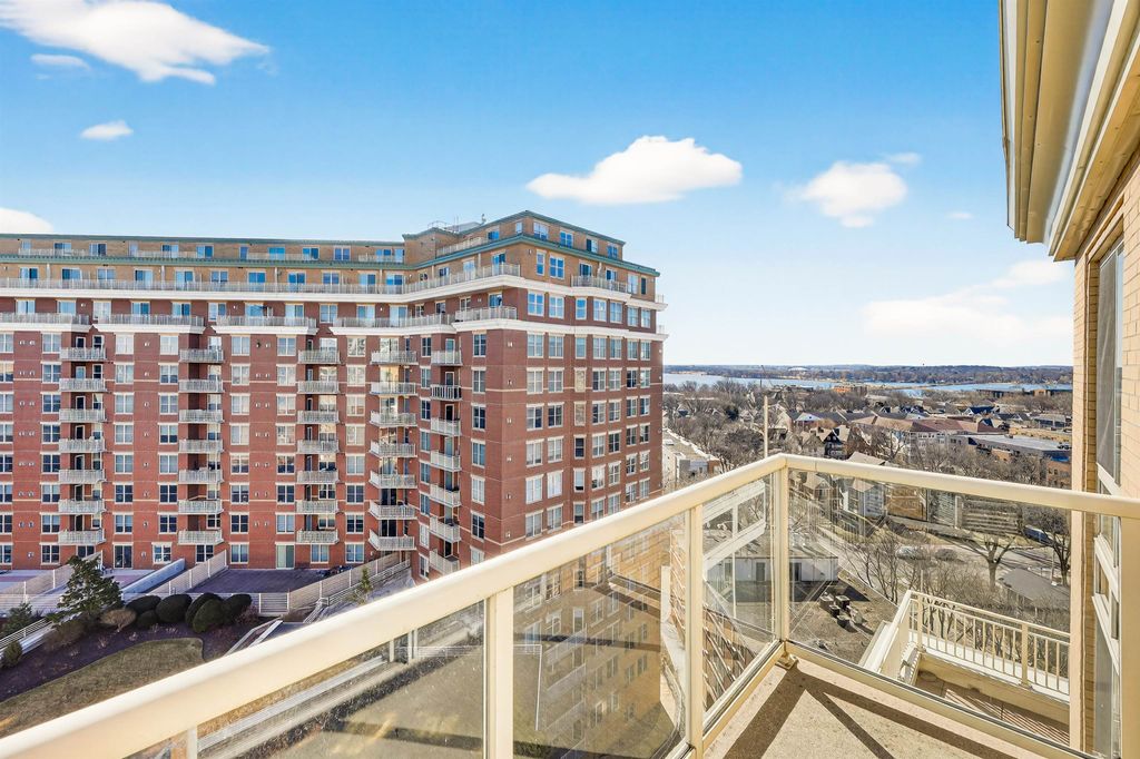 Don't miss this rare and stunning two-level corner penthouse condo in the heart of Madison. 4 bedrooms, 3 full baths, and almost 2,800 square feet of elegant living space. Courtyard and Lake Monona views from a generous wrap-around deck. Natural stone countertops and backsplash in the contemporary chef's kitchen with GE Monogram SS appliances. Engineered hardwood floors throughout. Vaulted ceiling and gas fireplace in the spacious living room. Cozy upper-level den space. Main level living is possible with one bedroom and a full bath. Two parking spaces and a large storage unit. On-site property management in one of Madison's premier condo buildings.