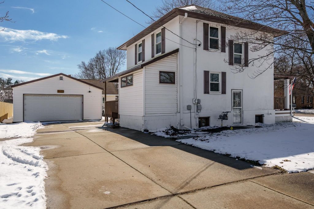 A bright, updated home with an inviting flow. The refreshed kitchen with newer appliances opens to a hardwood-floored living room, and the new central air and furnace add comfort and confidence. The property's standout is the 31-foot-deep, heated 2.5-car garage with an eight-foot door, dual openers, a built-in workbench, and lighted attic storage. A 10×14 shed expands your space even more, while the front porch and roomy yard create the perfect spots to relax or entertain.