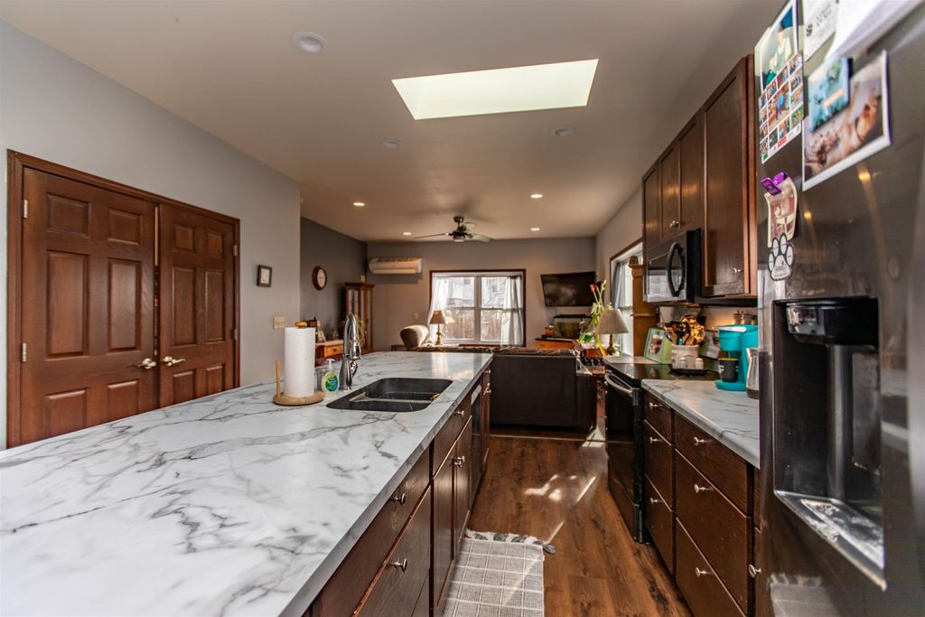 Spacious 3-bedroom, 2-bath ranch-style home with a wide open floor plan! Step inside to a welcoming foyer with a double entry closet and enjoy clear sightlines through the dining area, kitchen, and into the living room. The kitchen features a huge center island with sink and built-in dishwasher"”perfect for gathering and entertaining. Split-bedroom design offers privacy, with a primary suite featuring a walk-in shower and a 5x9 walk-in closet, while two additional bedrooms share a full bath. Convenient laundry area just off the kitchen. Enjoy comfort year-round with natural gas in-floor heat and a Samsung heat pump/AC unit. Complete with a spacious 24x28 two-car garage!