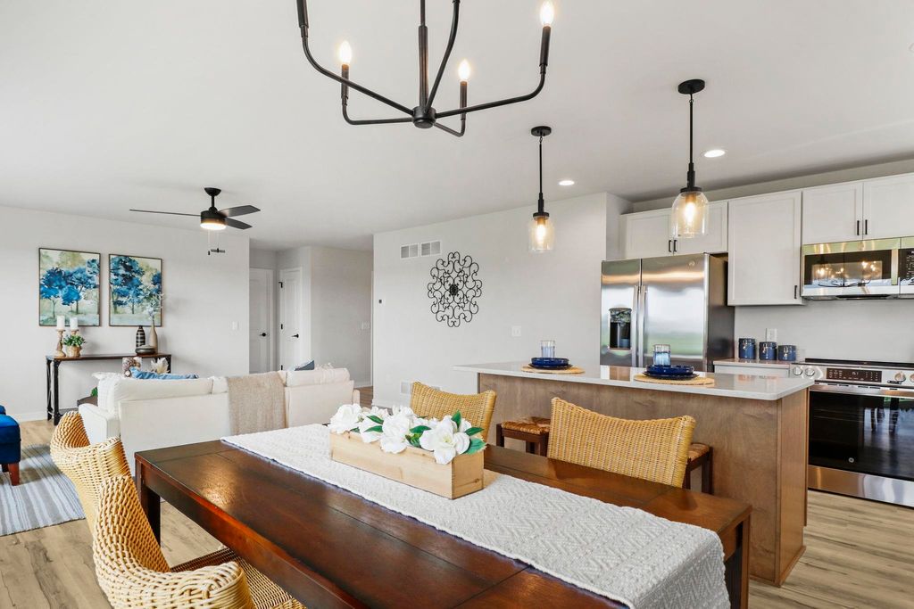 Discover "The Rowan" by Eldon Homes! This floorplan in where modern elegance meets unparalleled comfort. This thoughtfully designed home offers a perfect blend of style, functionality, and luxury, making it ideal for contemporary living. The Rowan features an open-concept design that connects the living, dining and kitchen areas, creating the perfect environment for entertaining. The Rowan's kitchen is equipped with GE stainless steel appliances, a large center island with seating and a window above the kitchen sink. The primary bedroom is an oasis, complete with a large walk-in closet and ensuite bath. Each bedroom features large windows for natural light and ample closet space. This home is equipped with energy-efficient appliances, and a state-of-the-art HVAC system to ensure comfort and convenience year-round. *Photos and virtual tour shown are of a similar completed model with the same plan. Seller is a licensed real estate company.