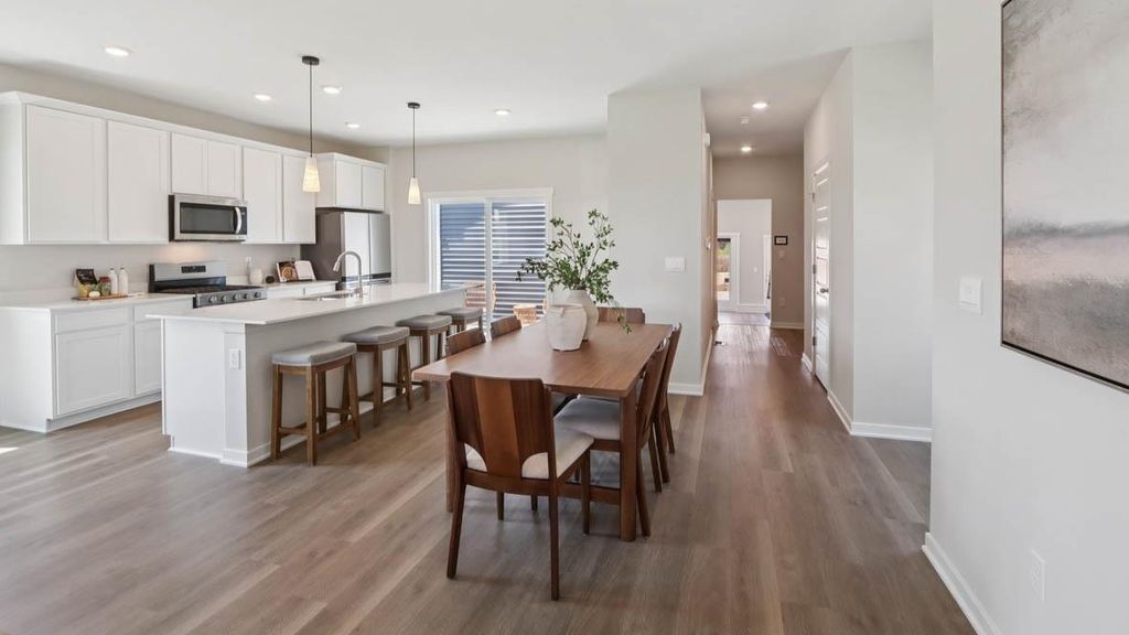 Under Construction-Single Family Home at Kettle Park West Community- Summer 2026 move-in! The Spruce Plan features a corner homesite, 3 bdrms, 2.5 baths, 9 ft ceilings on main level, partial basement & attached 2 car garage. Open concept layout floor plan perfect for entertaining. Kitchen has a large island, 42" cabinets with crown molding & soft close doors/drawers, quartz countertops, stainless steel appliances, & pantry. Separate laundry & mud room on main level. Vinyl plank floors-entire main level. 2nd story boasts large primary bedroom with ensuite bath with raised vanity, dual sinks, & walk-in shower with glass enclosure, 2 addl bedrooms, 2nd full bath & linen closet. Fully sodded homesite -low maintenance community includes lawn/ landscape maintenance & snow removal. All D.R.Horton homes come with a builder warranty and America's Smart Home technology package. Photos of model home- actual home may vary. Exterior rendering similar to actual home but colors may vary.
