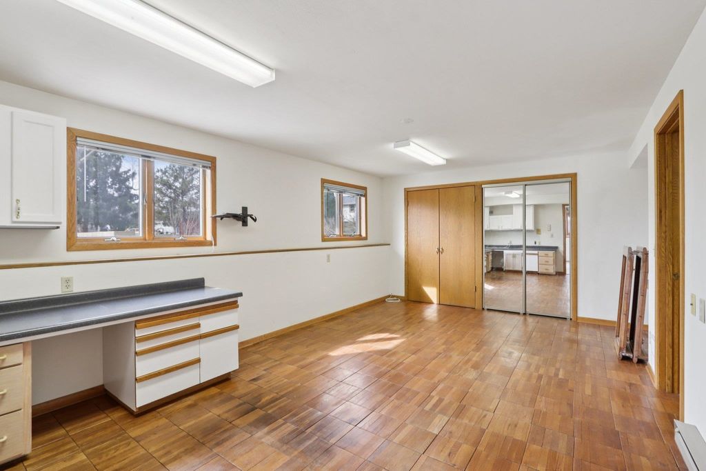 Welcome to this beautifully crafted custom-built home in Jefferson, offering space, comfort and charm on a generous .789 acre lot. Surrounded by mature trees, featuring established blueberry bushes and peach trees, the property provides a peaceful, park like setting right in the city! Inside, you'll find spacious rooms throughout, filled with abundant natural light that creates a warm and inviting atmosphere. The main living area showcases a dual fireplace shared between the living room and dining room, perfect for cozy gatherings and everyday enjoyment. The Finished, exposed basement adds exceptional living space, complete with brand new carpet, a large rec room, bonus room, full bath, bedroom and its own fireplace. A dedicated workshop with direct access to the garage and so much more!