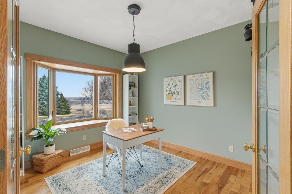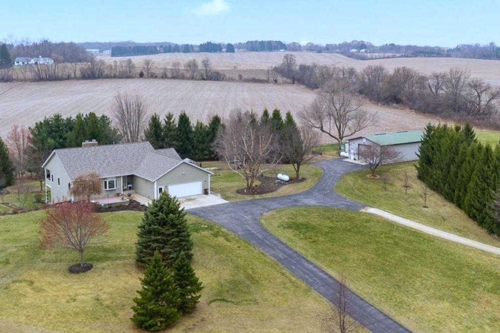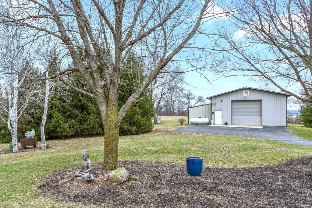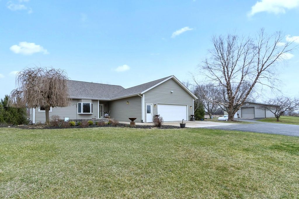 Set atop a scenic hill, this impeccably maintained home offers sweeping views, abundant wildlife, and unforgettable sunsets (see the pics!). Thoughtful updates include a new roof and fresh exterior paint (2025), ensuring peace of mind for years to come. Ideal for hobbyists and outdoor enthusiasts, the property features an oversized heated garage, a heated pole barn with lofted storage, and animals like horses are allowed! The walk-out lower level with private garage access offers a full kitchen, perfect for an in-law suite. Enjoy the outdoors with a greenhouse, raised beds, and mature perennials, along with multiple outdoor living spaces including two patios and a four-season room. Numerous included items, plus a home warranty complete the package.