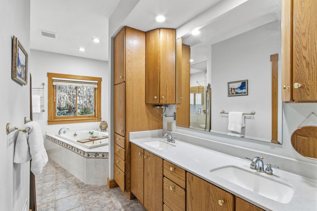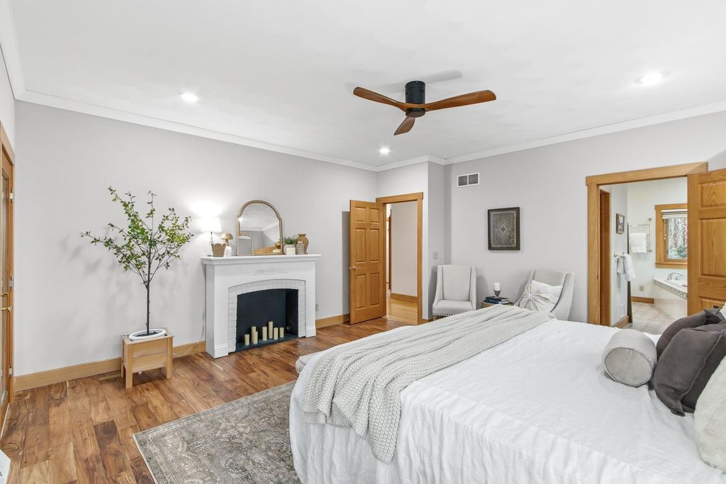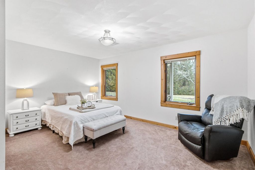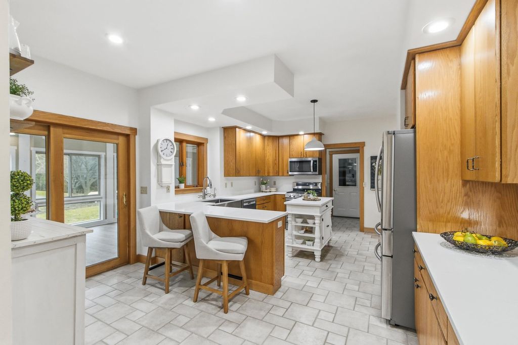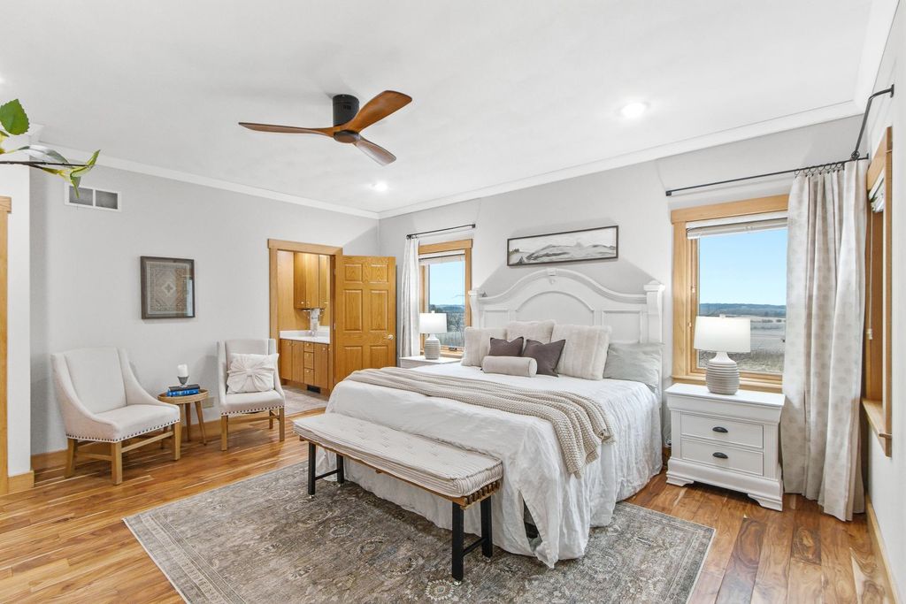 Set atop a scenic hill, this impeccably maintained home offers sweeping views, abundant wildlife, and unforgettable sunsets (see the pics!). Thoughtful updates include a new roof and fresh exterior paint (2025), ensuring peace of mind for years to come. Ideal for hobbyists and outdoor enthusiasts, the property features an oversized heated garage, a heated pole barn with lofted storage, and animals like horses are allowed! The walk-out lower level with private garage access offers a full kitchen, perfect for an in-law suite. Enjoy the outdoors with a greenhouse, raised beds, and mature perennials, along with multiple outdoor living spaces including two patios and a four-season room. Numerous included items, plus a home warranty complete the package.