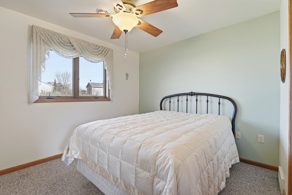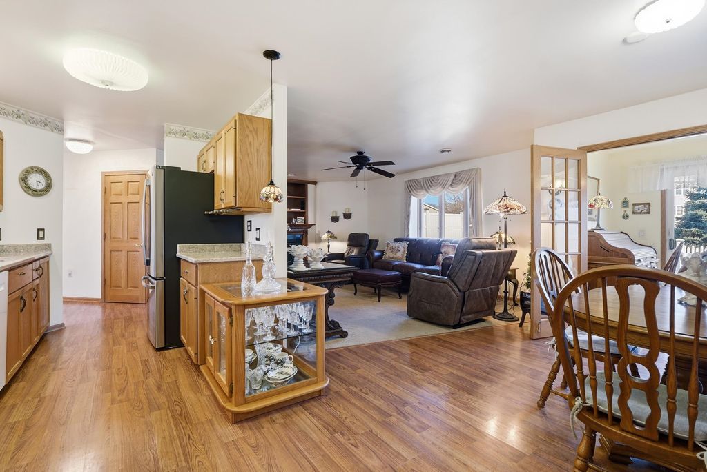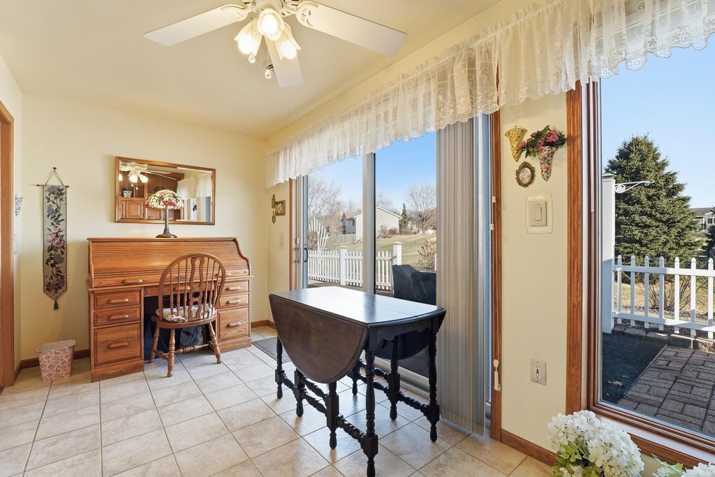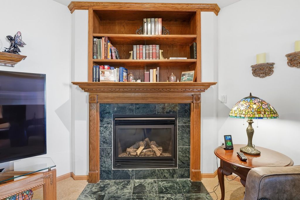 This 55+ Condo has all the features plus extra upgrades making it easy for you to move-in! Kitchen features Quartz counters, tile backsplash, under cab lighting and some newer appliances. Enjoy evenings by the fireplace with custom wood surround & shelves or in the sunroom with custom built-in wood desk/shelf unit. Solid 6-panel Oak doors lead to generous sized bedrooms & updated bath. Additional floor to ceiling storage in the guest bath and shelving in the mechanical room. Bonus storage available in the clean painted garage. Back cement patio will be perfect for enjoying the upcoming spring weather & is in the process of getting updated. All this in a thriving community that's just minutes from Madison!