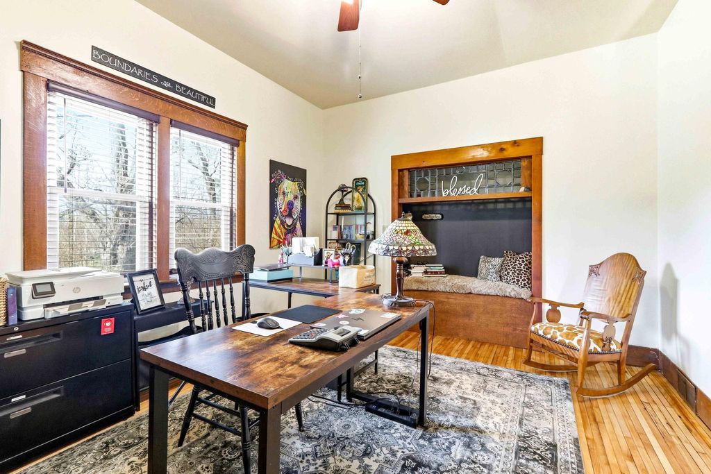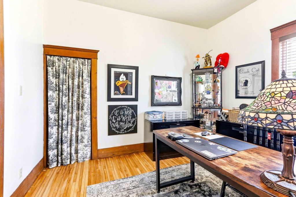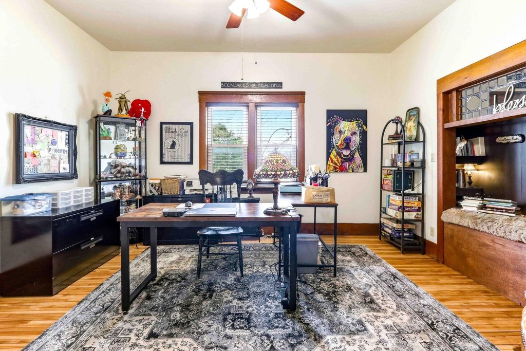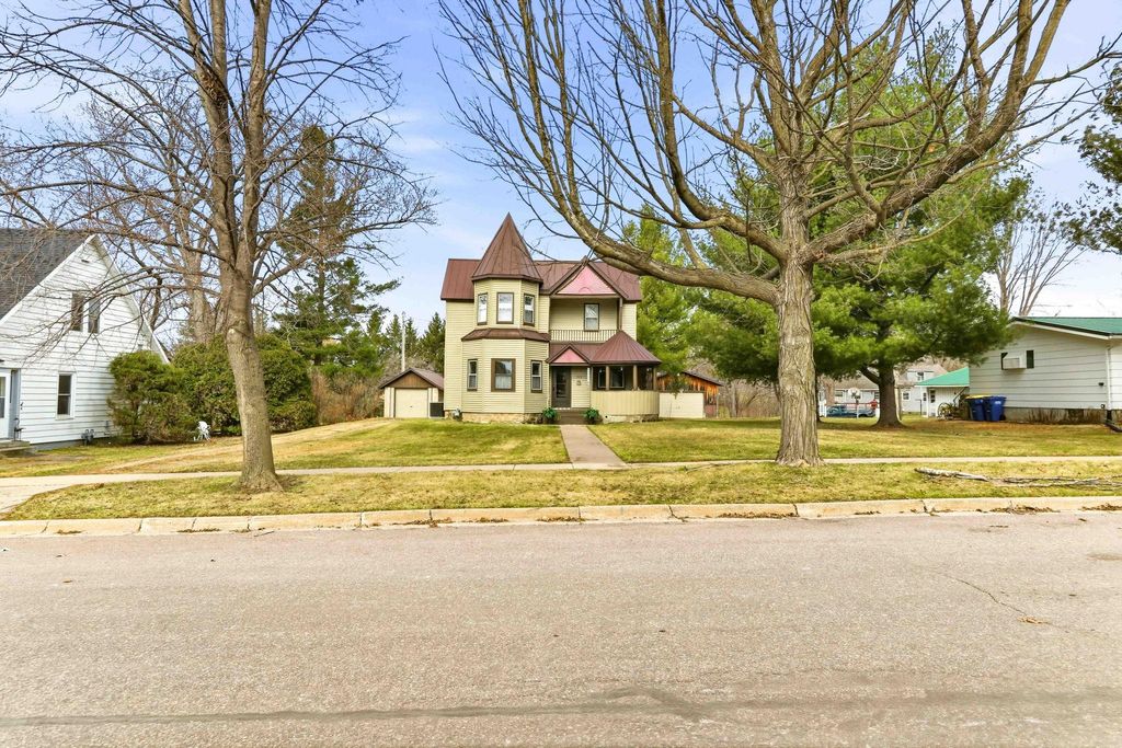 Charming 3 bedroom, 2 bath Victorian home full of character and timeless appeal! Beautiful wood floors and classic details throughout create a warm and inviting atmosphere. The spacious kitchen offers plenty of room to gather, while the main floor bedroom features a cozy reading nook, perfect for a home office or quiet retreat. The living room showcases a stunning fireplace and lots of windows for natural light adding to the home's unique charm. Upstairs, you'll find generously sized bedrooms, including a primary suite with a walk-in closet and full bath. Enjoy plenty of extra space and storage throughout the home. Outside, relax on the private back patio or unwind on the covered circle porch. The property also includes two detached garages, a one-car garage with driveway access and an oversized two-car garage accessible from the alley. Fantastic location with lake views right from your front yard"”this is a home you won't want to miss!