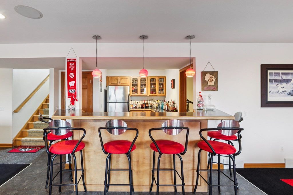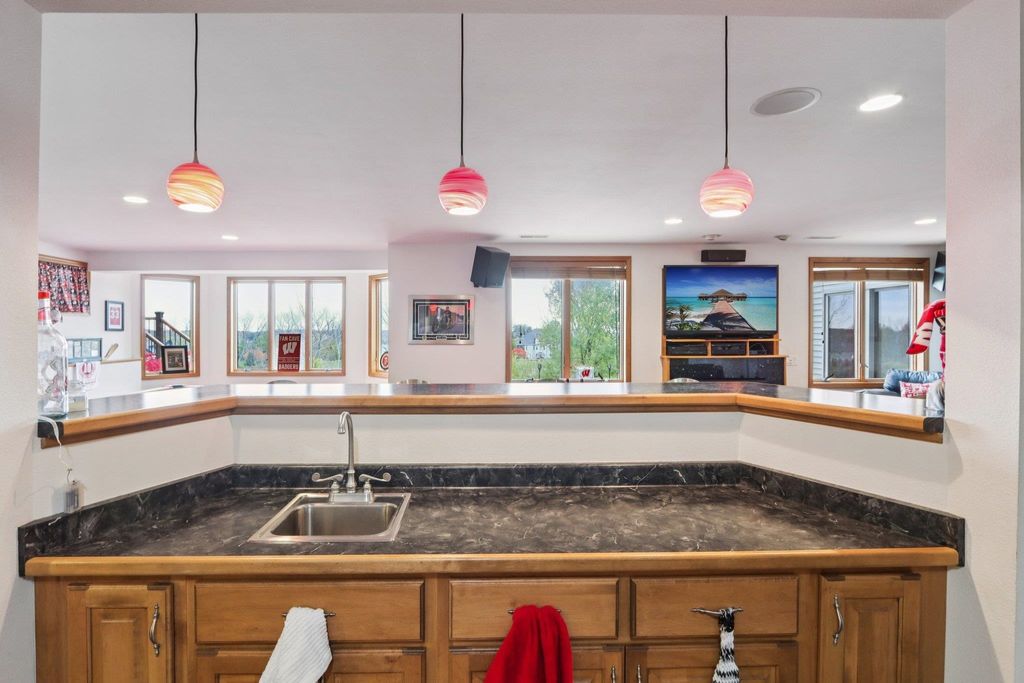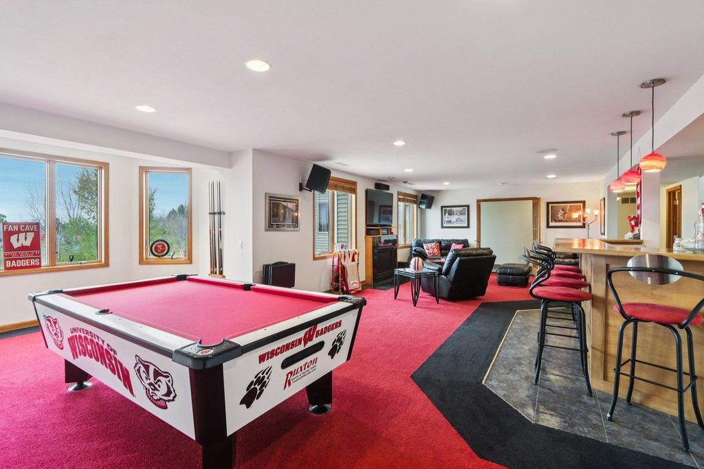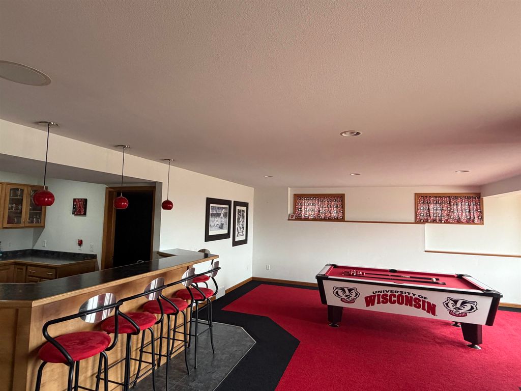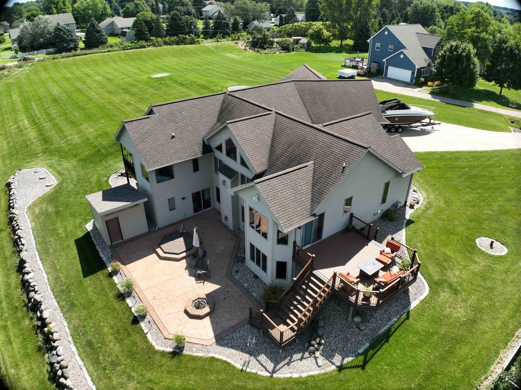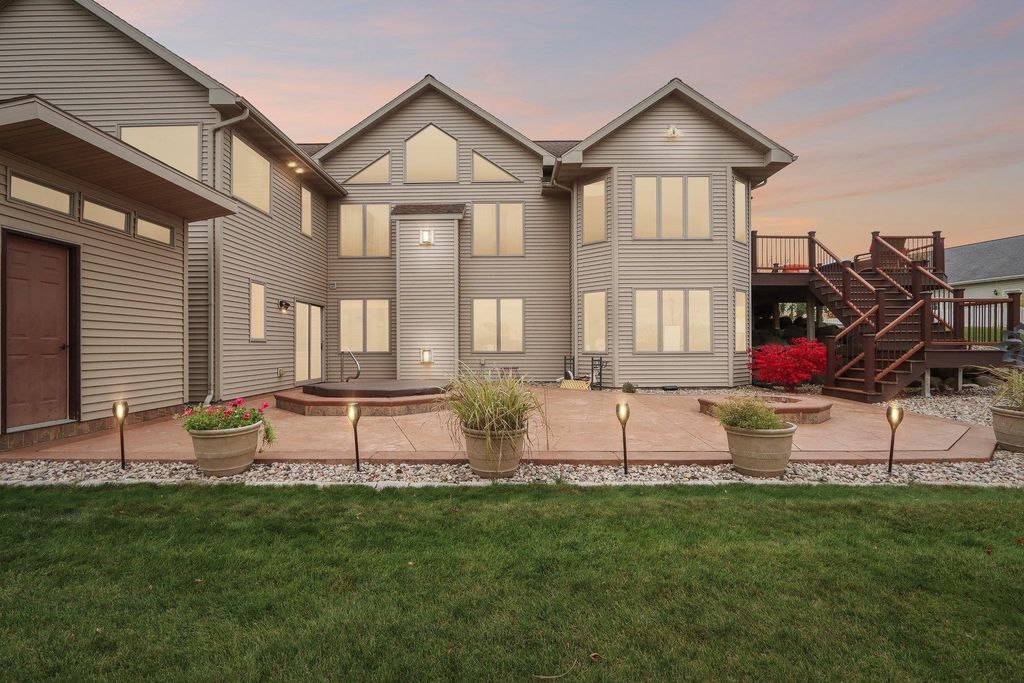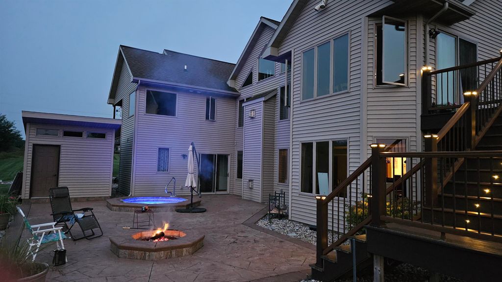 Welcome to your private retreat on 1.39 acres in Bristol. This 4-bedroom, 3-bath home offers a bright, open main level with soaring cathedral ceilings, a beautifully designed kitchen, convenient main-floor laundry, and a spacious primary suite complete with a large walk-in closet and private deck access. Step outside to an incredible outdoor living space featuring a sprawling deck overlooking a custom-built spa oasis with stamped and dyed concrete, a cozy fire pit, and a separate building dedicated to spa equipment. The finished lower level is perfect for entertaining, boasting a bar area and a fun, Badger-themed rec room ready for game days. Car enthusiasts and hobbyists will love the oversized garage with 10-foot doors and over 1,000 square feet of space"”ideal for storing all your toys. Experience the best of Wisconsin living with the perfect blend of relaxation and entertainment, both indoors and out.