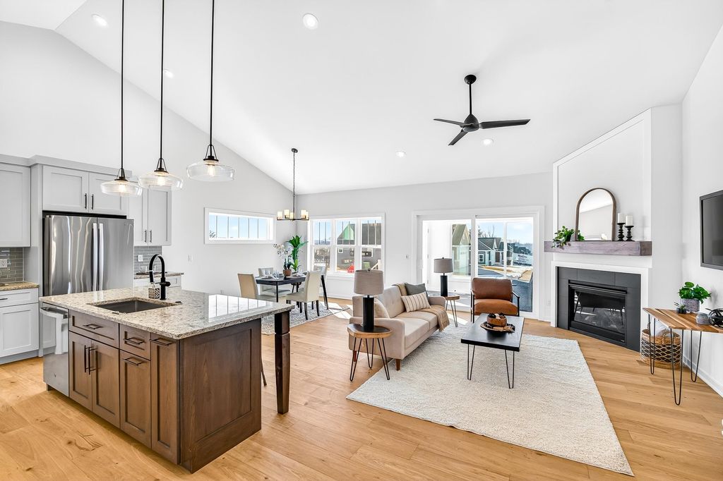 NEW CONSTRUCTION! Experience refined living in this beautifully designed 3-bedroom, 3-bath home offering premium finishes & a thoughtful layout that blends comfort w/sophistication. Step into the stunning vaulted great room, highlighting a cozy fireplace w/abundant nature light. The open-concept lows seamlessly into the gourmet kitchen, showcasing Amish cabinetry, elegant countertops, spacious island, and pantry perfect for everyday living and effortlessly entertaining. Unwind year-round in the four-season room, an ideal retreat for morning coffee or evening relaxation. The main-floor primary suite offers a private sanctuary complete with a beautifully tile shower and walk in closet. Finished LL w/wet bar, 3rd bedroom and plenty of storage space. Call to schedule your showing!