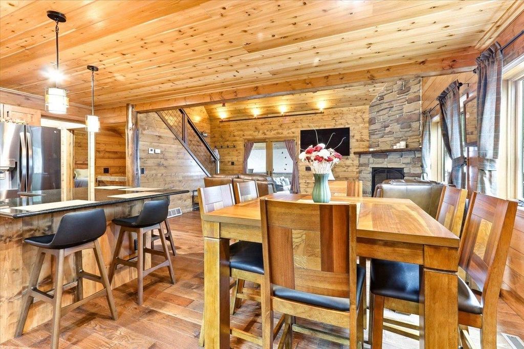 Custom-built log home just 1 block off Castle Rock Lake in Friendship, WI! This stunning 3BR/2BA Northwoods retreat is packed with quality craftsmanship inside & out. Soaring vaulted ceilings & a dramatic floor-to-ceiling stone gas fireplace anchor the open-concept living area, with rich oak hardwood floors flowing throughout. The chef's kitchen impresses with chestnut cabinetry, soft-close doors, granite countertops, stainless appliances, a wine cooler & a large island with seating. The primary suite features a spa-like bath with corner jetted tub, tiled walk-in shower & quartz vanity. The loft offers flexible bonus space - perfect for a home office, gym & guest sleeping area. The lower level adds two additional bedrooms, full bath & rec room and in-floor radiant heat. Relax on the screened porch, deck or enjoy the expansive yard. Major updates: brand-new metal roof (2025) new blacktop driveway (2025) new 2-car garage (2026). Near Castle Rock Lake, Wisconsin Dells, restaurants & more!